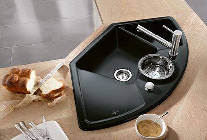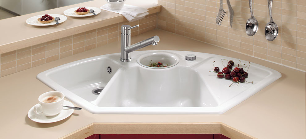 Jede Küche hat ihre Ecken und Kanten. Damit der Platz im Eckbereich nicht verloren geht, lässt sich dieser wunderbar mit einer Eckspüle nutzen.