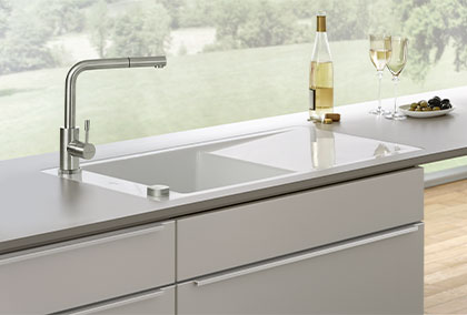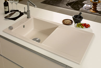Das Becken ist reversibel und somit sowohl rechts als auch links einsetzbar. Durch die leicht geneigte Abtropffläche kann überschüssiges Wasser beim Abspülen leicht in das Becken zurückfließen. Dank des großen Spülbecken und der flexiblen Positionierung der Armatur, bietet die Timeline eine bequeme und optimale Handhabung.