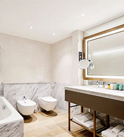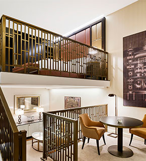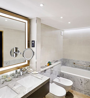 From the Historical Lounge, guests can make their way to rooms featuring spectacular views. Spacious and stylish, each room has a separate bathtub and walk-in shower. Fittings and fixtures from Villeroy & Boch’s Subway 2.0, Loop &Friends and O.novo Vita lines are used throughout. 42’’ HDTV and black-out curtains ensure each room is a modern retreat.