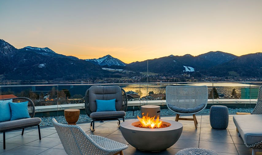 The Hotel Caro & Selig is part of the Marriott Autograph Collection, a reference worldwide for independent hotels with distinctive and unique designs. The boutique hotel is the first new construction for the Autograph Collection brand in Germany. With its curving shape and light-wood facade, the building is architecturally striking and yet integrates harmoniously in its surroundings. The hotel has 123 rooms and suites, three conference rooms for meetings and events, as well as a wellness area and a gym. The “FREYHEIT” restaurant creates dishes showcasing regional and seasonal ingredients. One particular highlight in the hotel is the “NI BAR & Rooftop Terrace”, a 380-square-metre space from which guests can enjoy a breathtaking panoramic view of alpine peaks and Lake Tegernsee.