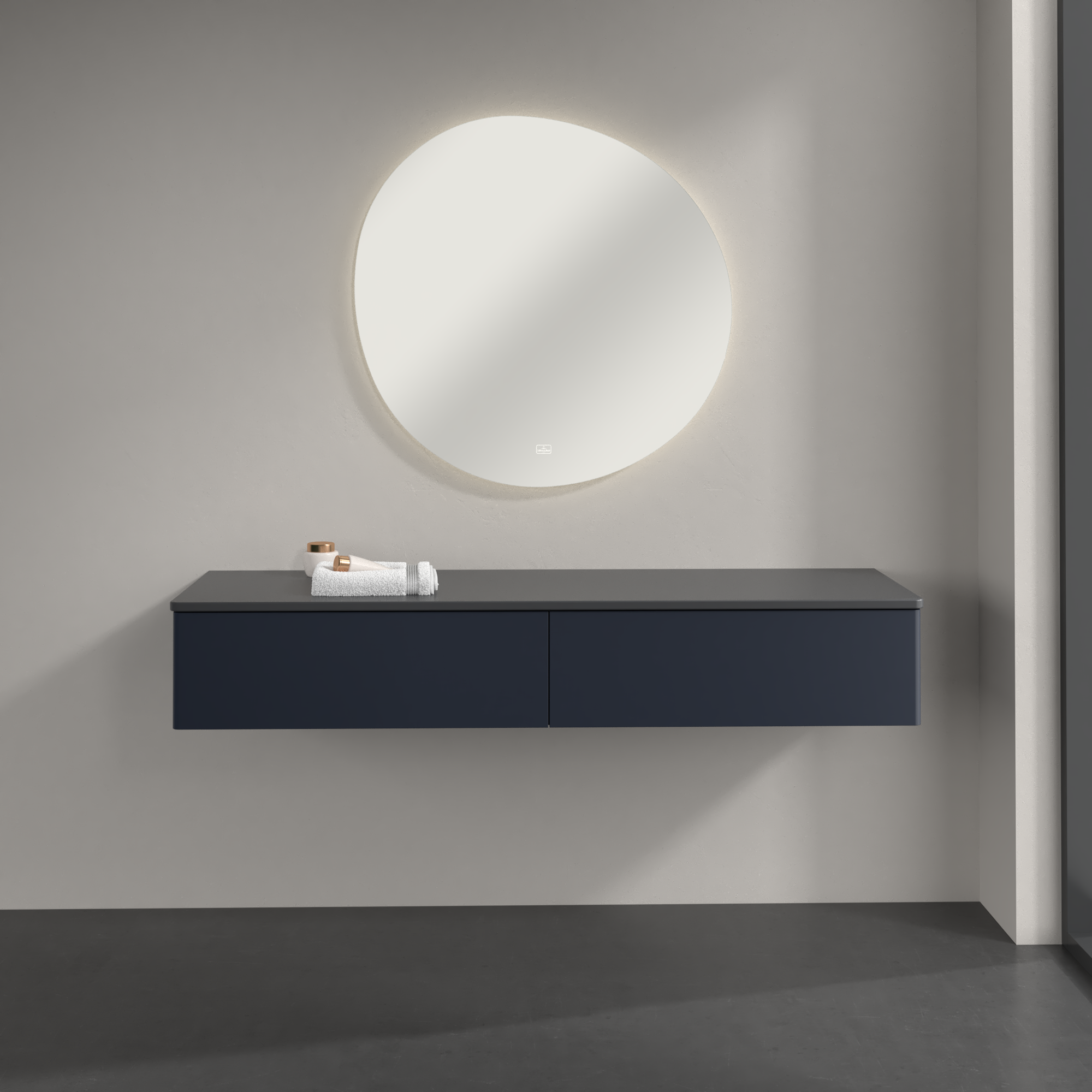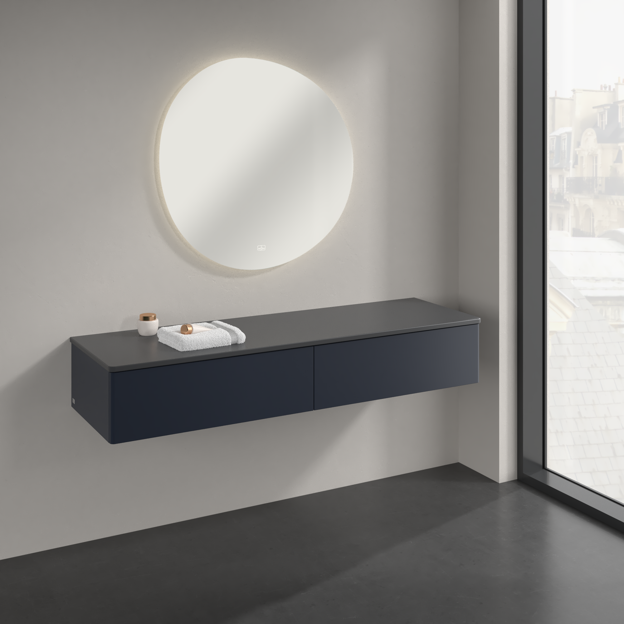Antao Sideboard, 2 pull-out compartments, 1600x268x500mm, Front without structure, Body: Midnight Blue Matt Lacquer, Front: Midnight Blue Matt Lacquer, Cover plate: Midnight Blue Matt Lacquer
