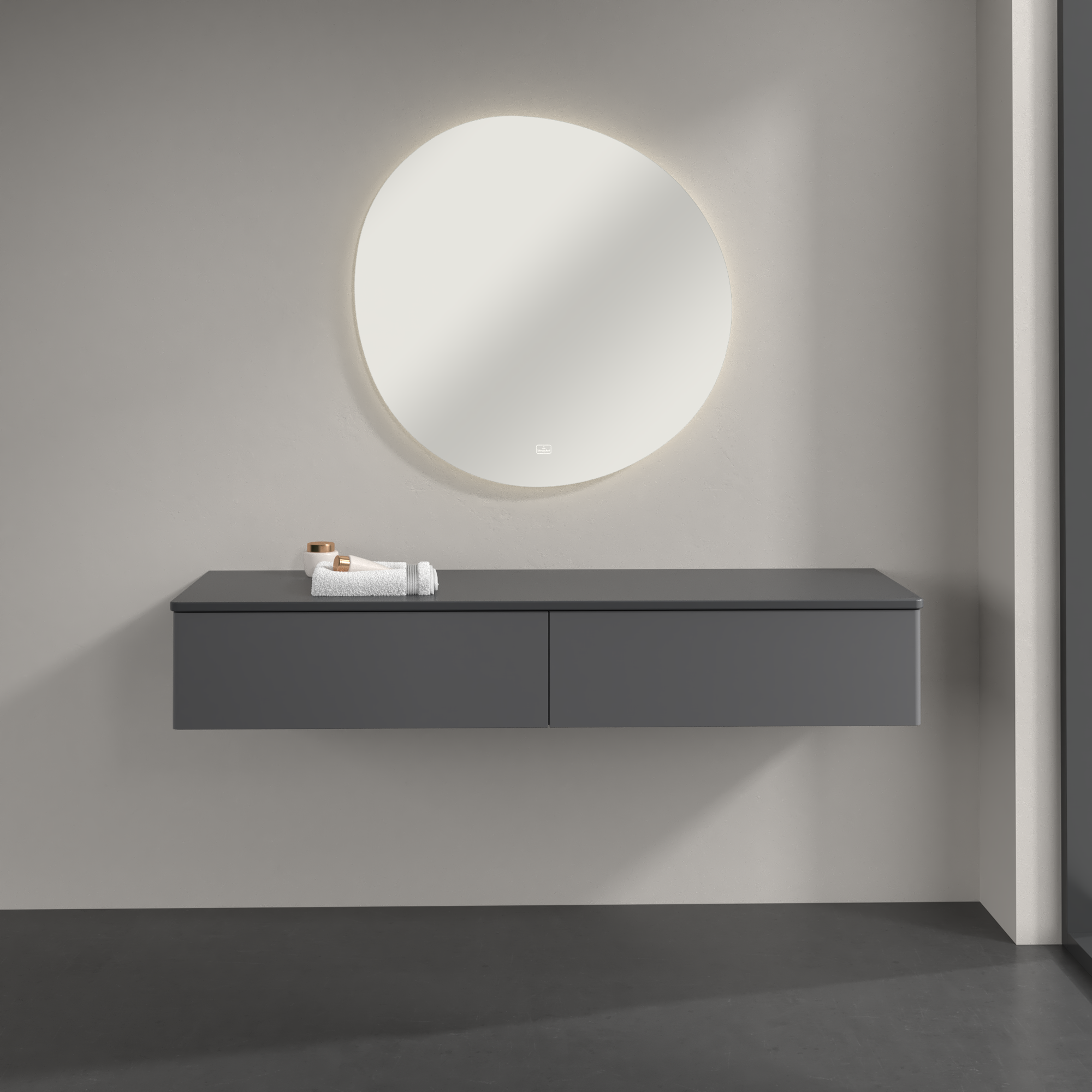 Antao Sideboard, 2 pull-out compartments, 1600x268x500mm, Front without structure, Body: Anthracite Matt Lacquer, Front: Anthracite Matt Lacquer, Cover plate: Warm Walnut