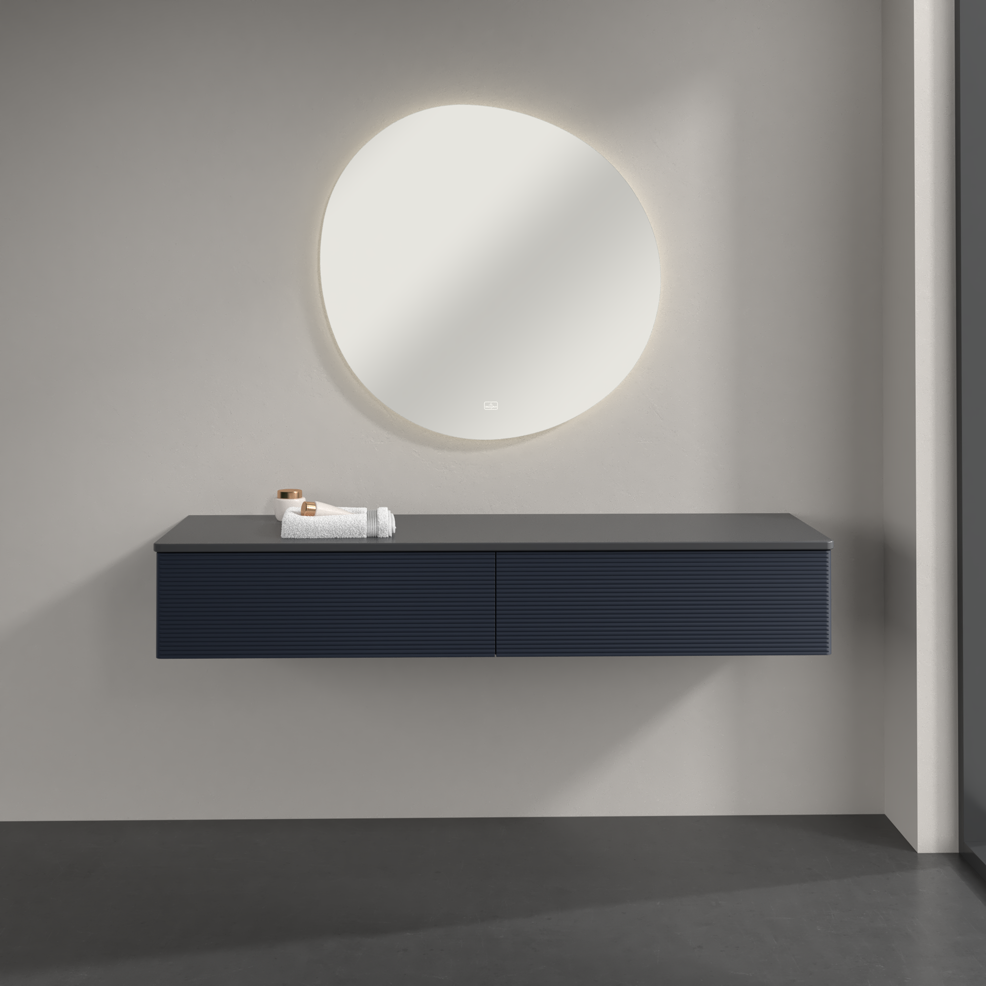 Antao Sideboard, 2 pull-out compartments, 1600x268x500mm, Front with grain texture, Body: Midnight Blue Matt Lacquer, Front: Midnight Blue Matt Lacquer, Cover plate: Botticino