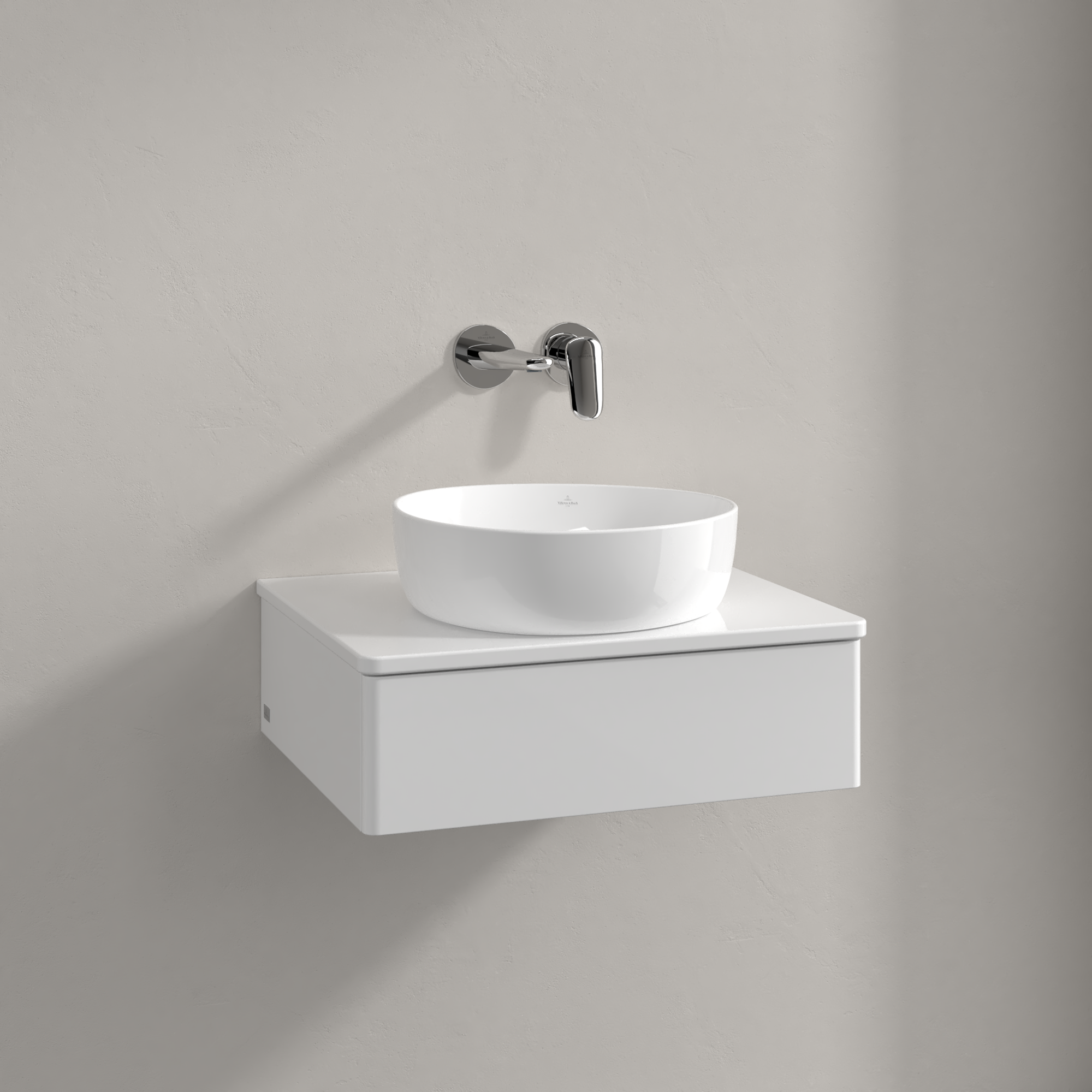 Antao Vanity unit, 1 pull-out compartment, 600x190x500mm, Front without structure, Body: Glossy White Lacquer, Front: Glossy White Lacquer, Cover plate: Glossy White Lacquer
