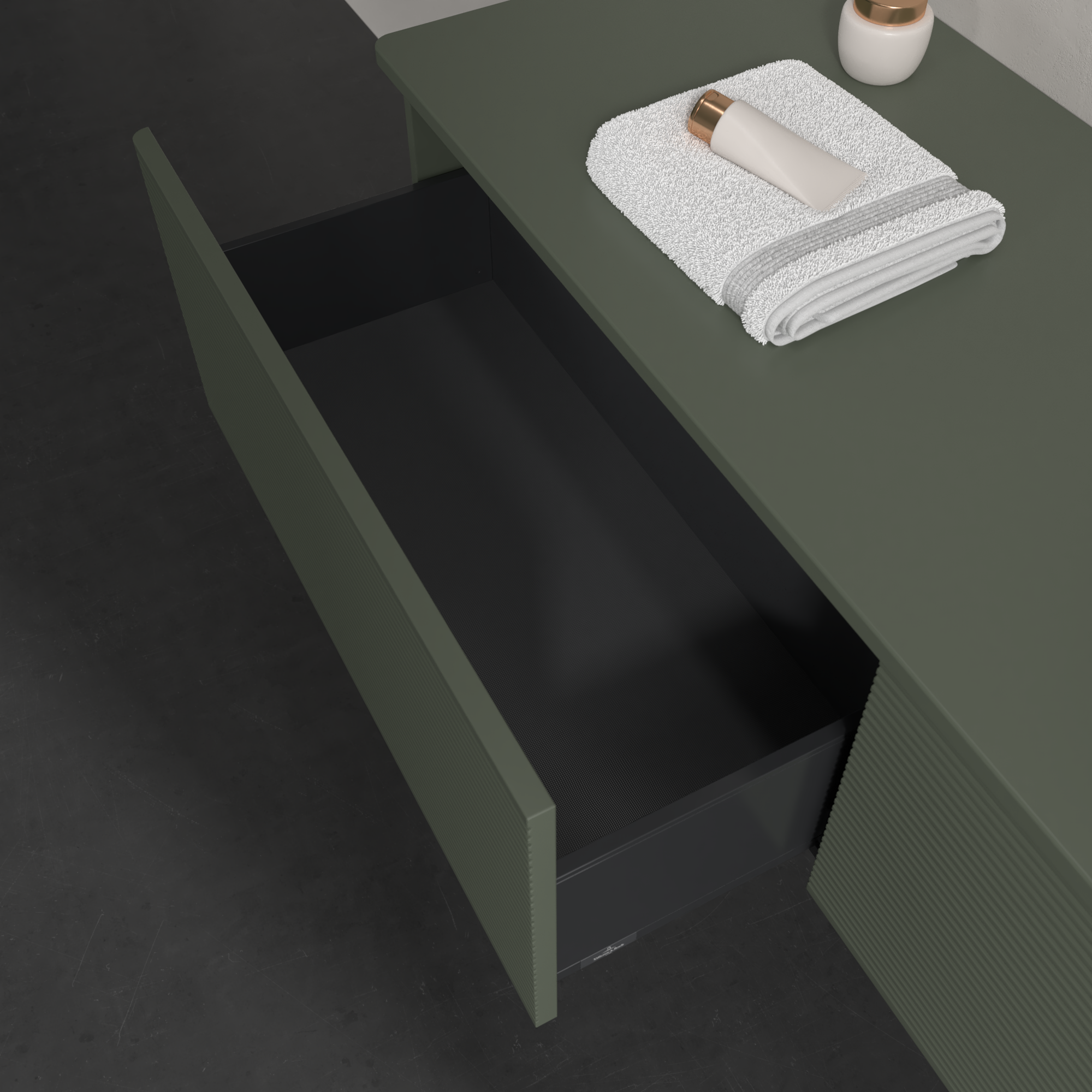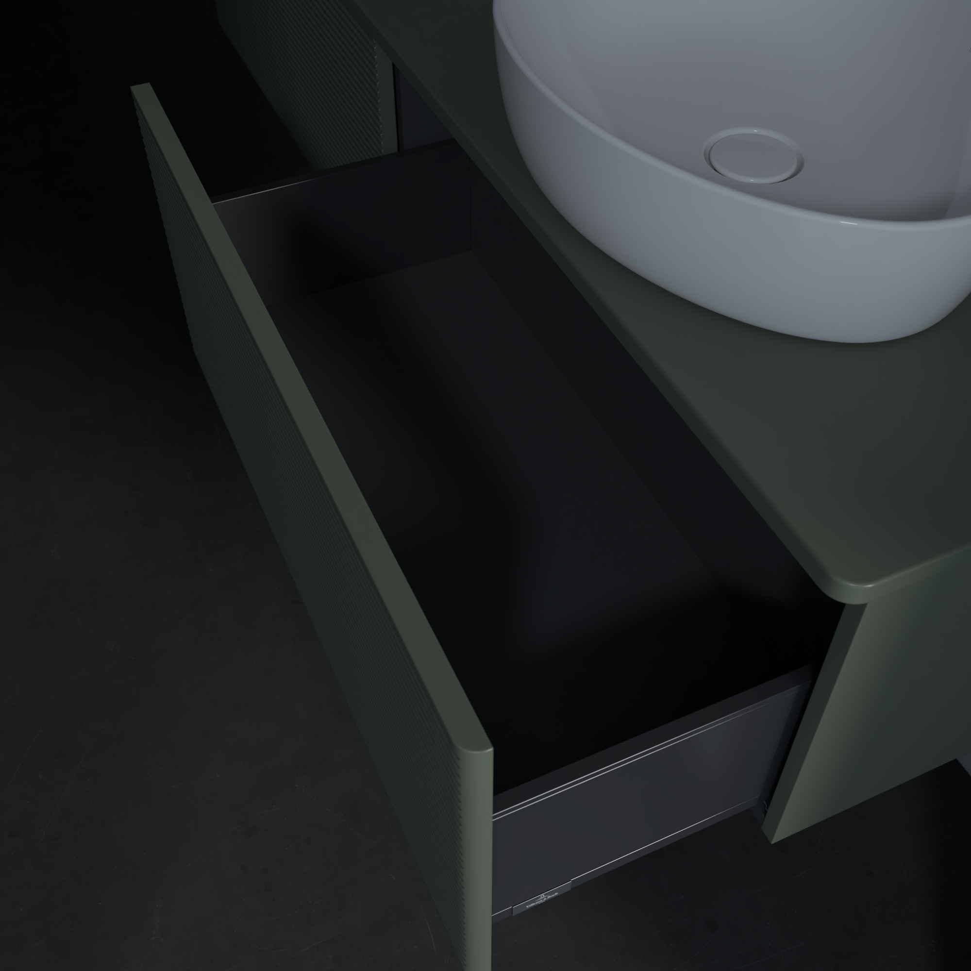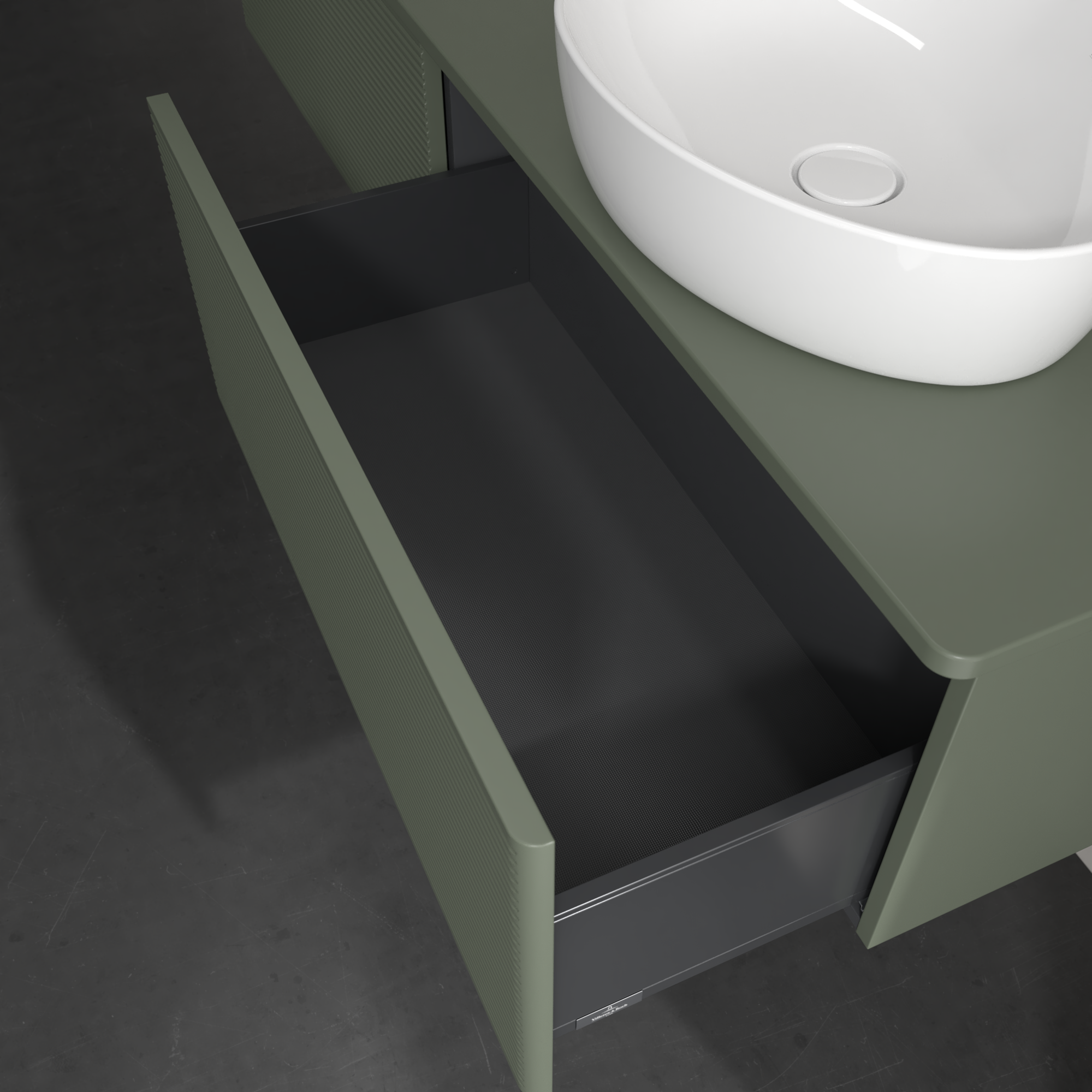 Antao Vanity unit, 2 pull-out compartments, 1600x360x500mm, Front with grain texture, Body: Leaf Green Matt Lacquer, Front: Leaf Green Matt Lacquer, Cover plate: Leaf Green Matt Lacquer