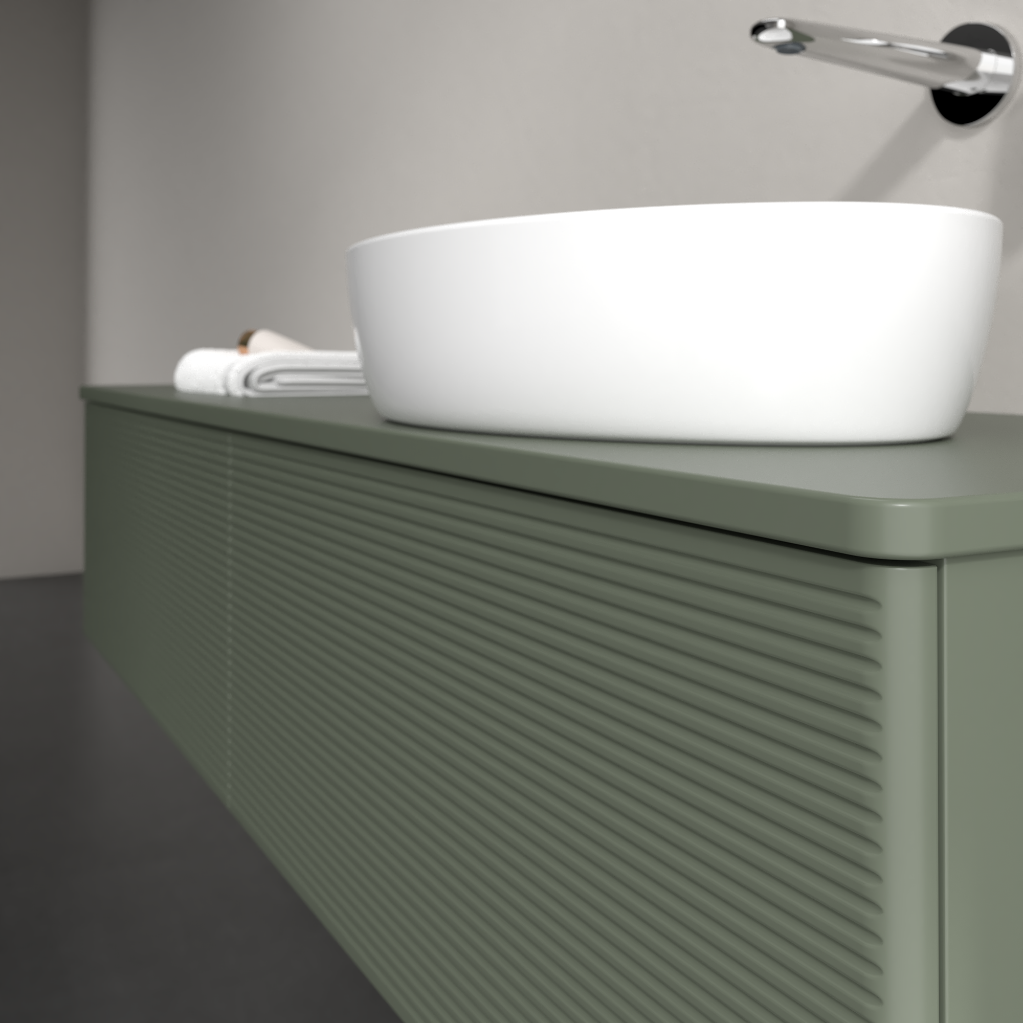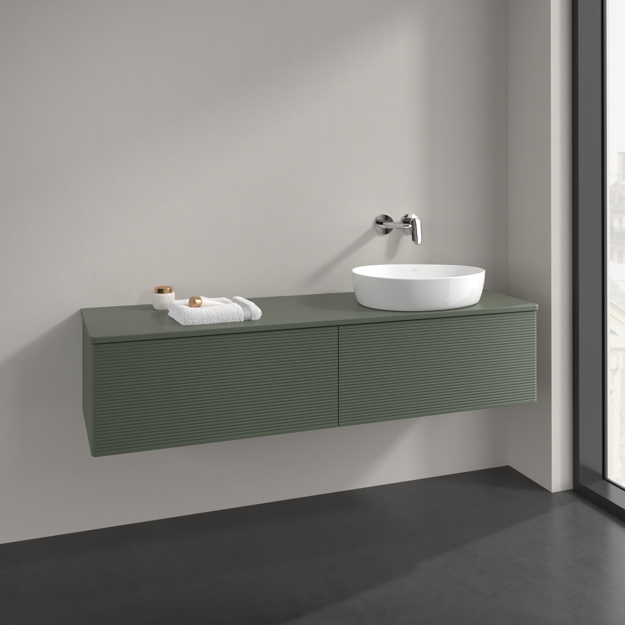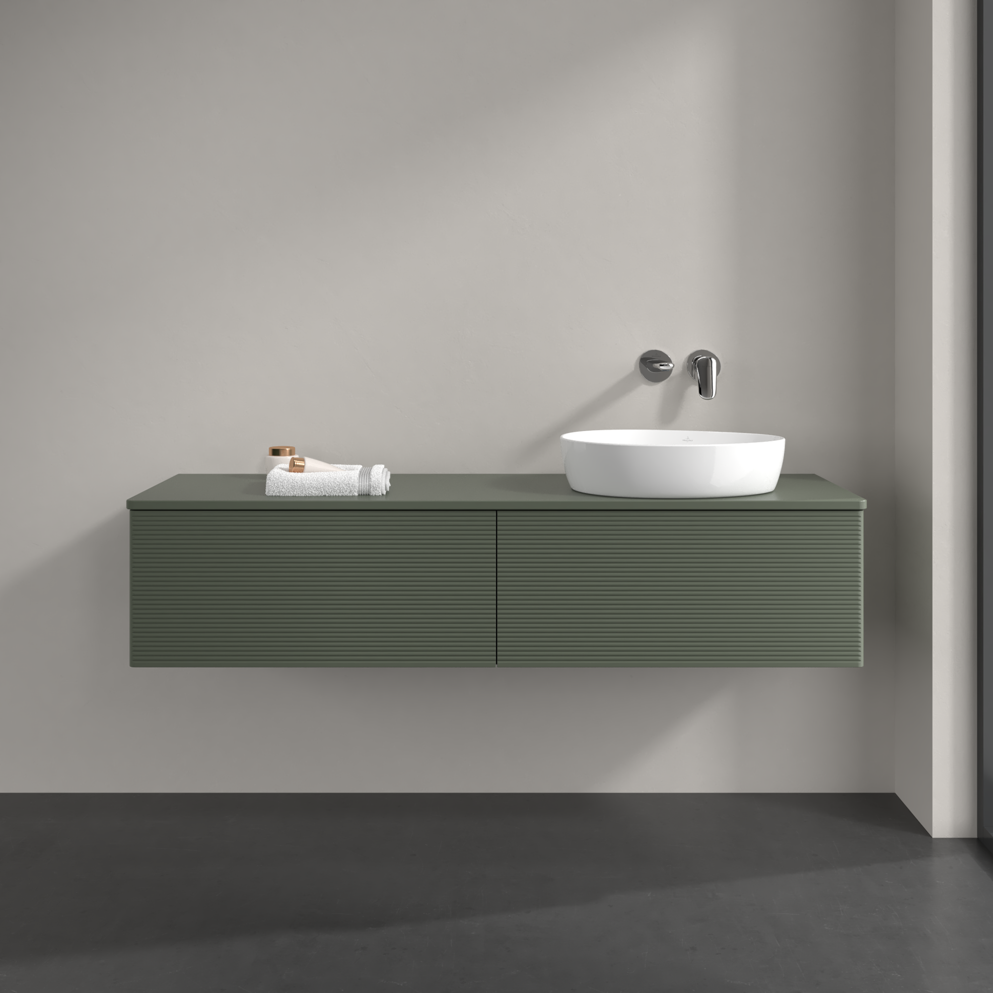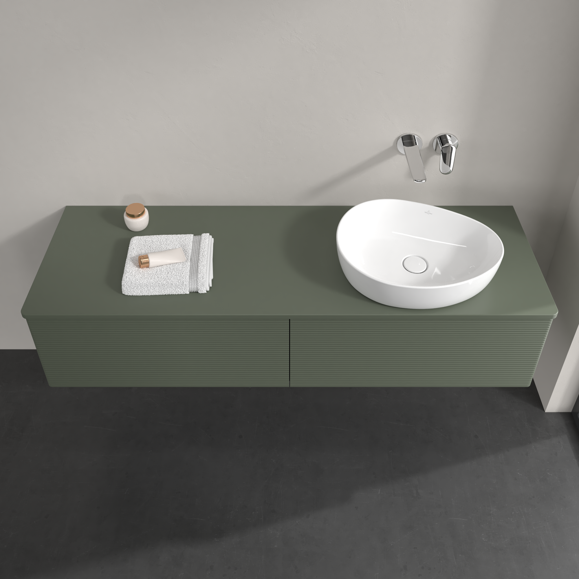 Antao Vanity unit, 2 pull-out compartments, 1600x360x500mm, Front with grain texture, Body: Leaf Green Matt Lacquer, Front: Leaf Green Matt Lacquer, Cover plate: Leaf Green Matt Lacquer