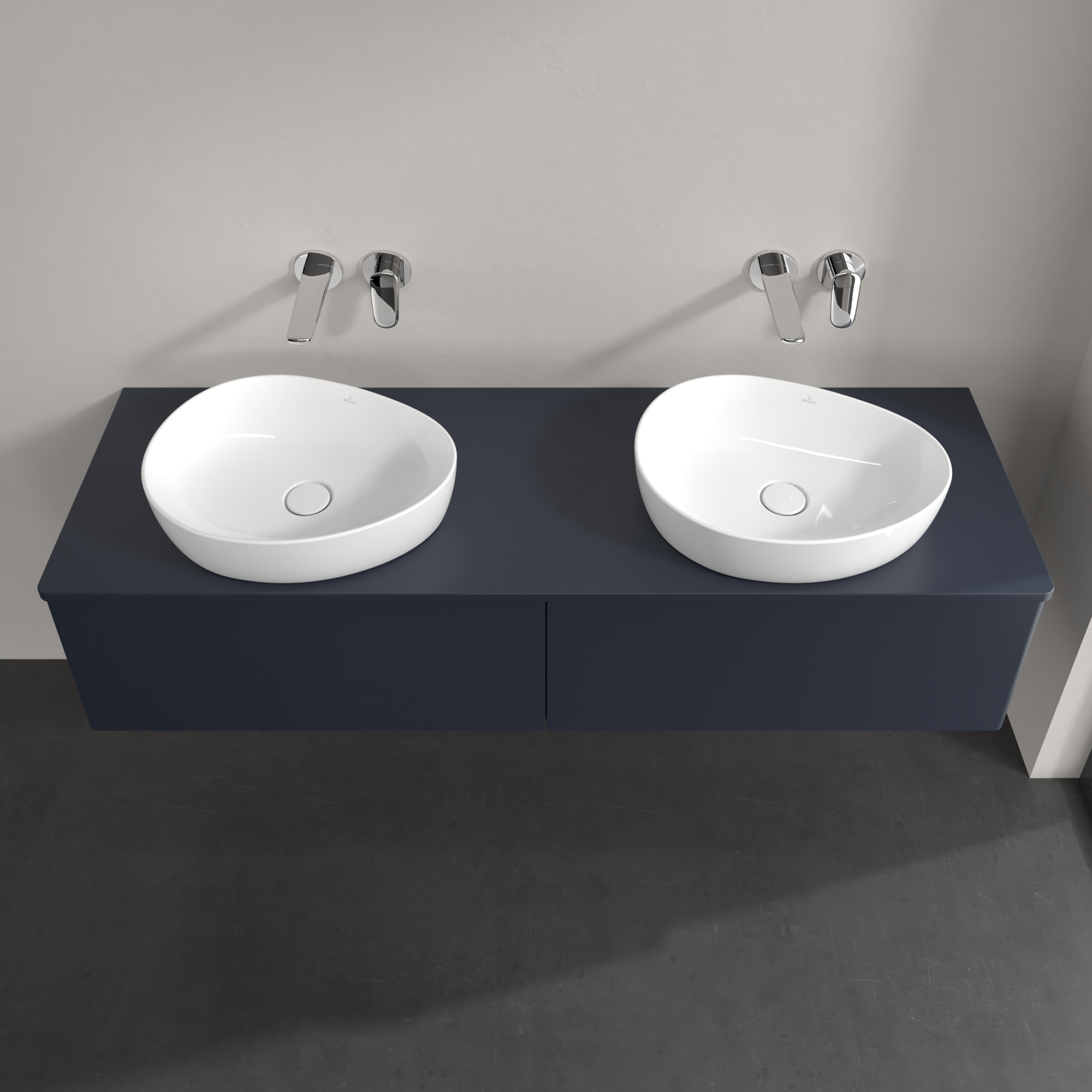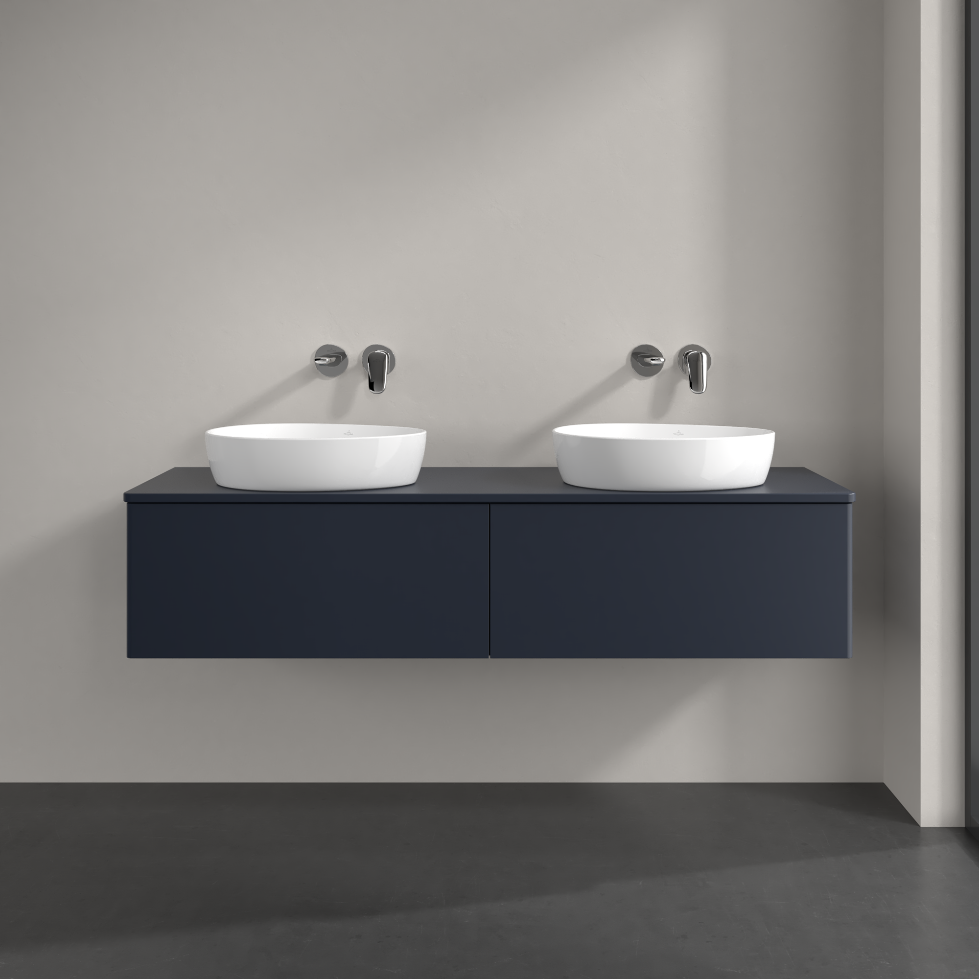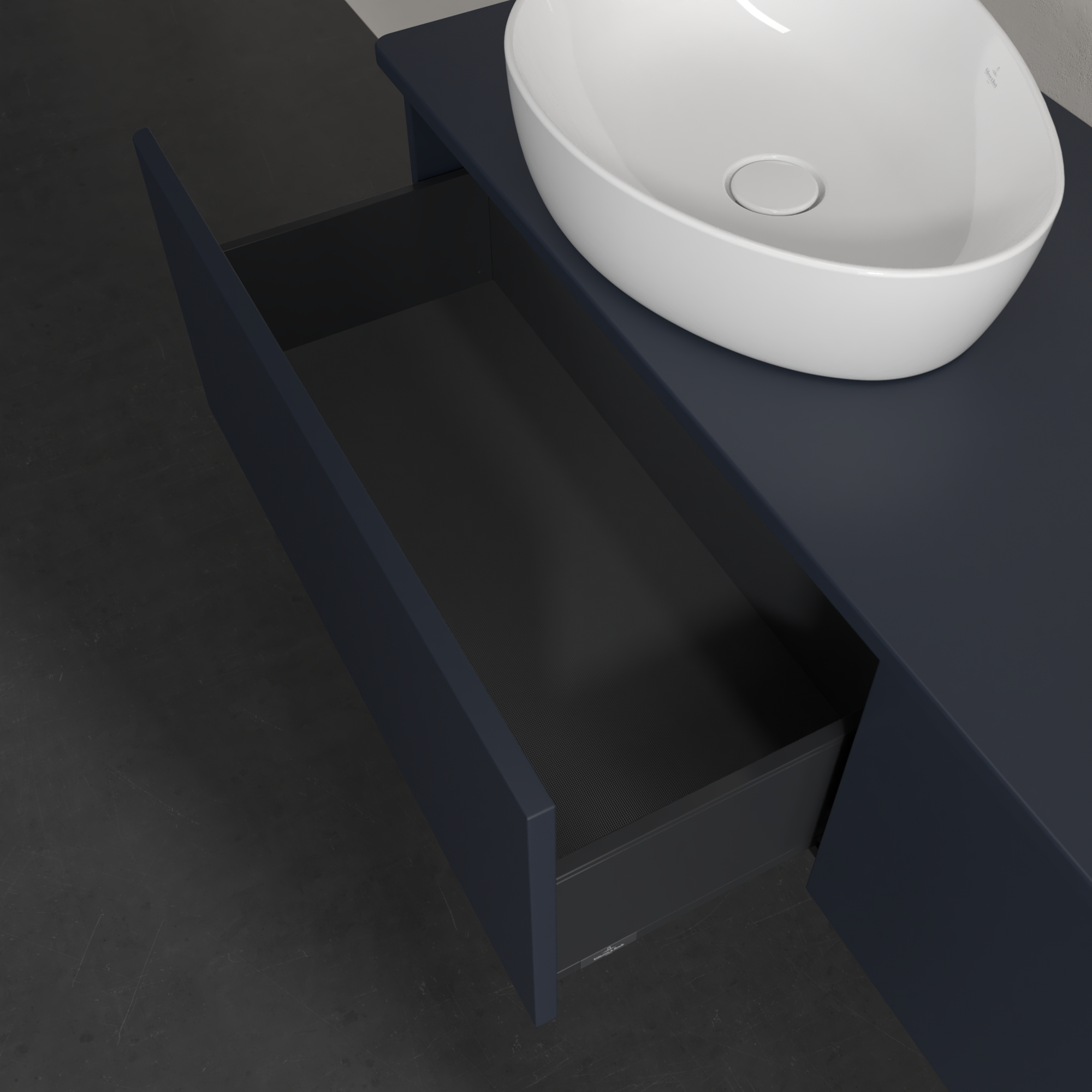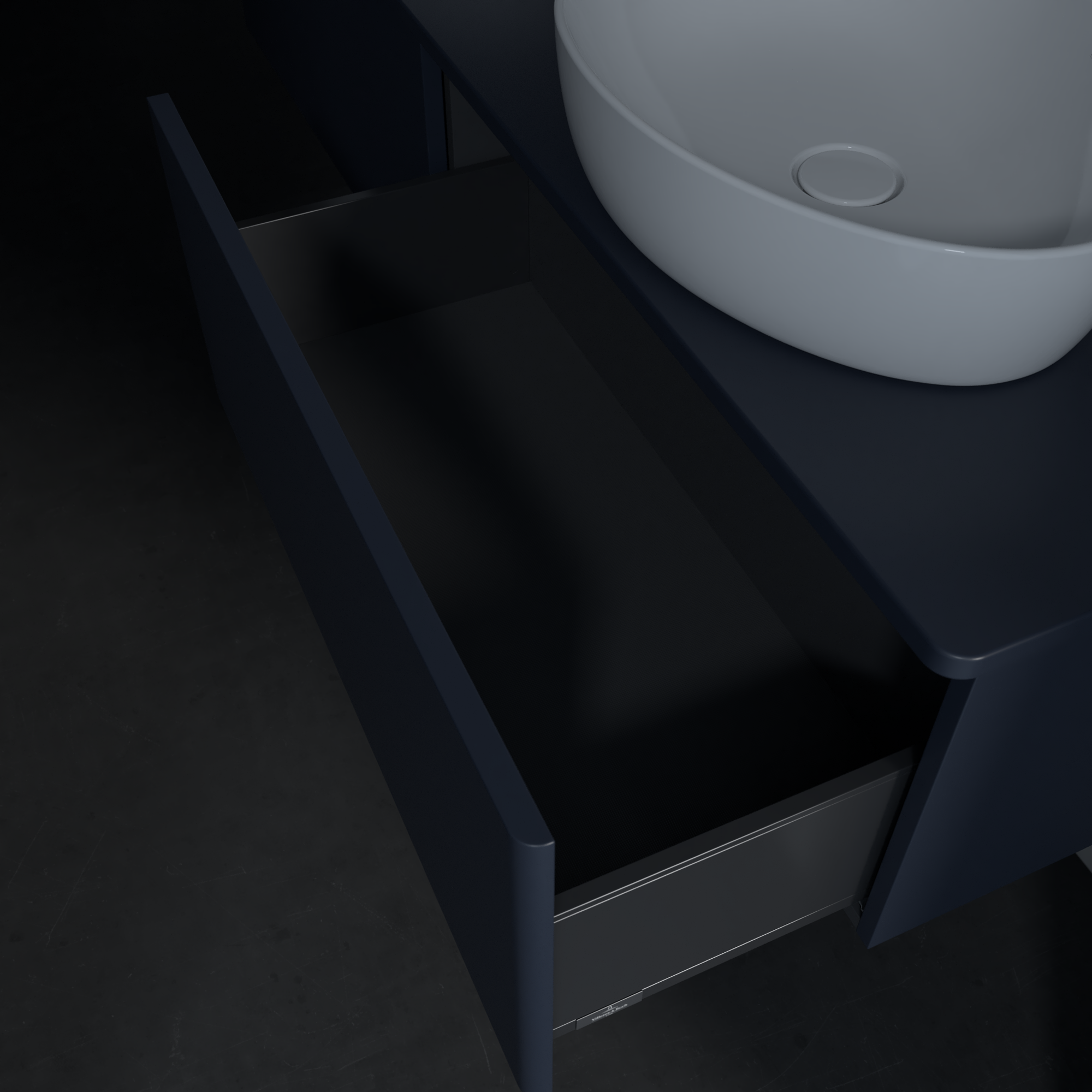 Antao Vanity unit, 2 pull-out compartments, 1600x360x500mm, Front without structure, Body: Midnight Blue Matt Lacquer, Front: Midnight Blue Matt Lacquer, Cover plate: Midnight Blue Matt Lacquer