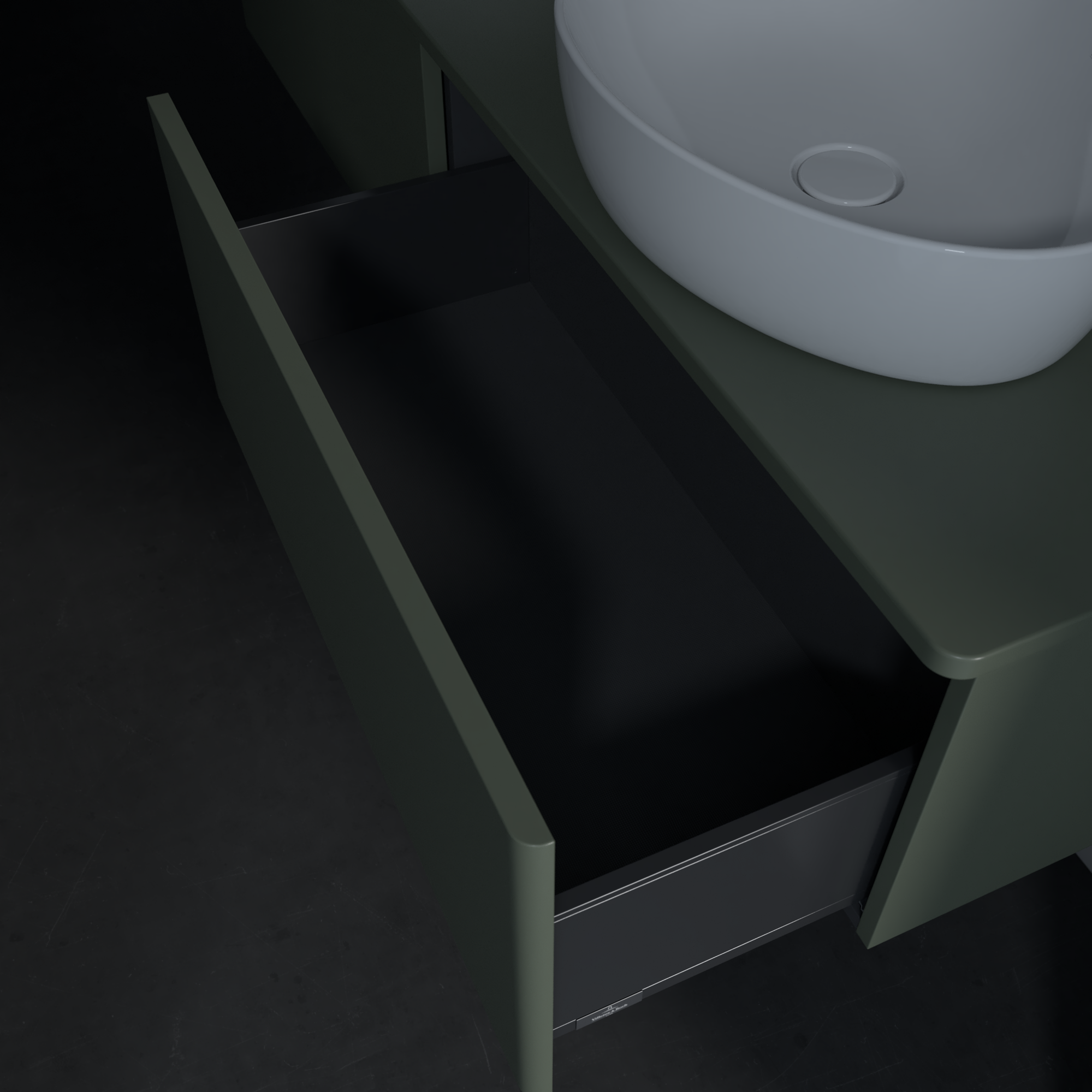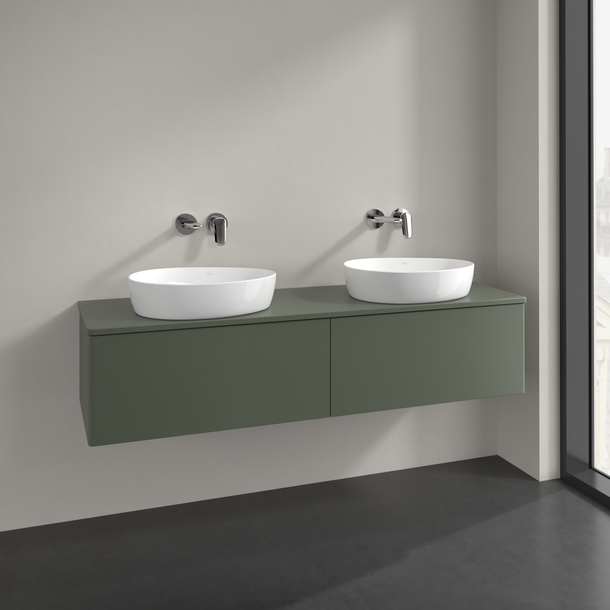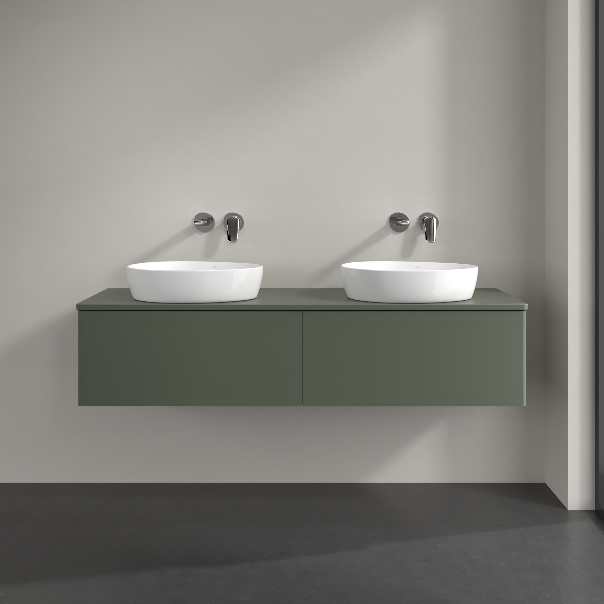 Antao Vanity unit, 2 pull-out compartments, 1600x360x500mm, Front without structure, Body: Leaf Green Matt Lacquer, Front: Leaf Green Matt Lacquer, Cover plate: Leaf Green Matt Lacquer
