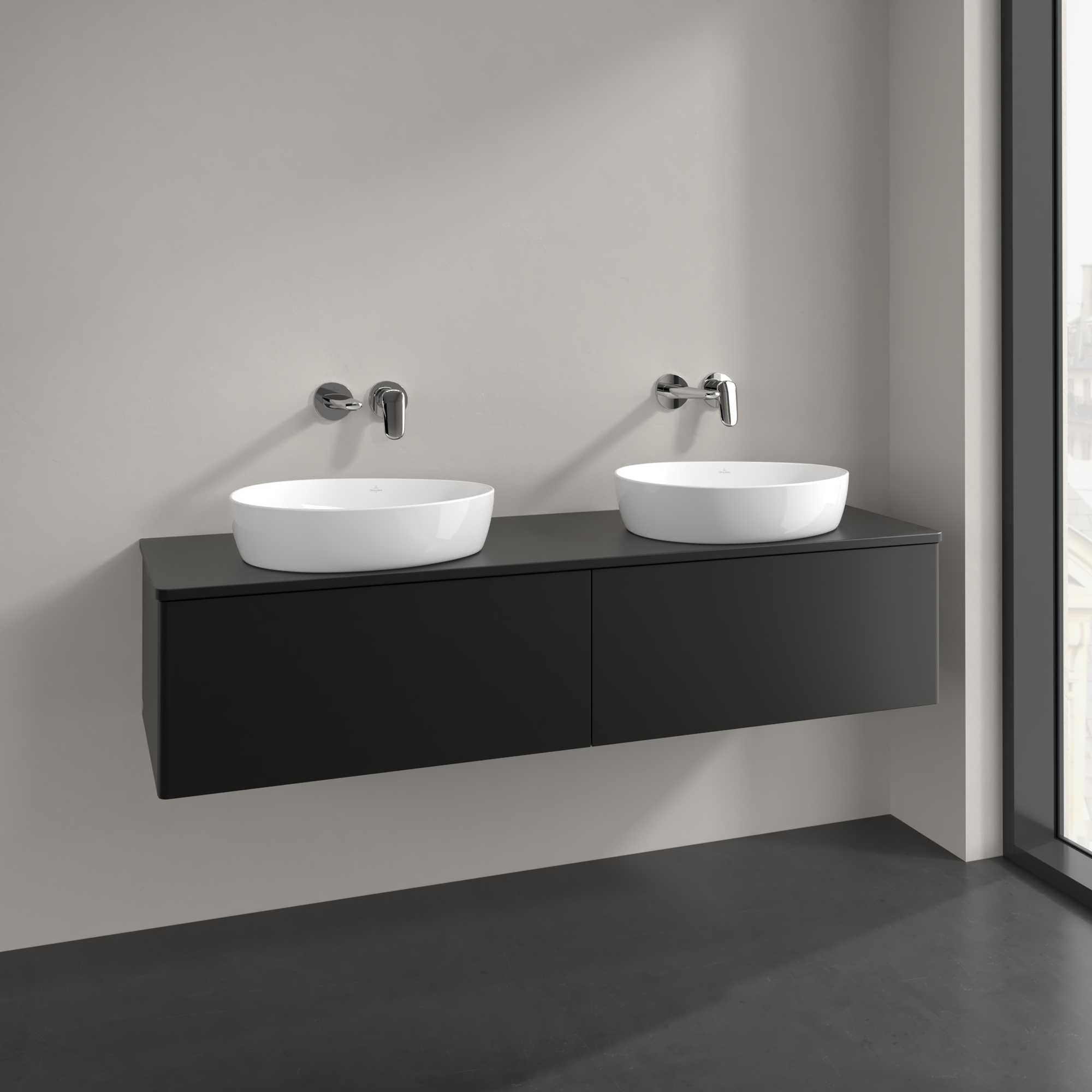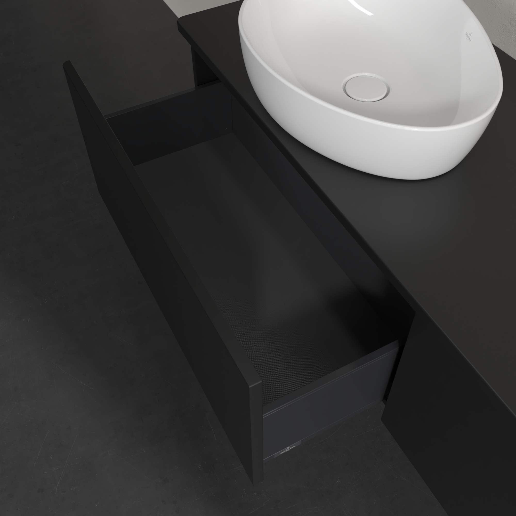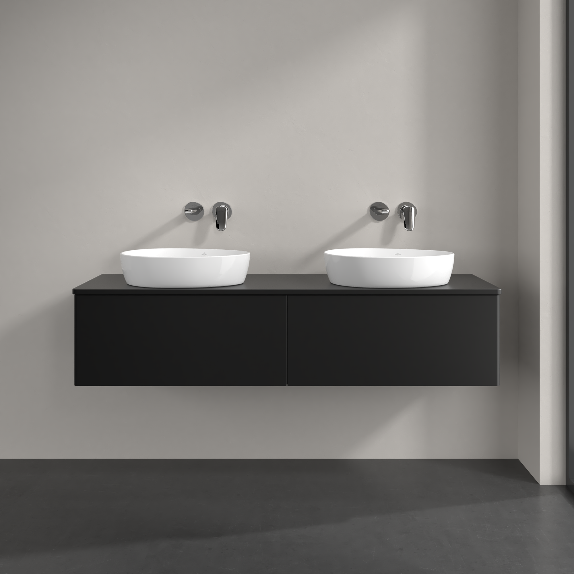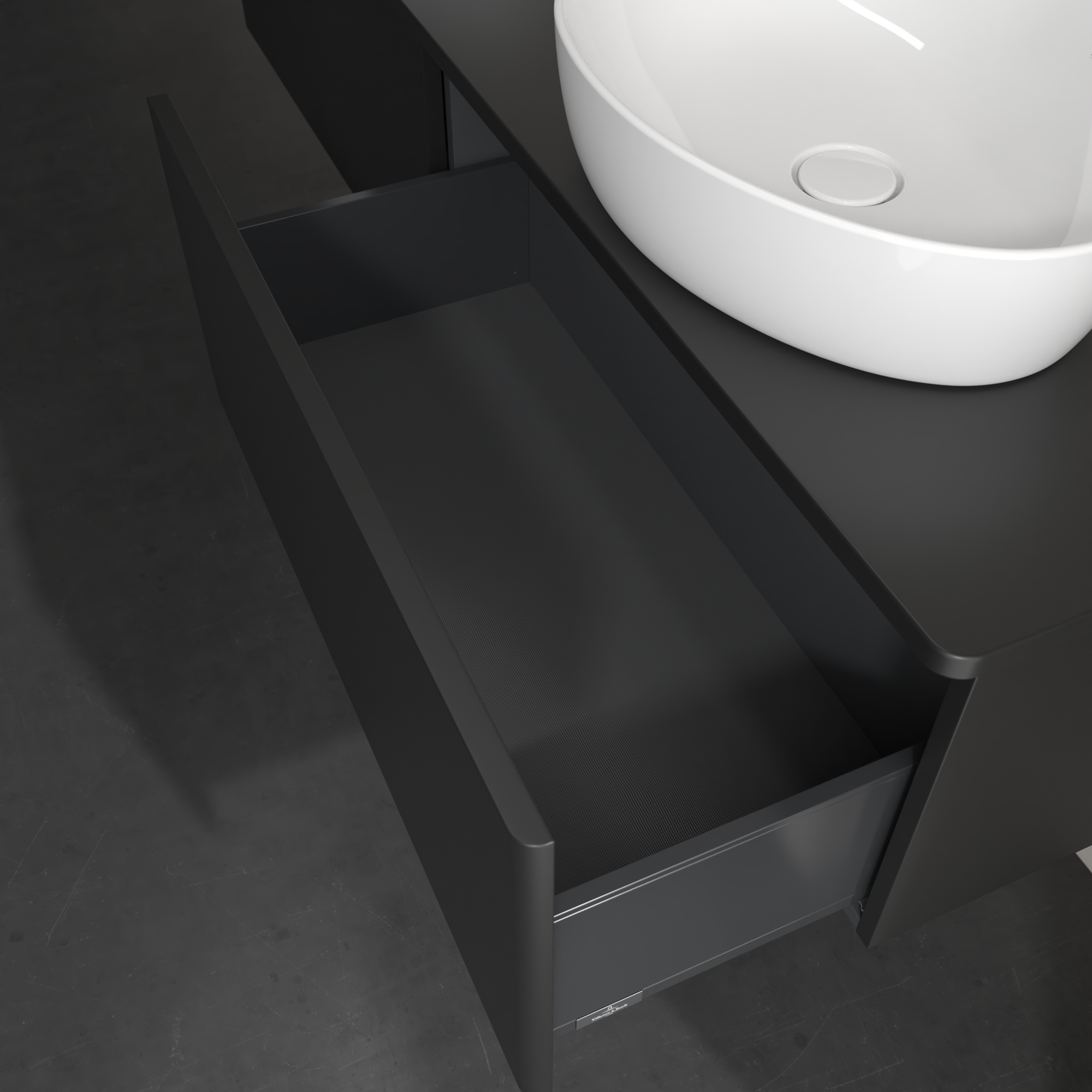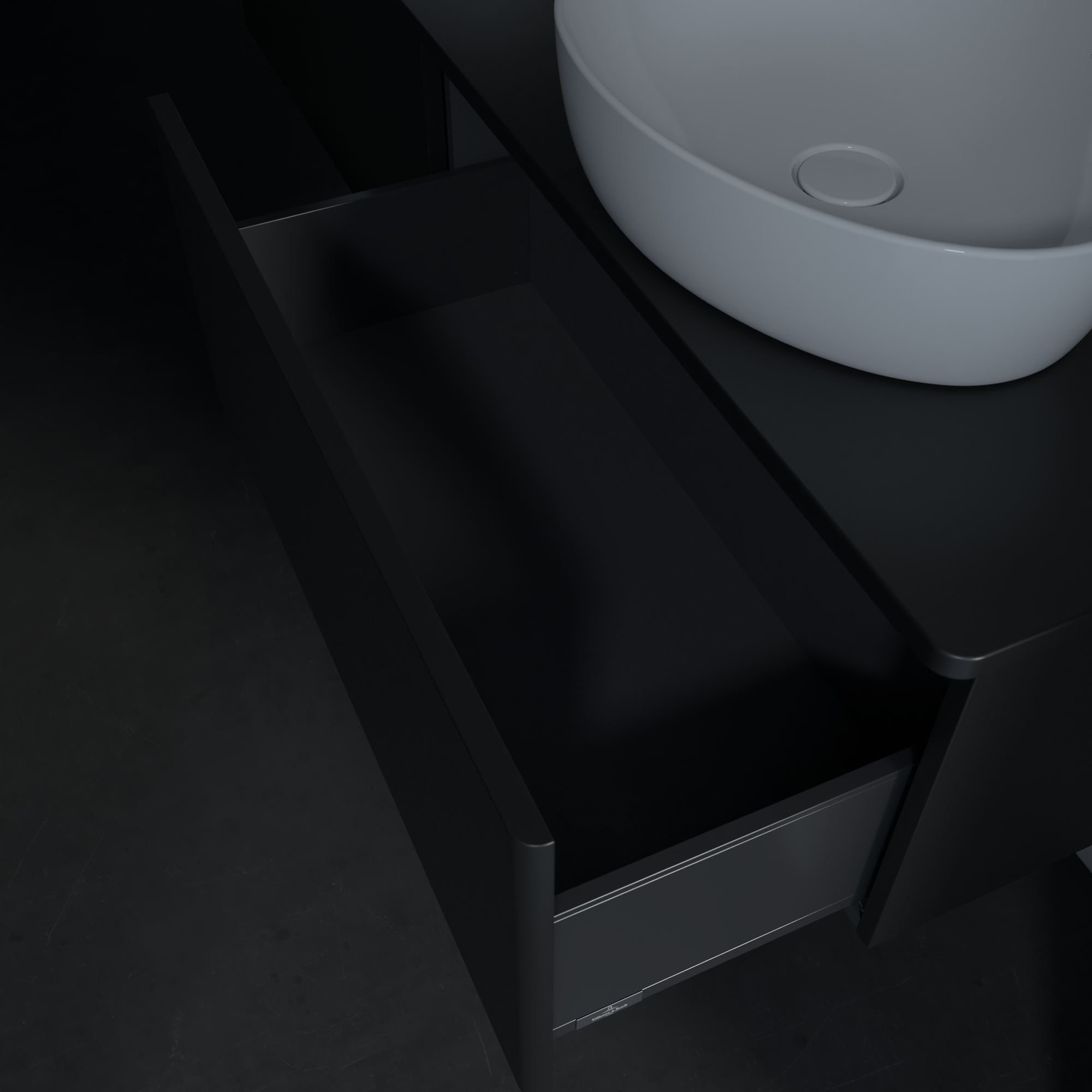 Antao Vanity unit, 2 pull-out compartments, 1600x360x500mm, Front without structure, Body: Black Matt Lacquer, Front: Black Matt Lacquer, Cover plate: Black Matt Lacquer
