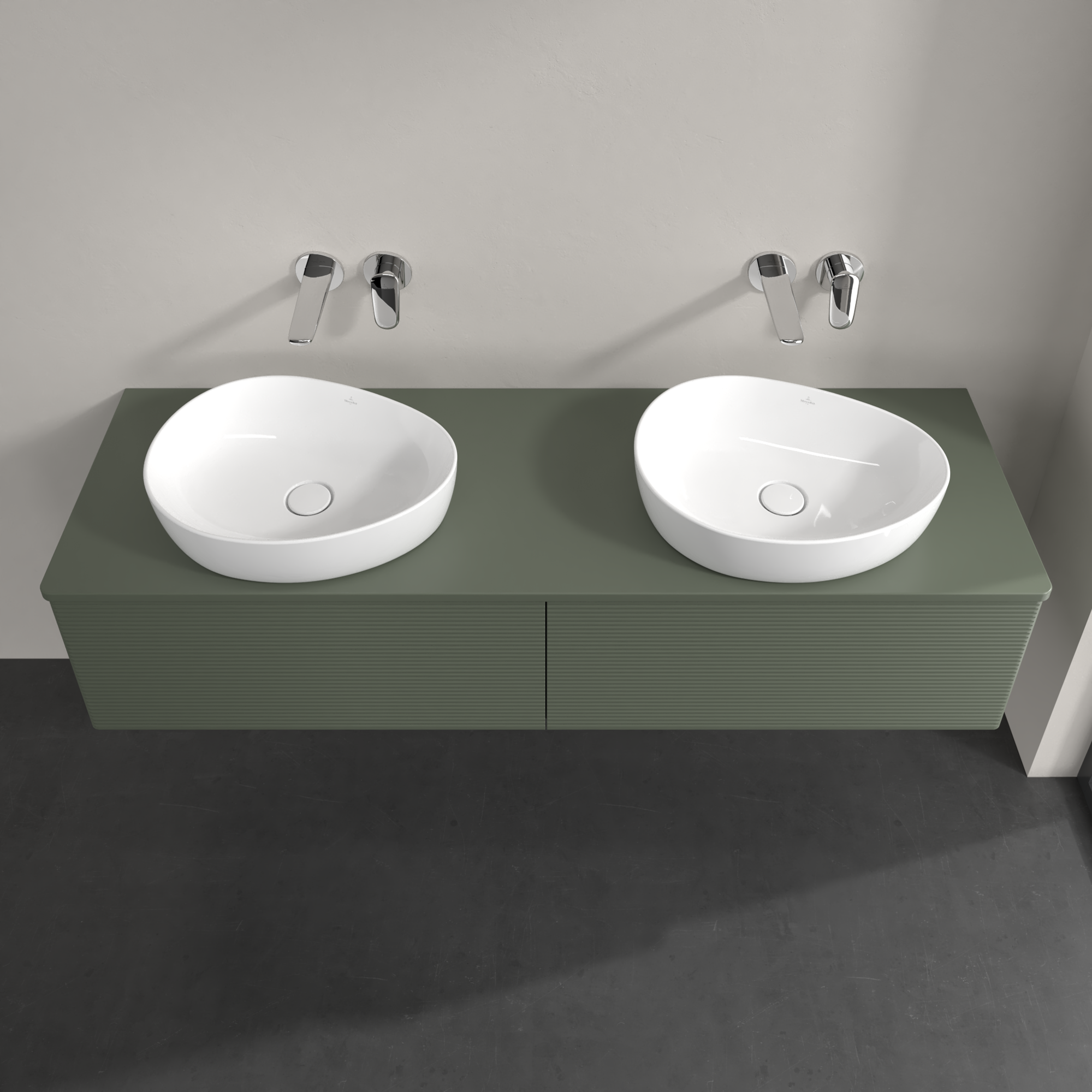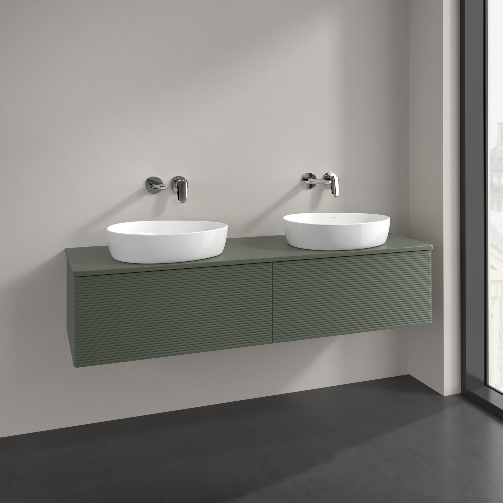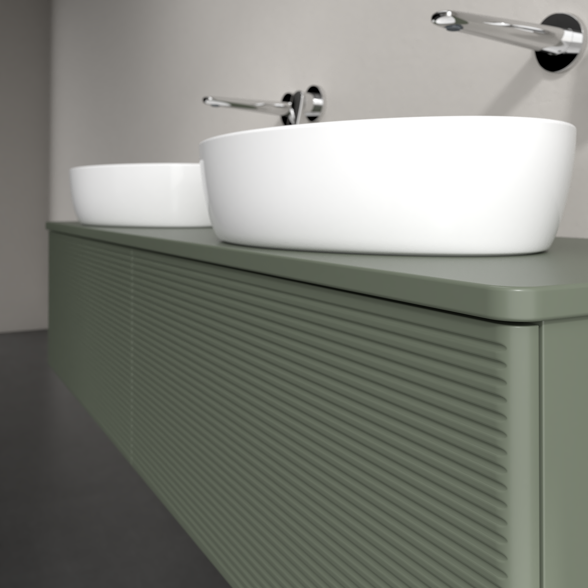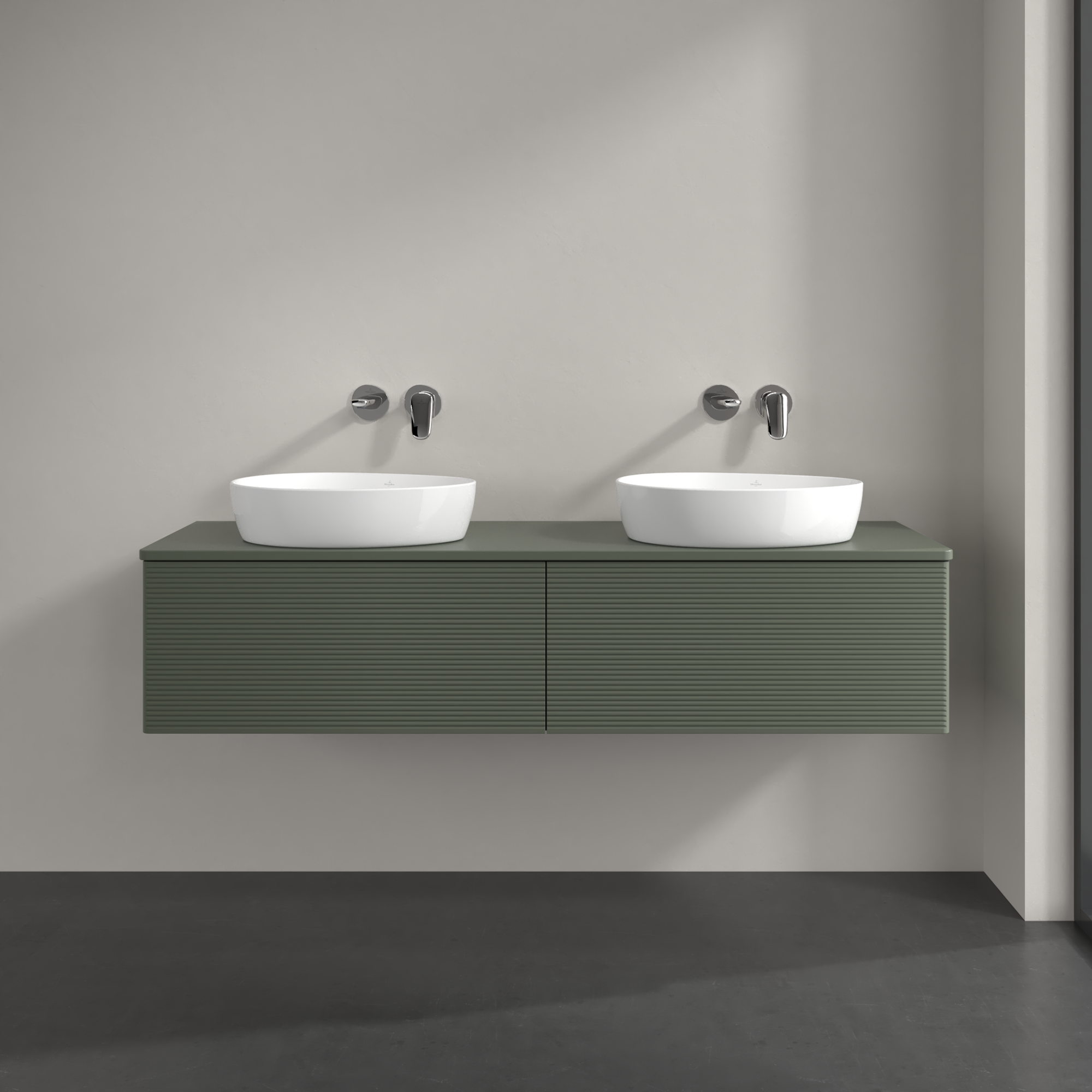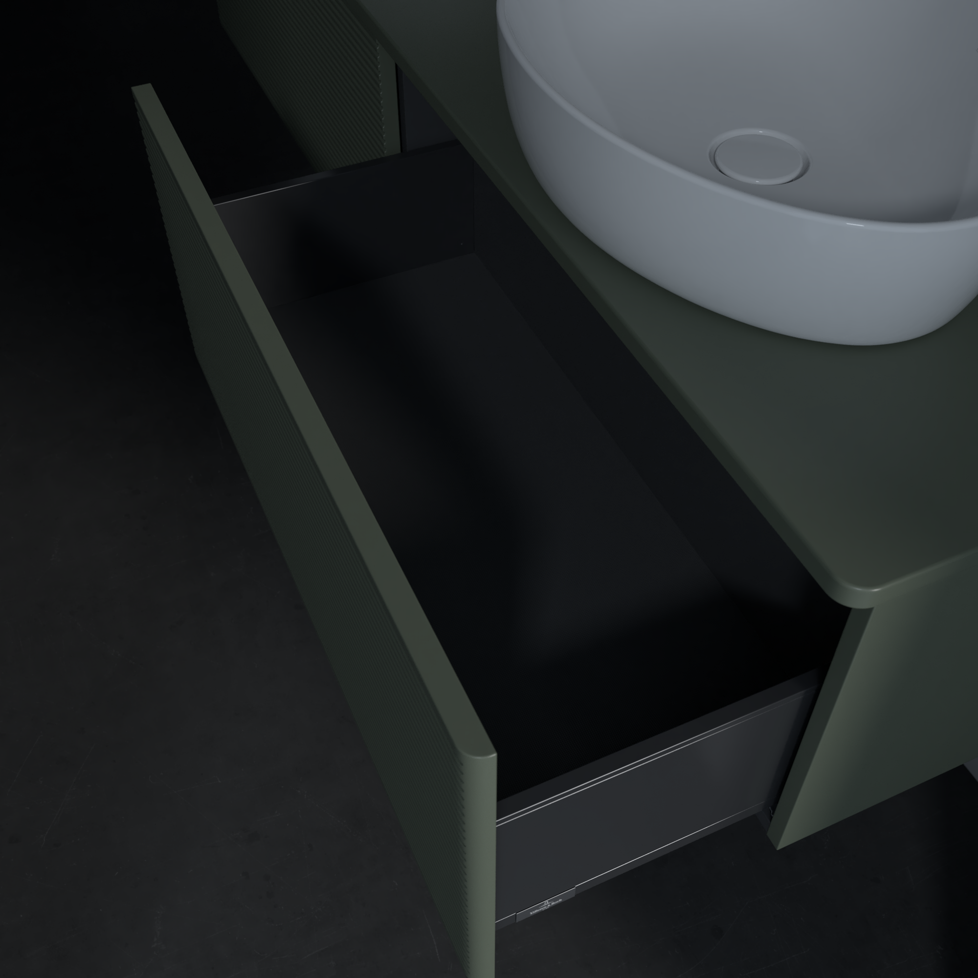 Antao Vanity unit, 2 pull-out compartments, 1600x360x500mm, Front with grain texture, Body: Leaf Green Matt Lacquer, Front: Leaf Green Matt Lacquer, Cover plate: Leaf Green Matt Lacquer