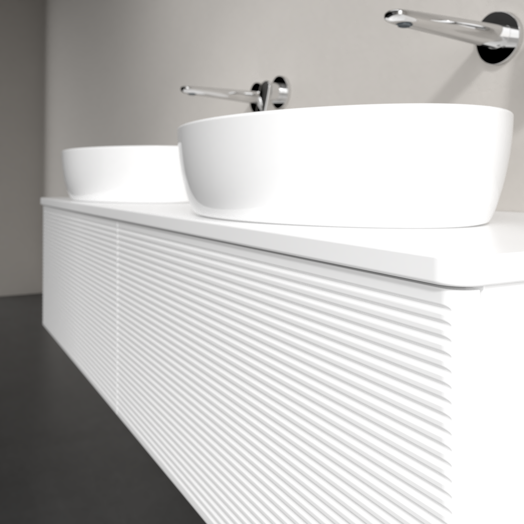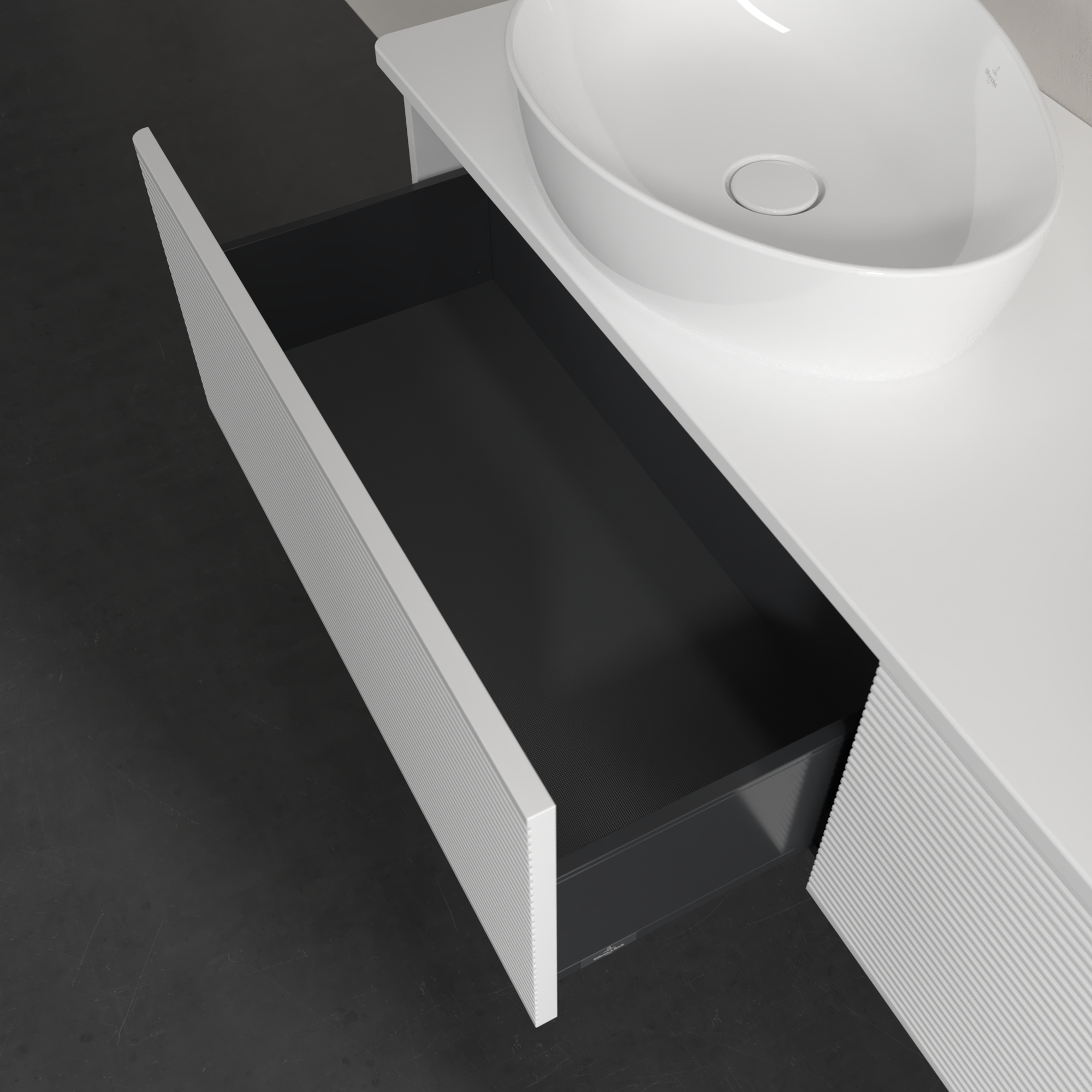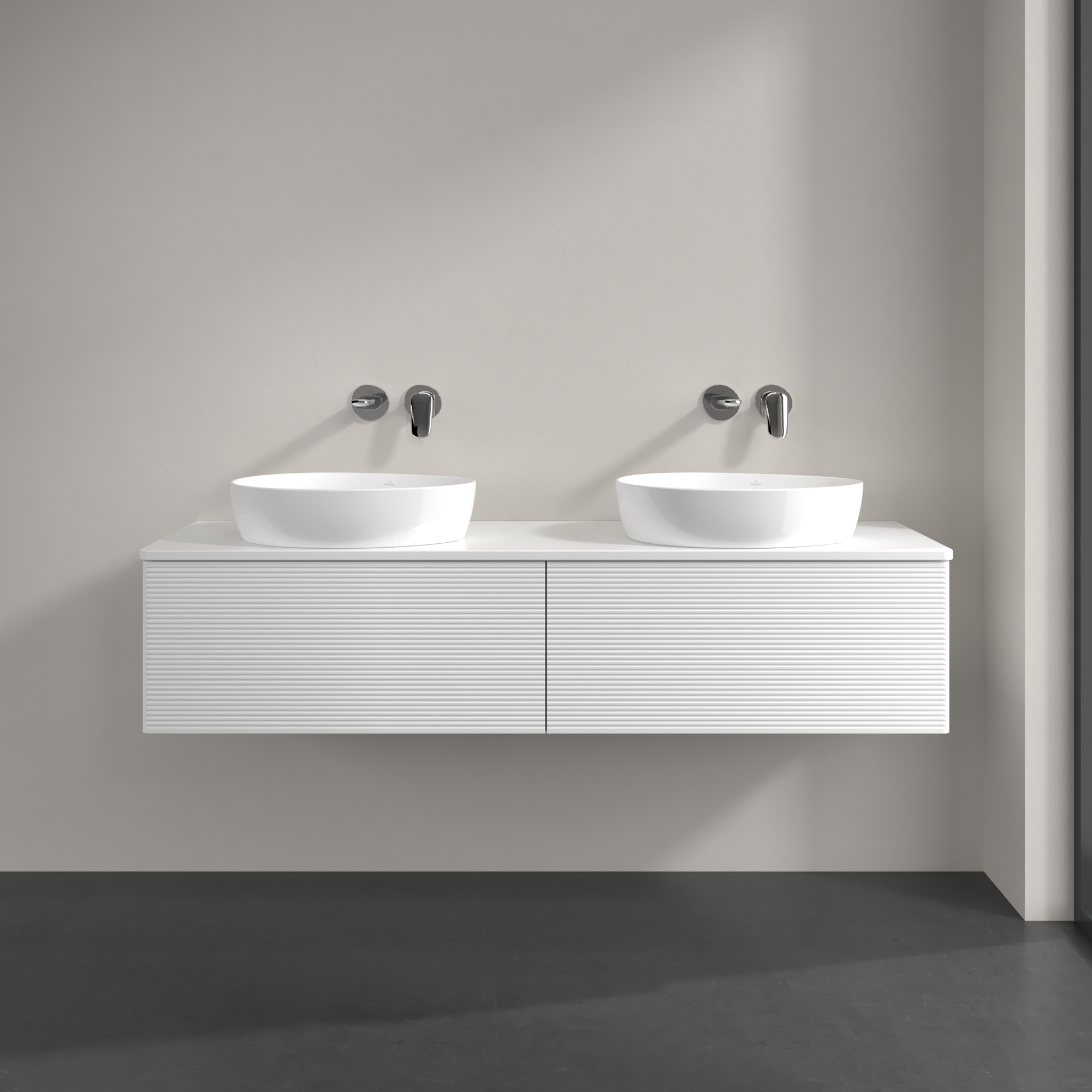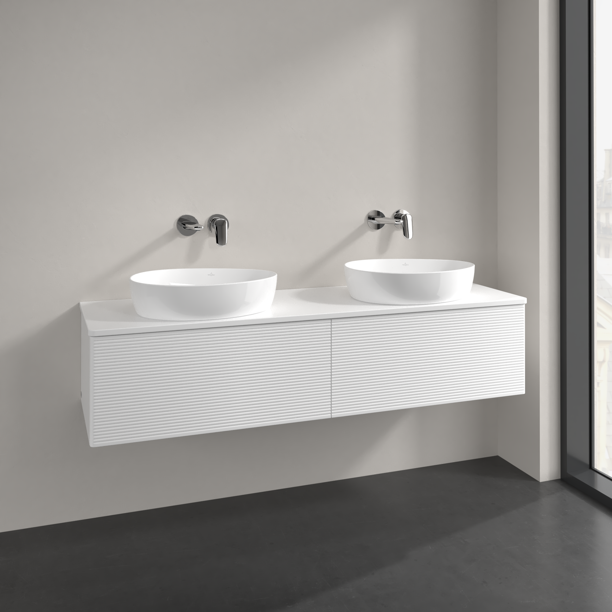 Antao Vanity unit, 2 pull-out compartments, 1600x360x500mm, Front with grain texture, Body: White Matt Lacquer, Front: White Matt Lacquer, Cover plate: White Matt Lacquer