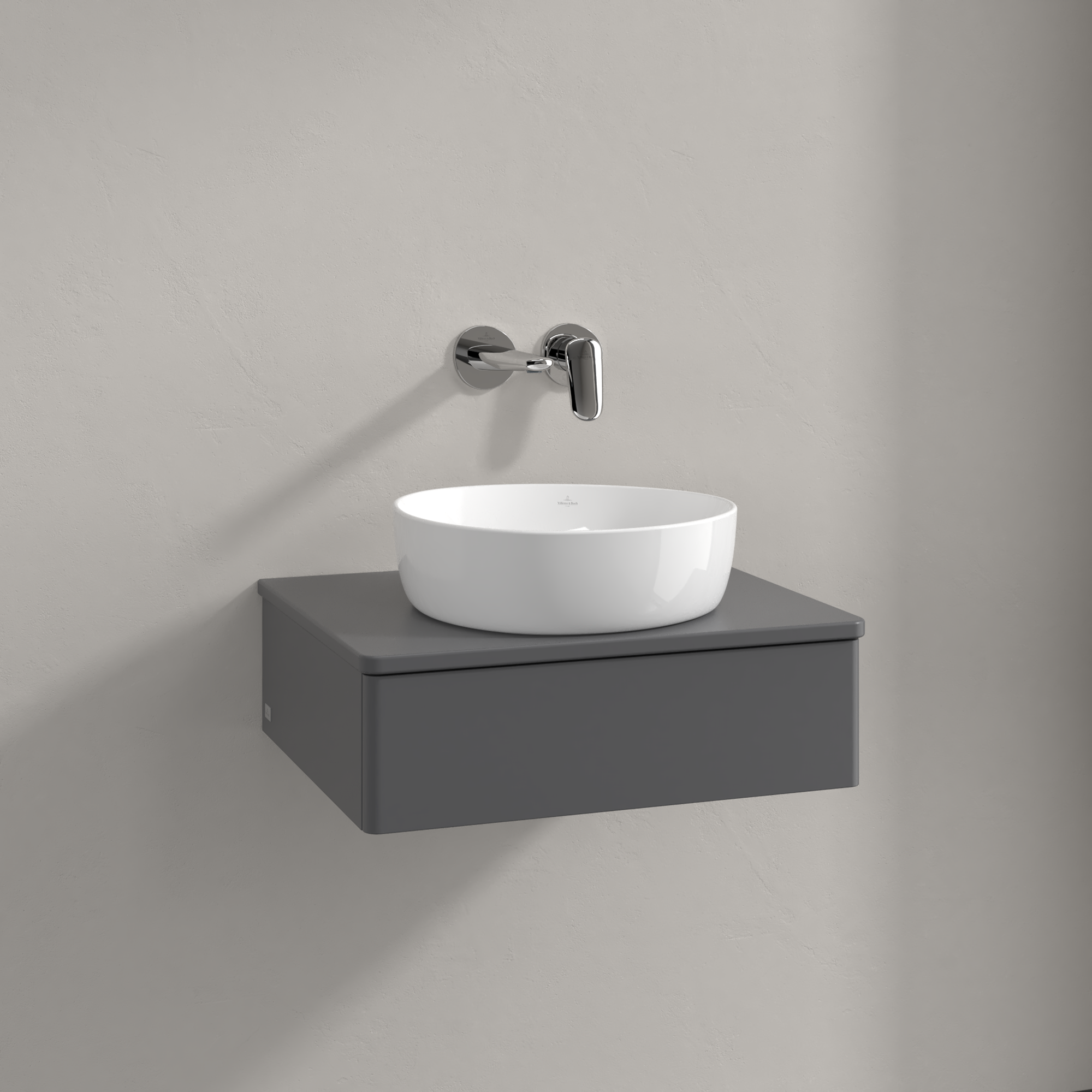 Antao Vanity unit, with lighting, 1 pull-out compartment, 600x190x500mm, Front without structure, Body: Anthracite Matt Lacquer, Front: Anthracite Matt Lacquer, Cover plate: Anthracite Matt Lacquer