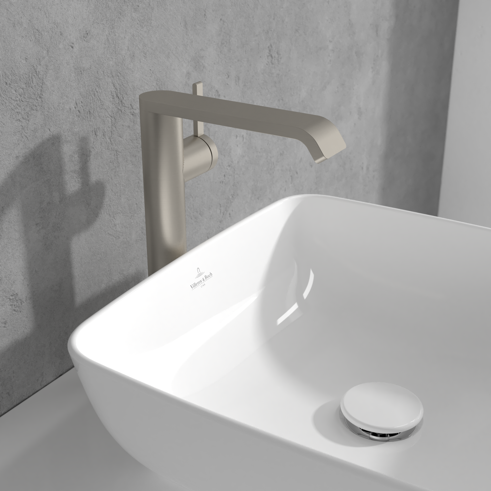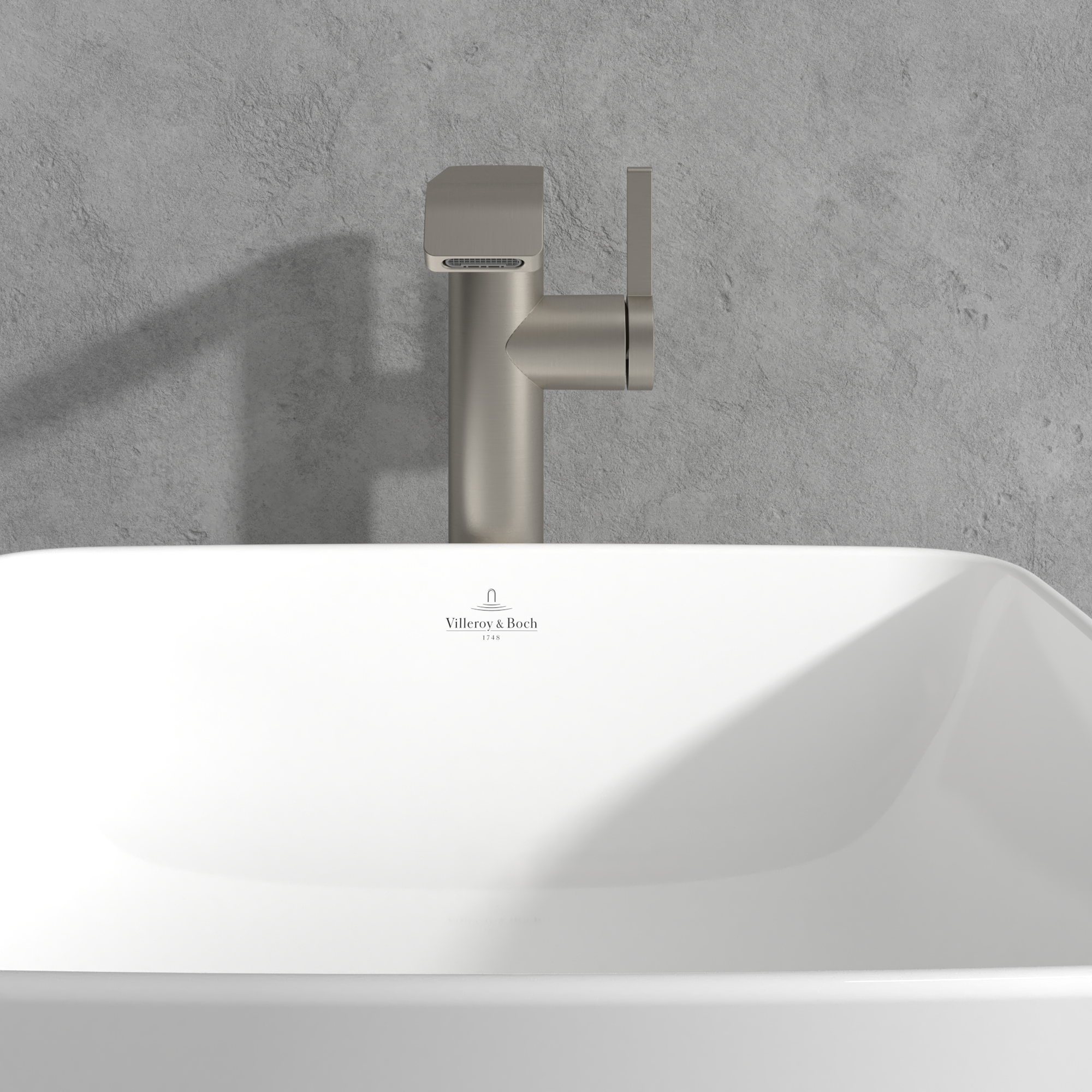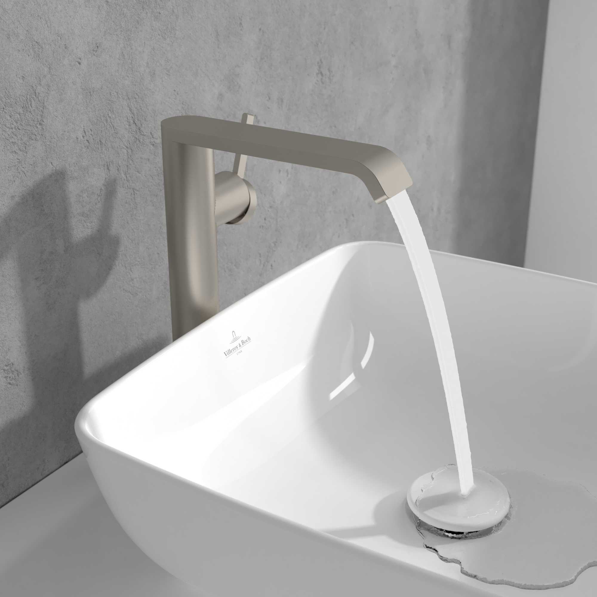 Dawn Tall basin mixer with side-lever, Without waste, Brushed Nickel Matt