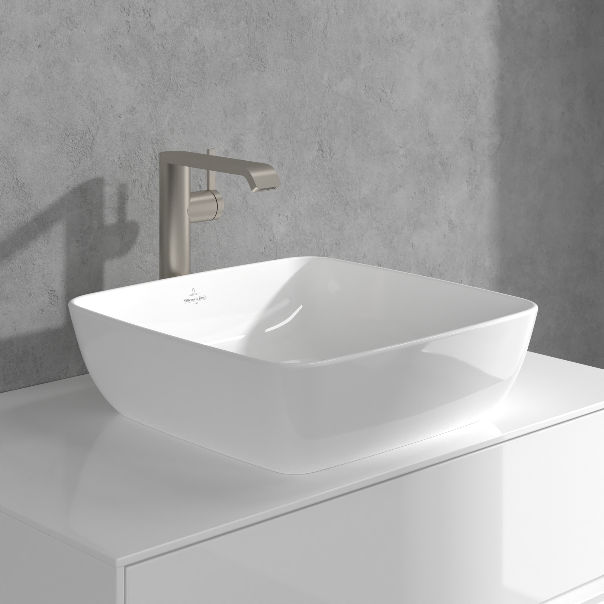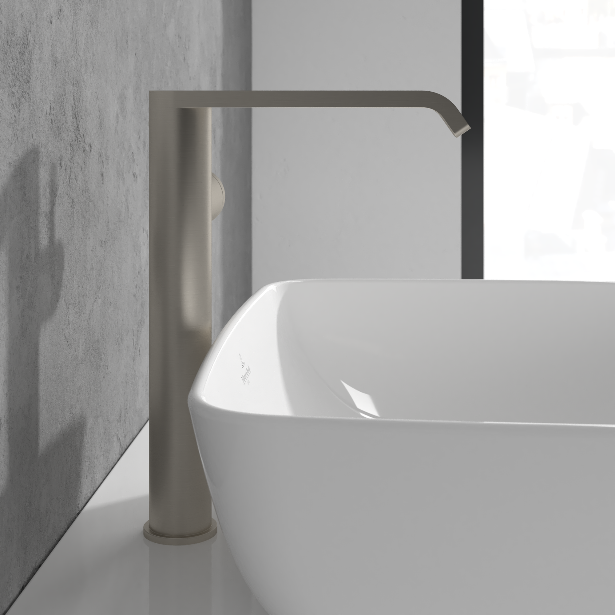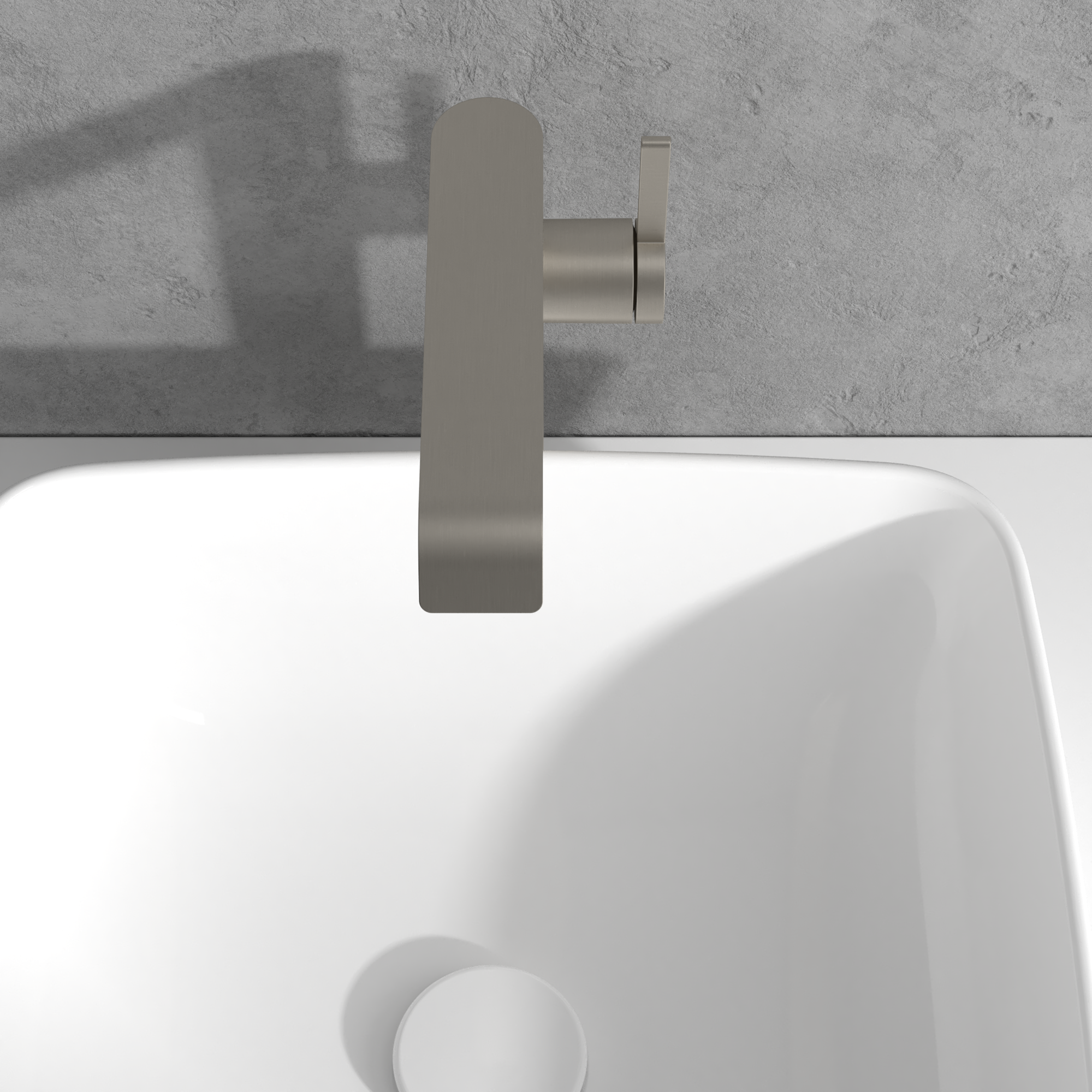 Dawn Tall basin mixer with side-lever, Without waste, Brushed Nickel Matt