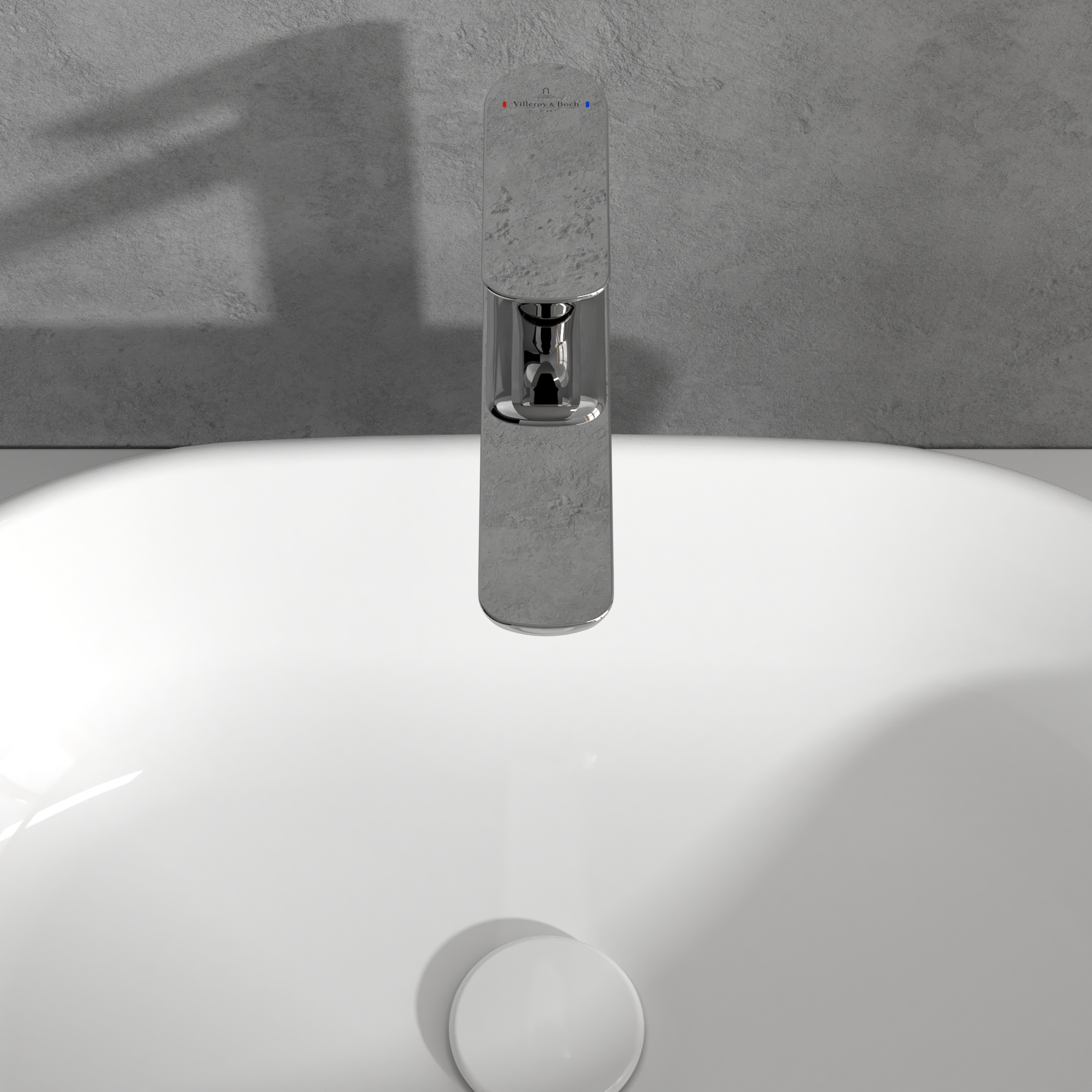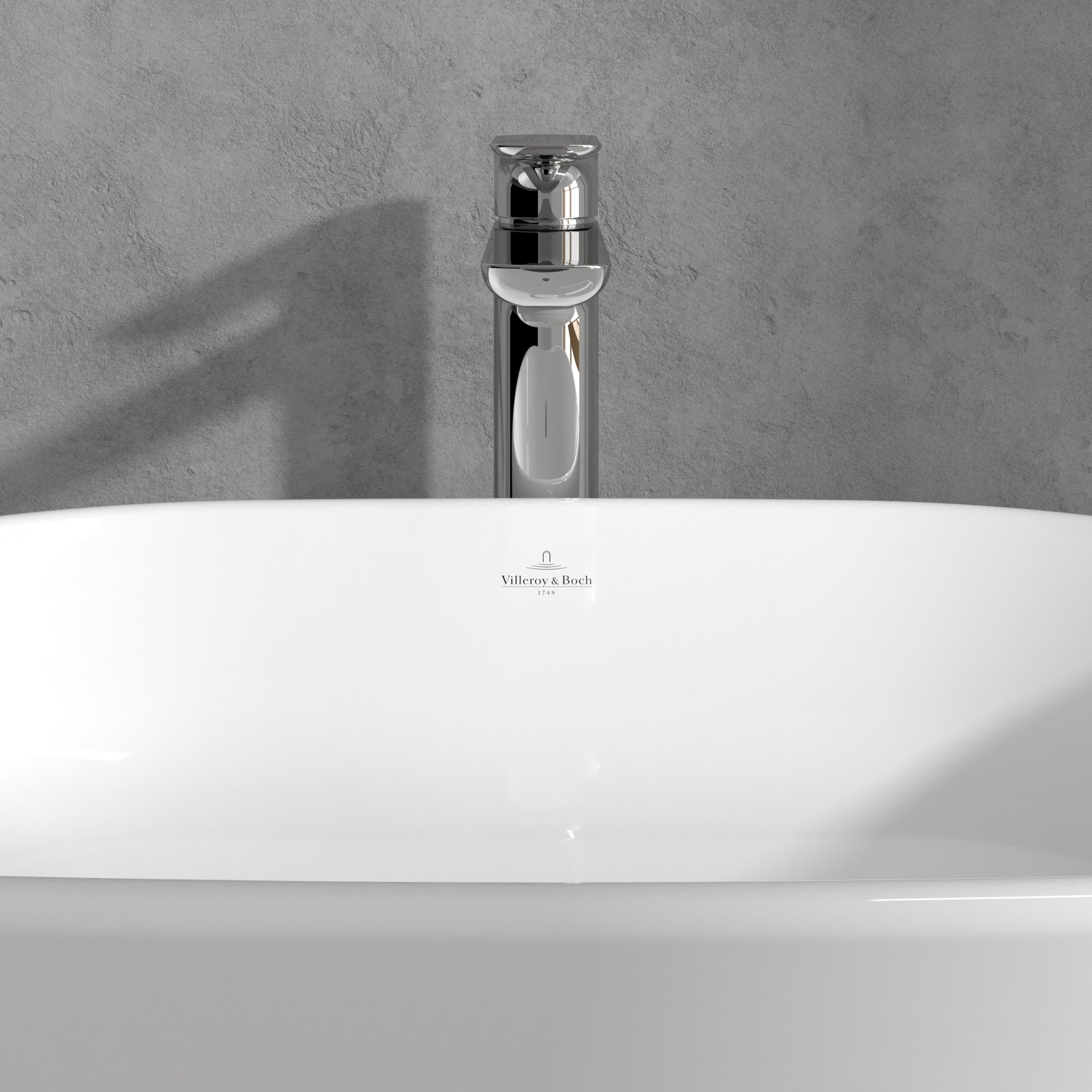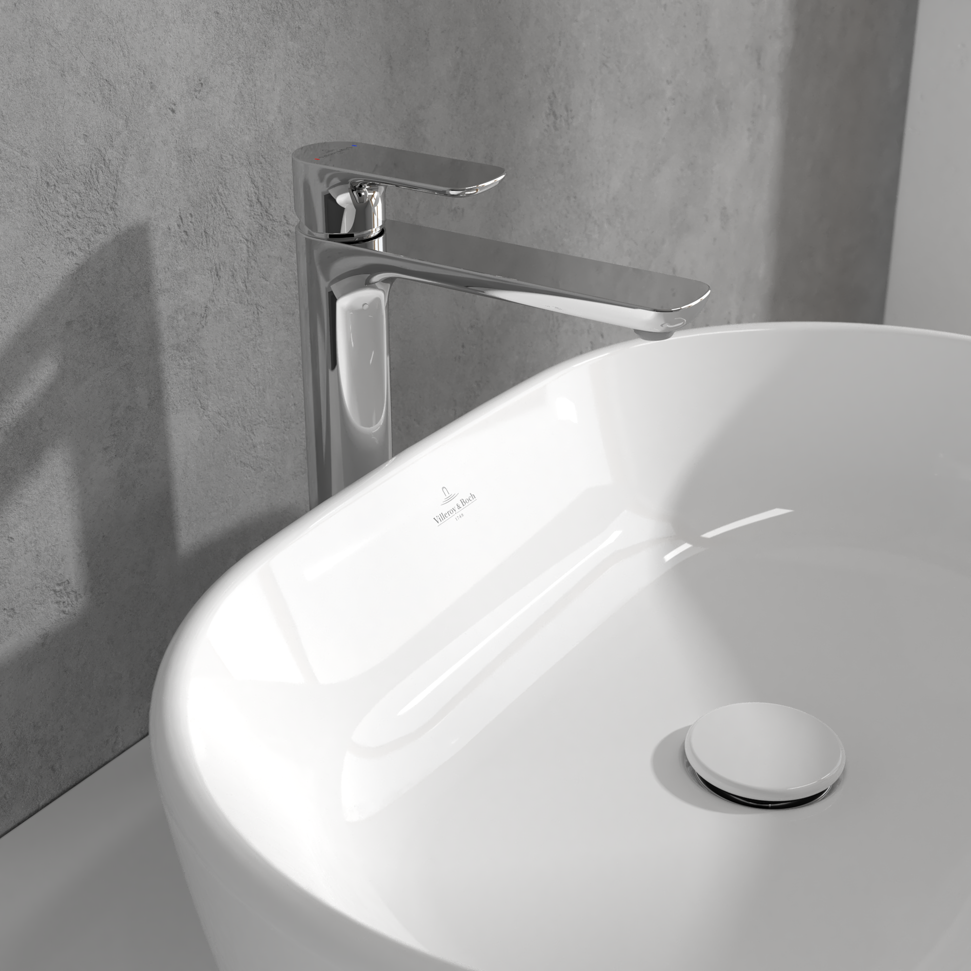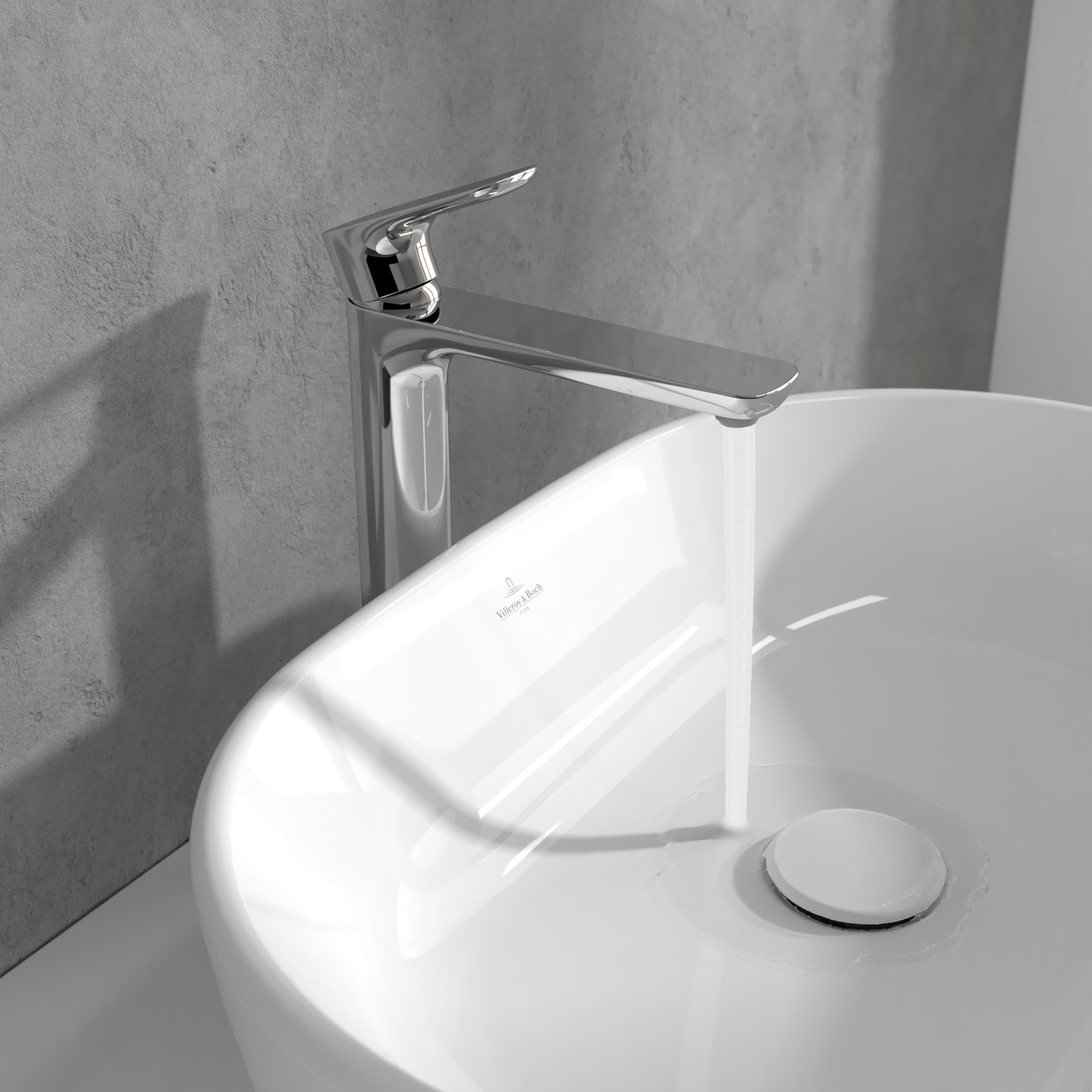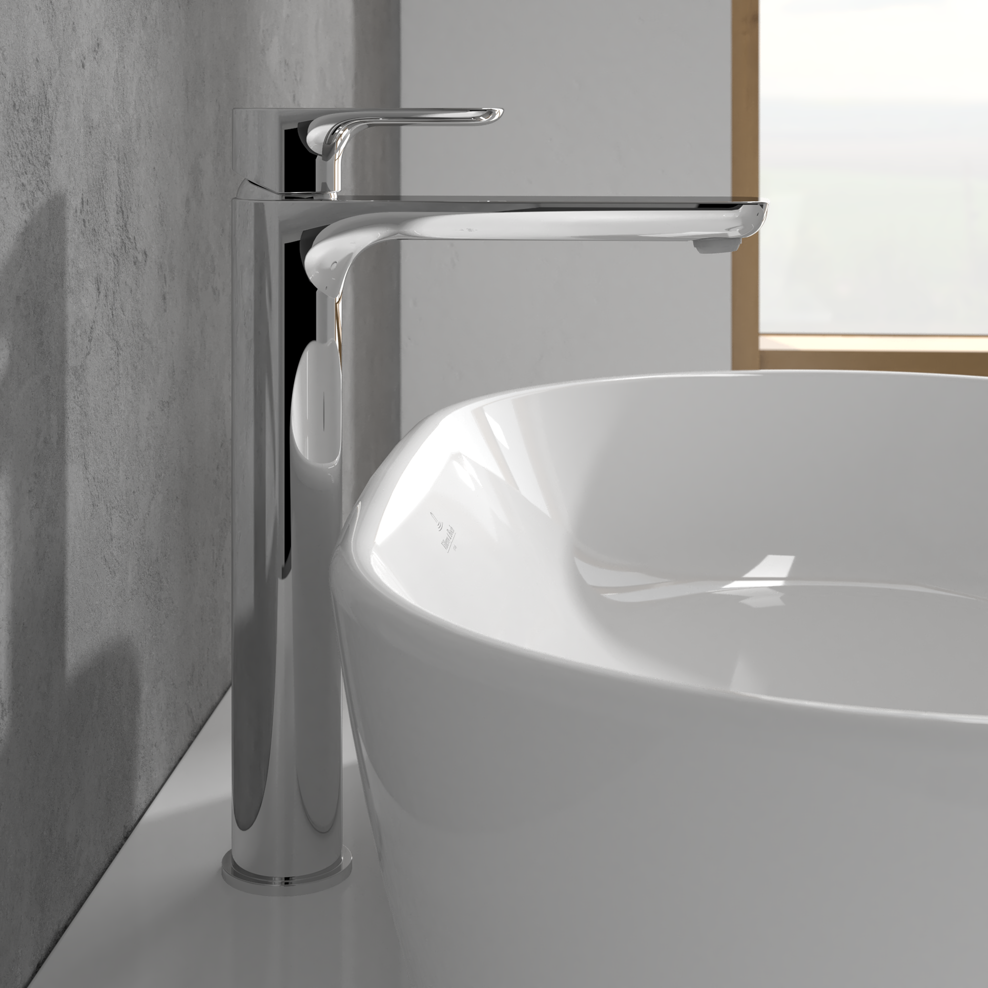 Practical tap fitting height, ideal for combination with surface-mounted washbasins