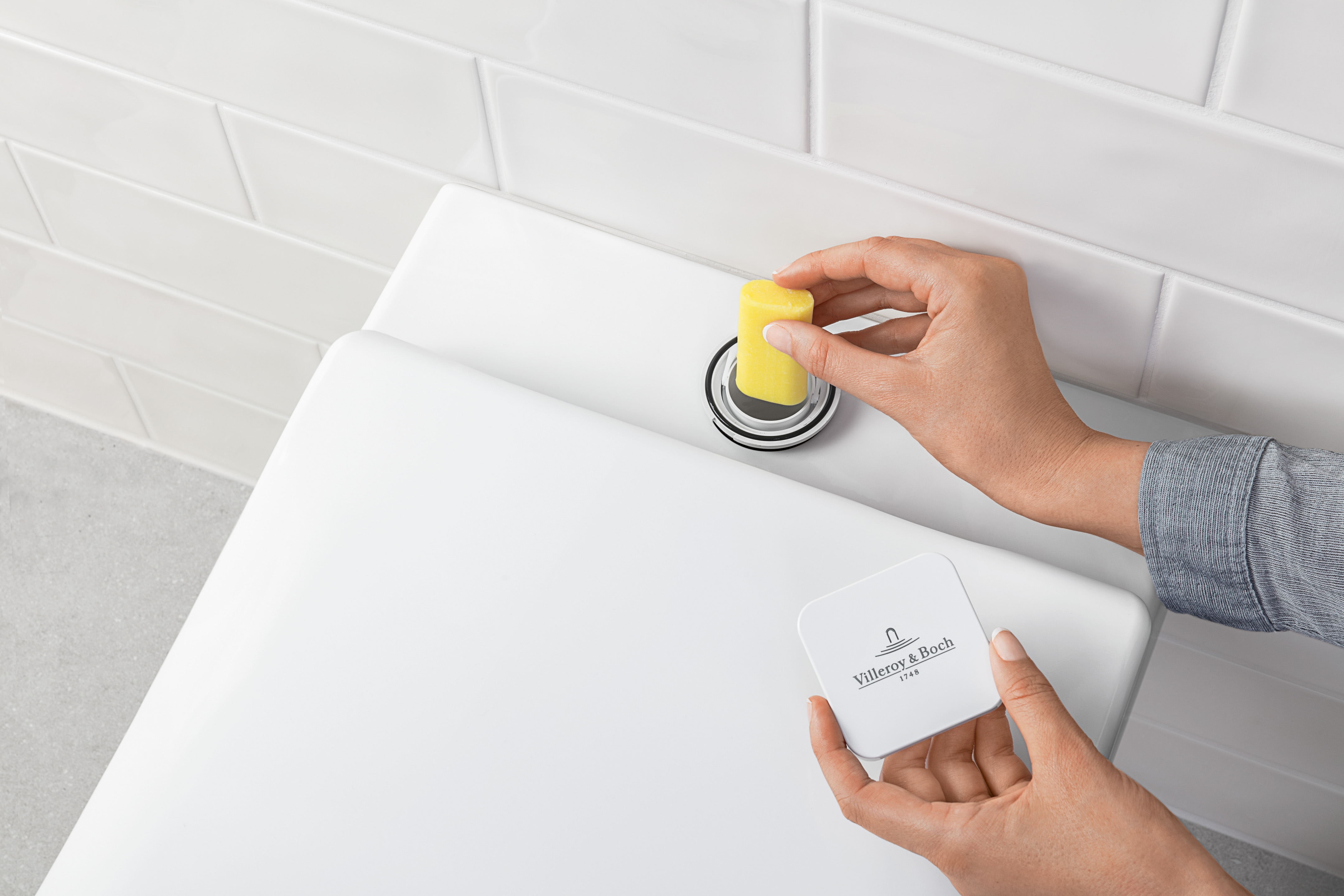 2 x integrated holders for rim blocks and gel cleaners with twist-on lids in White and Chrome (ViFresh technology)