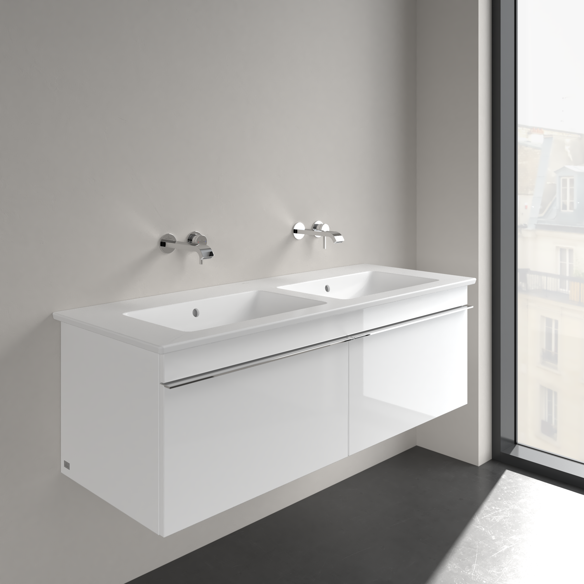 Venticello Double vanity washbasin, 1300x500x170mm, with overflow, Stone White CeramicPlus