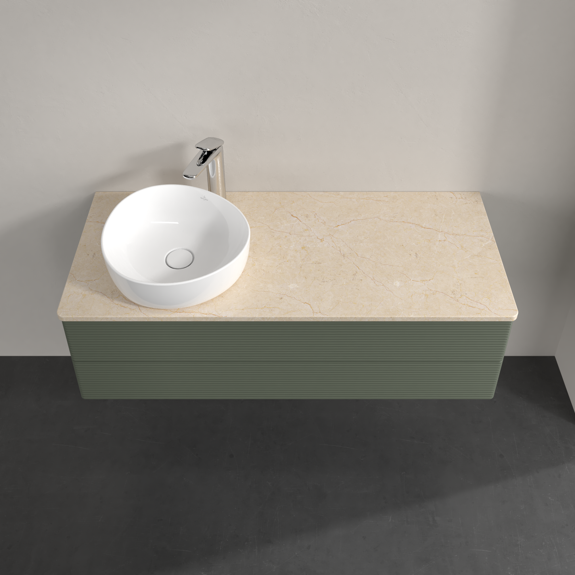 Antao Vanity unit, 2 pull-out compartments, 1200x360x500mm, Front with grain texture, Body: Leaf Green Matt Lacquer, Front: Leaf Green Matt Lacquer, Cover plate: Botticino