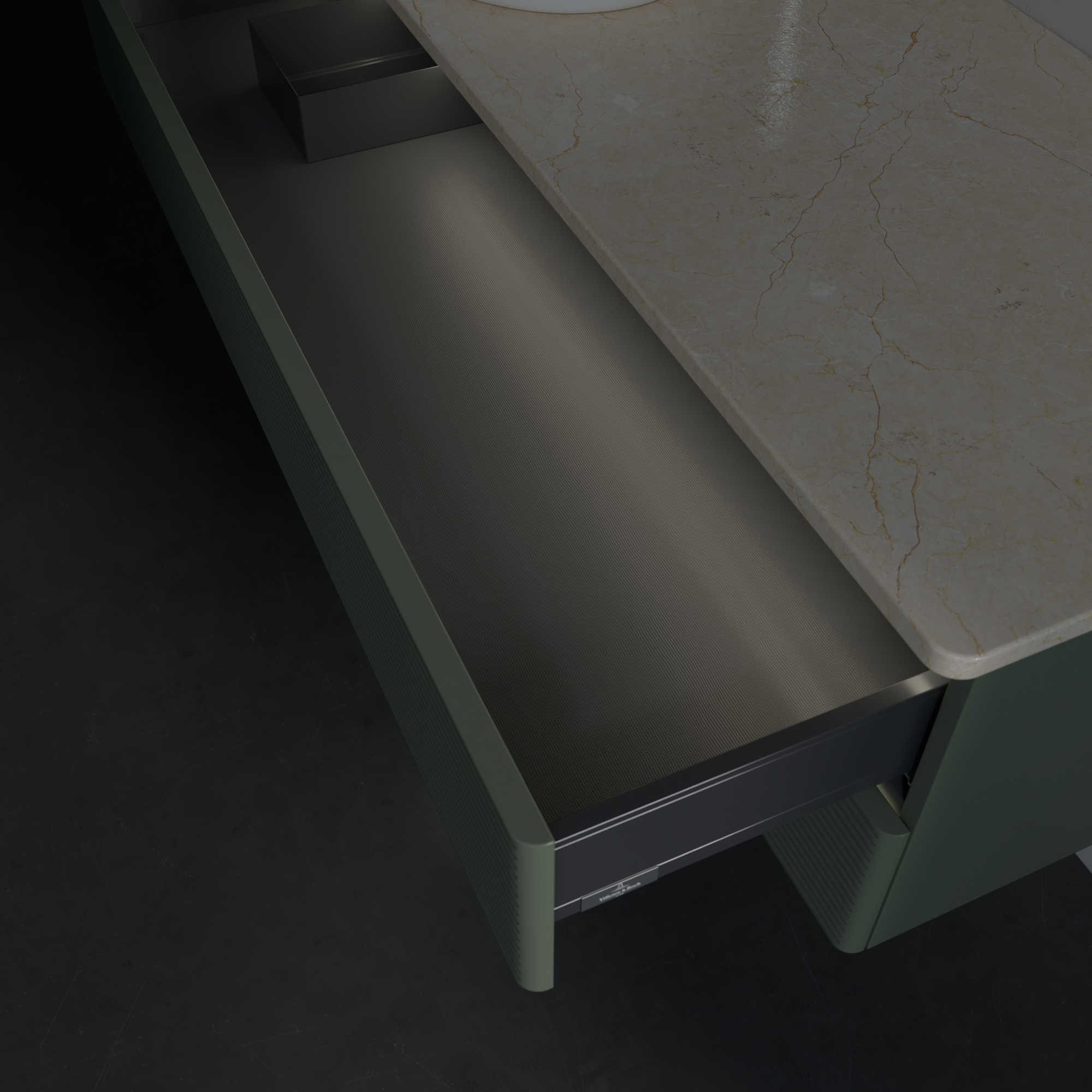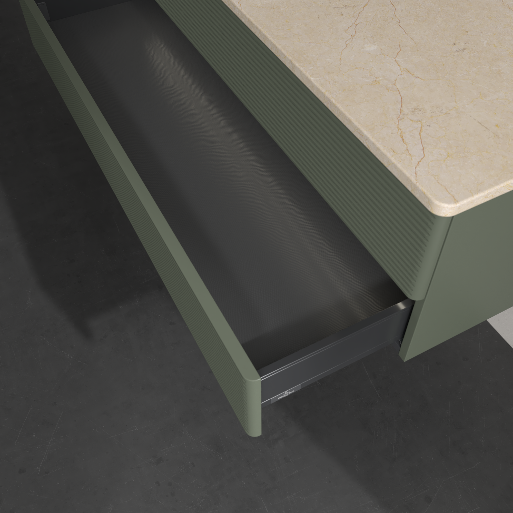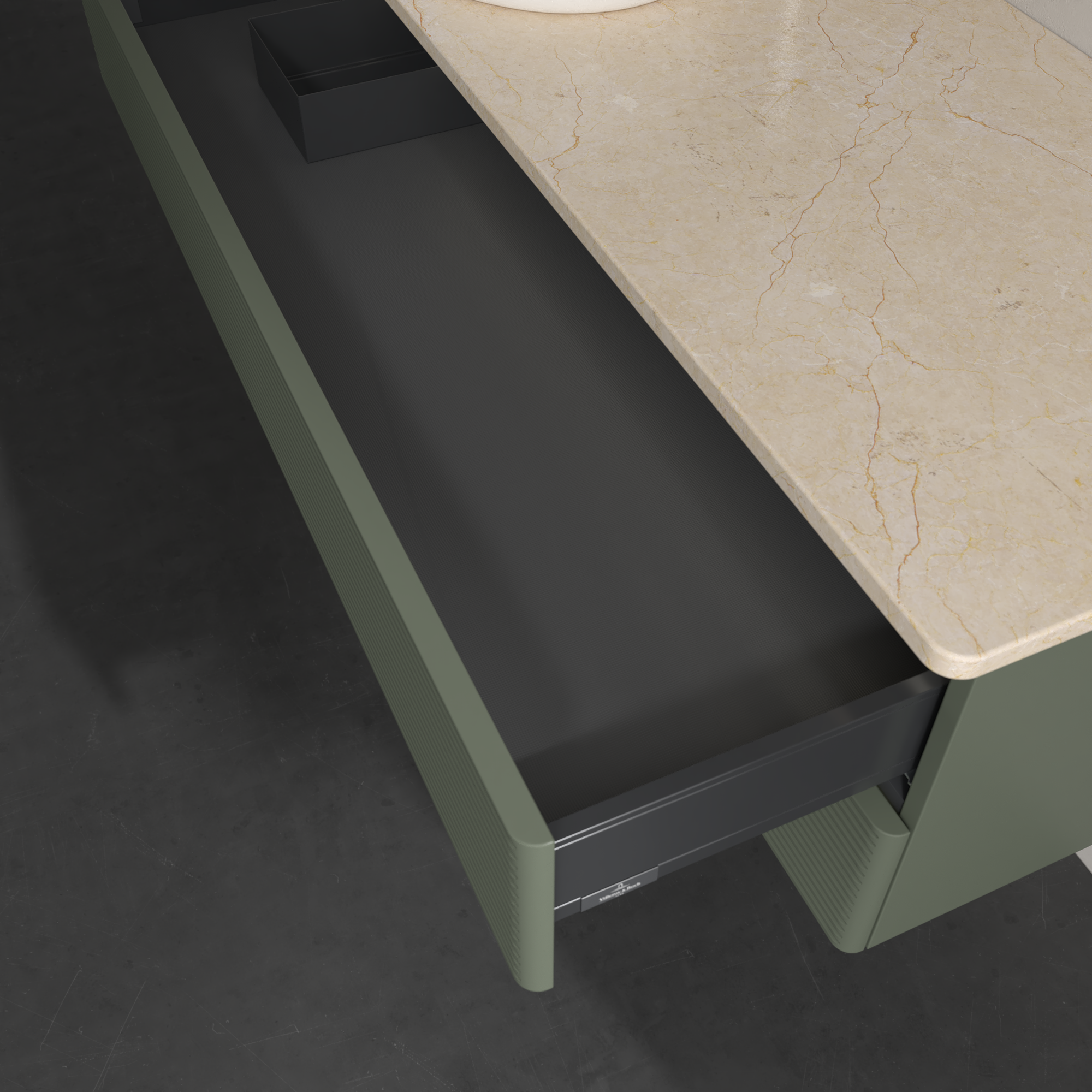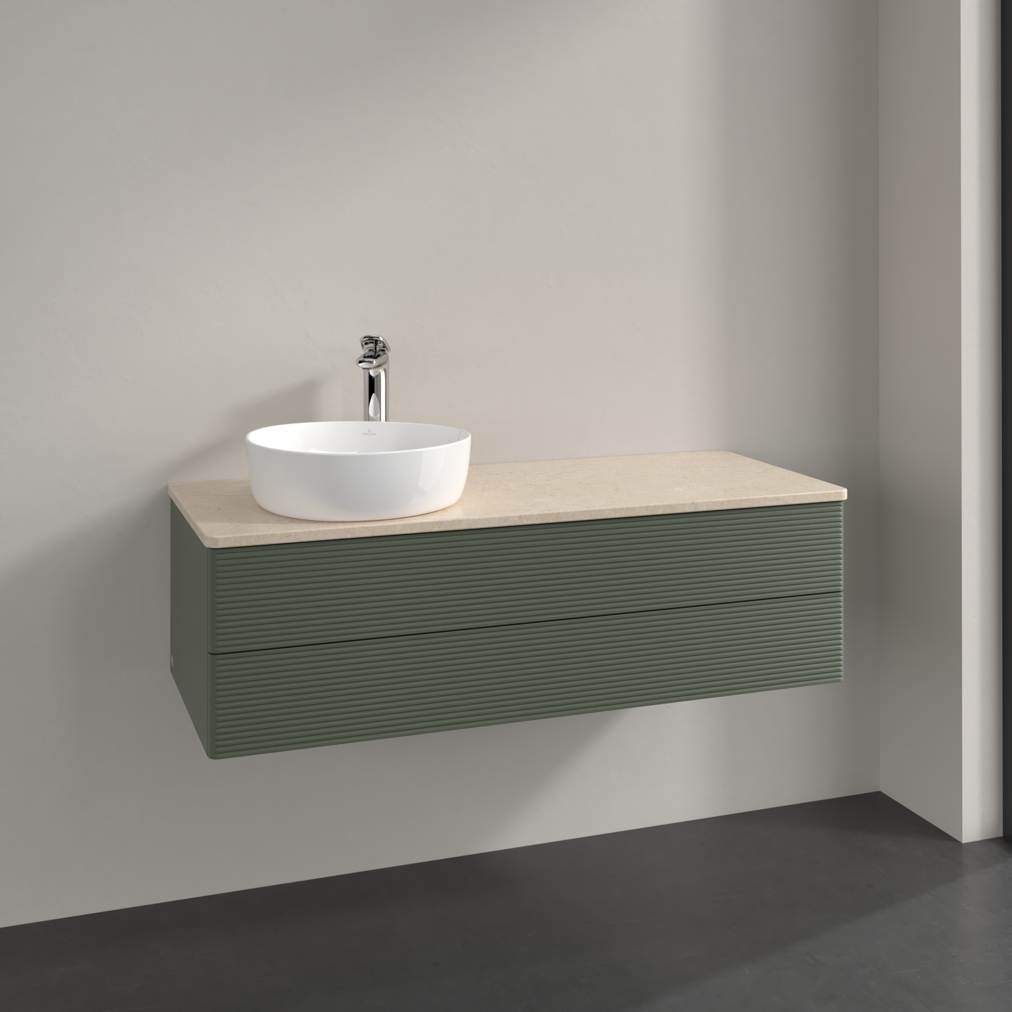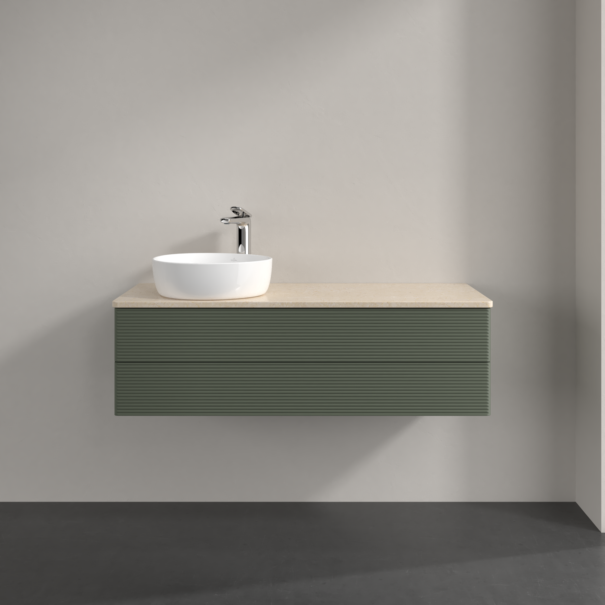 Antao Vanity unit, with lighting, 2 pull-out compartments, 1200x360x500mm, Front with grain texture, Body: Leaf Green Matt Lacquer, Front: Leaf Green Matt Lacquer, Cover plate: Botticino