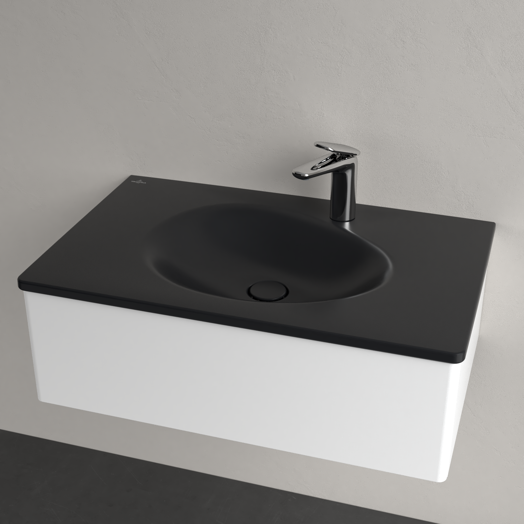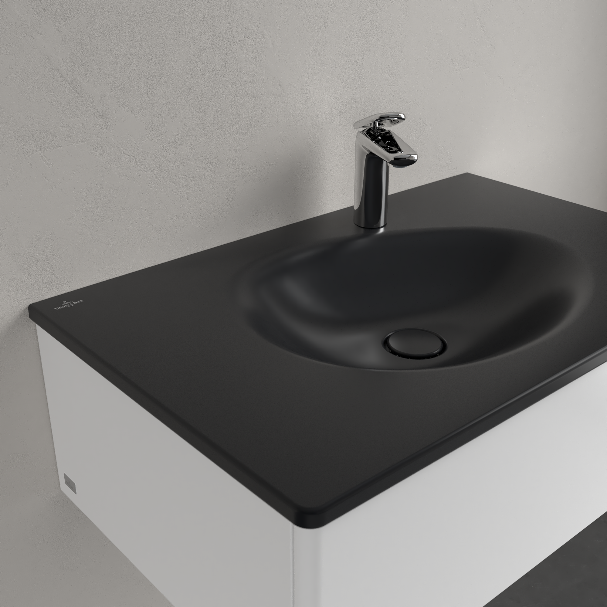 Antao Vanity washbasin, 800x500x150mm, with concealed overflow, Pure Black CeramicPlus