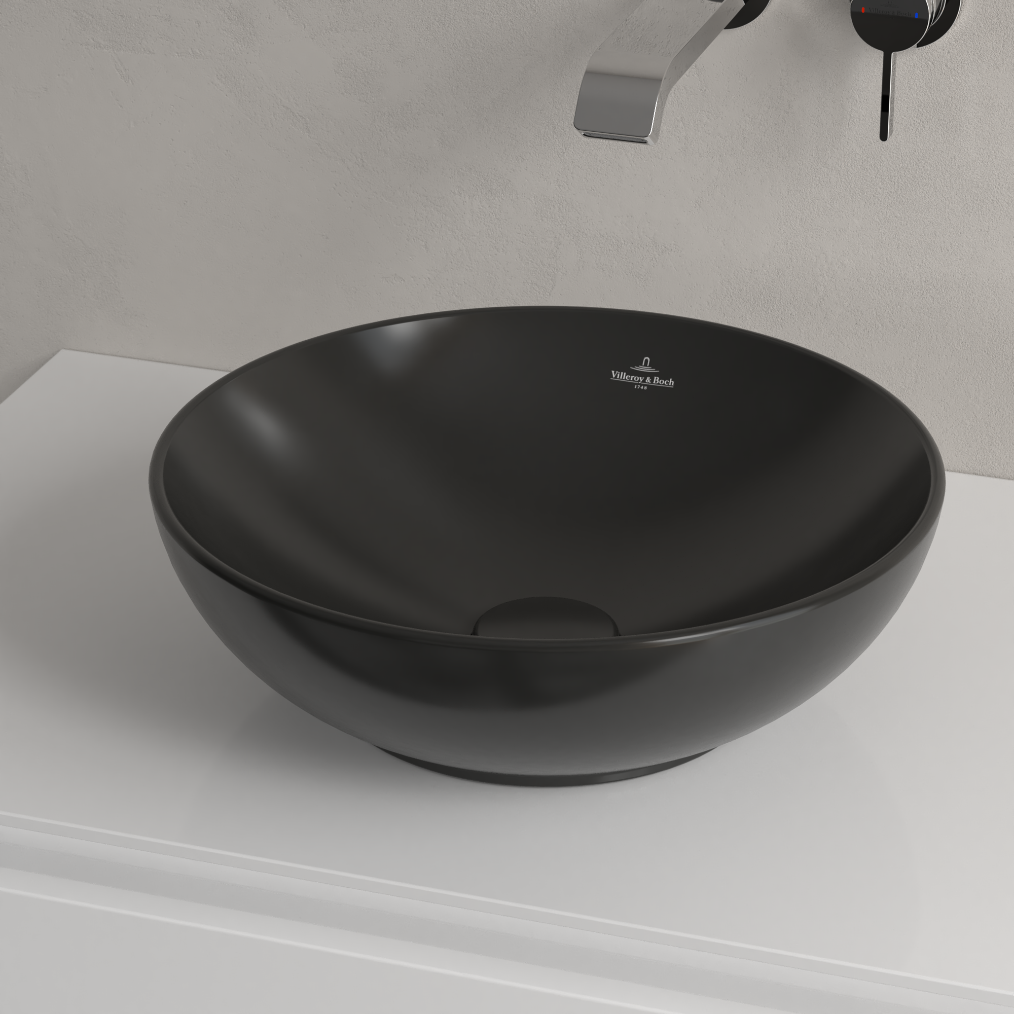 Loop & Friends Surface-mounted washbasin, 380x380x150mm, with overflow, Pure Black CeramicPlus