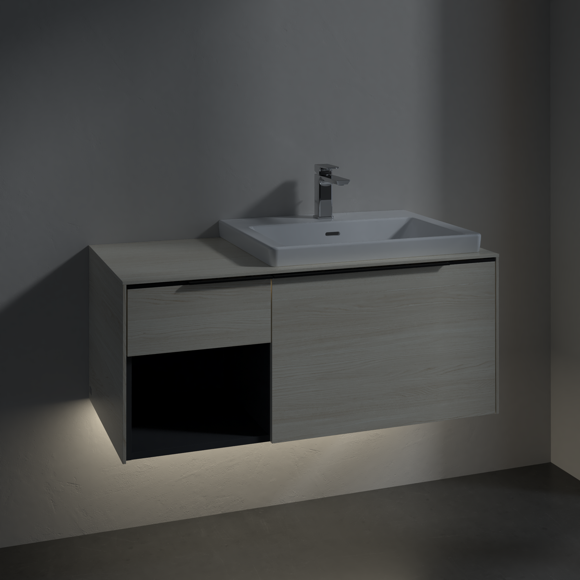 Subway 3.0 Vanity unit, with lighting, 2 pull-out compartments, 1001x423x500mm, Body: White Oak, Front: White Oak