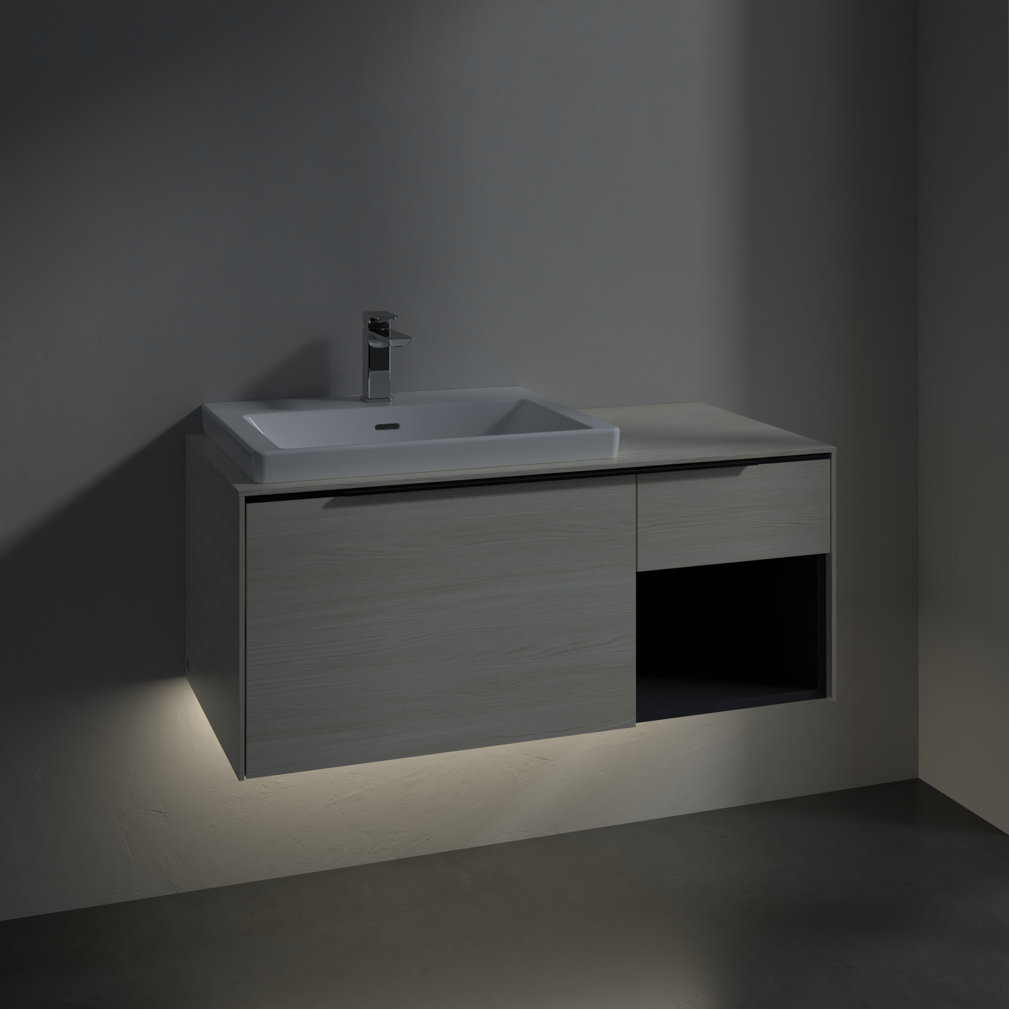 Subway 3.0 Vanity unit, with lighting, 2 pull-out compartments, 1001x423x500mm, Body: White Oak, Front: White Oak