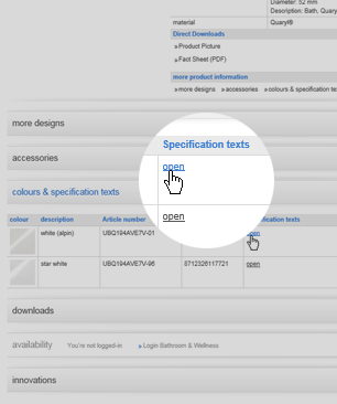 3OPEN PRODUCT SPECIFICATIONS On the product specifications page, open the tab “Colours and product specifications” and click on “open” to view the text.