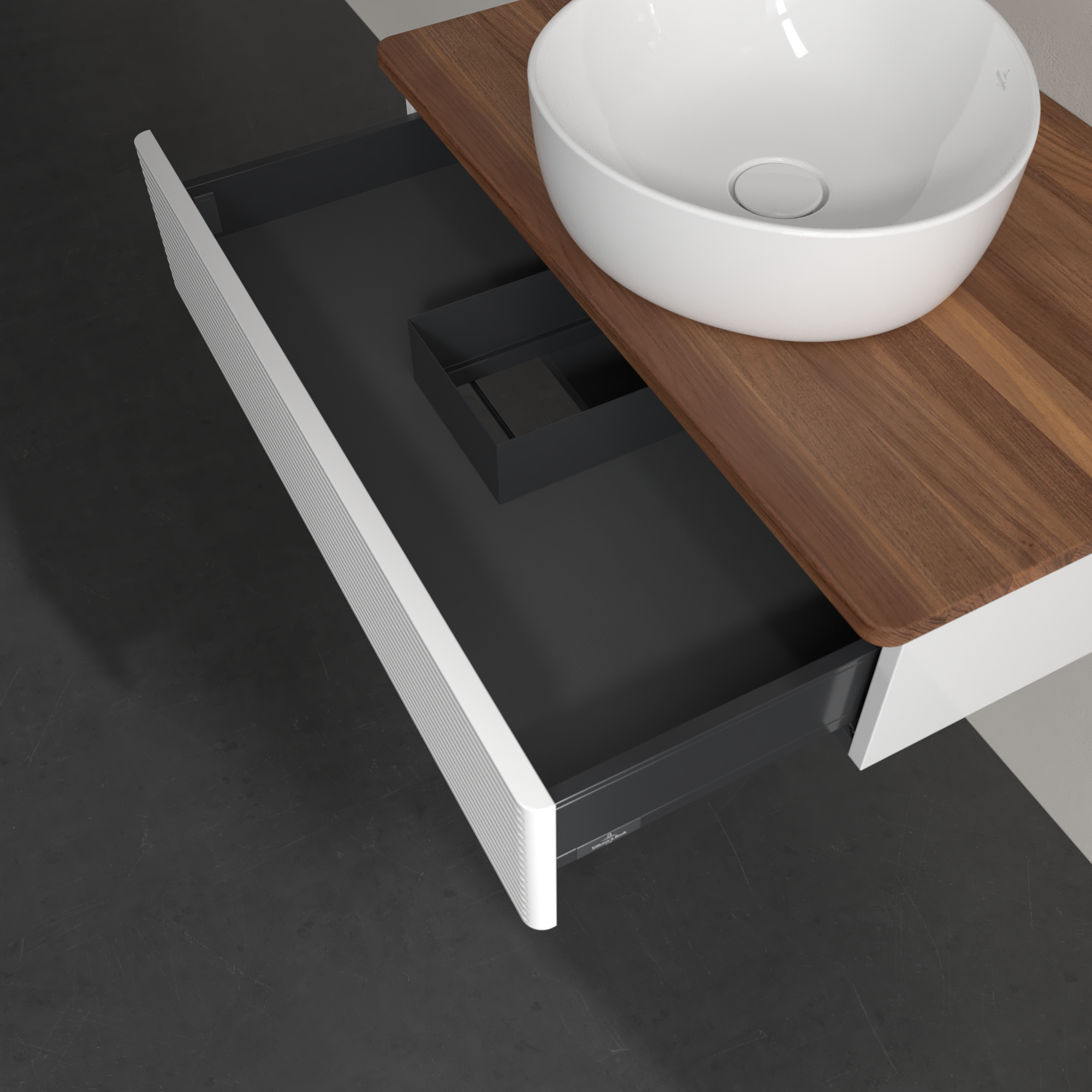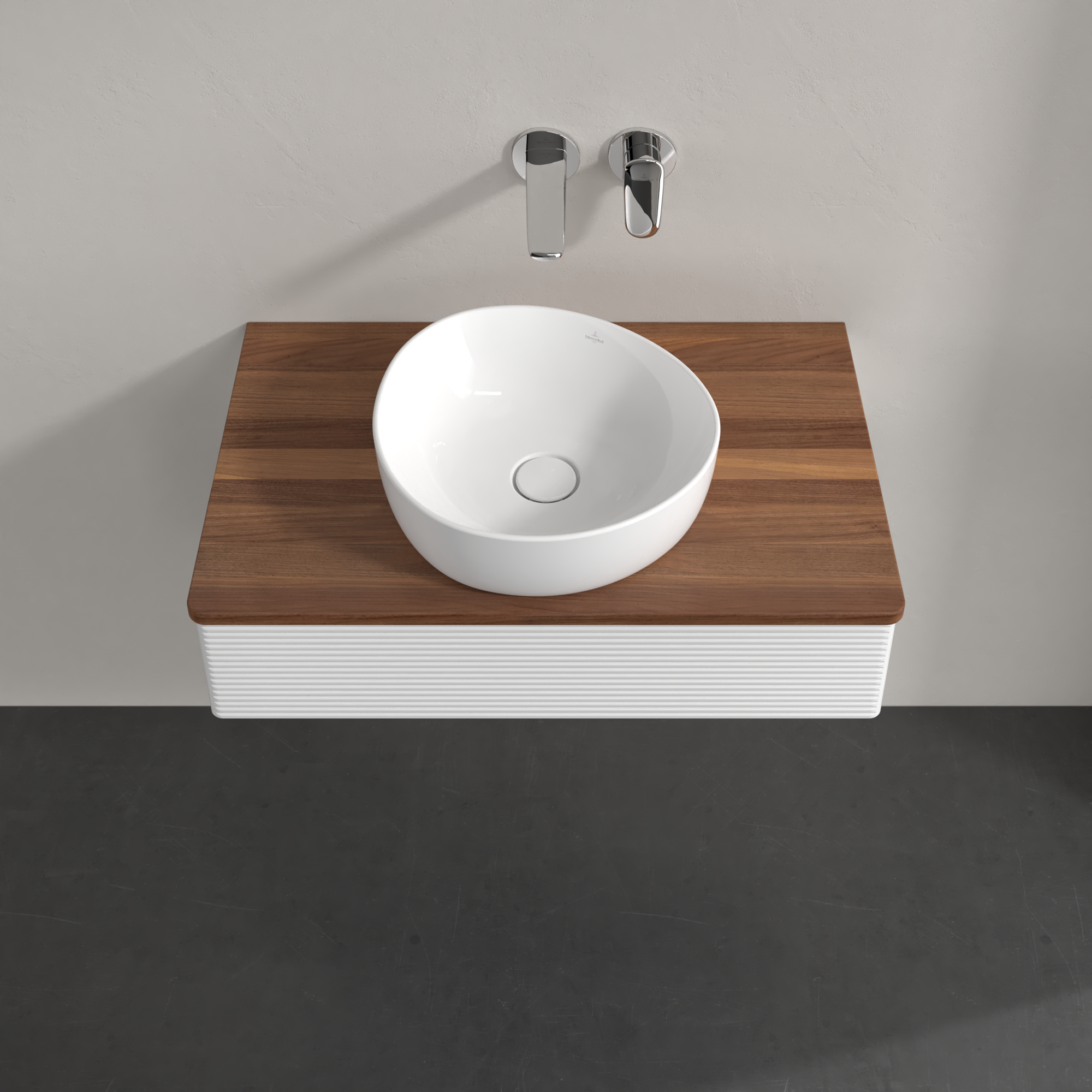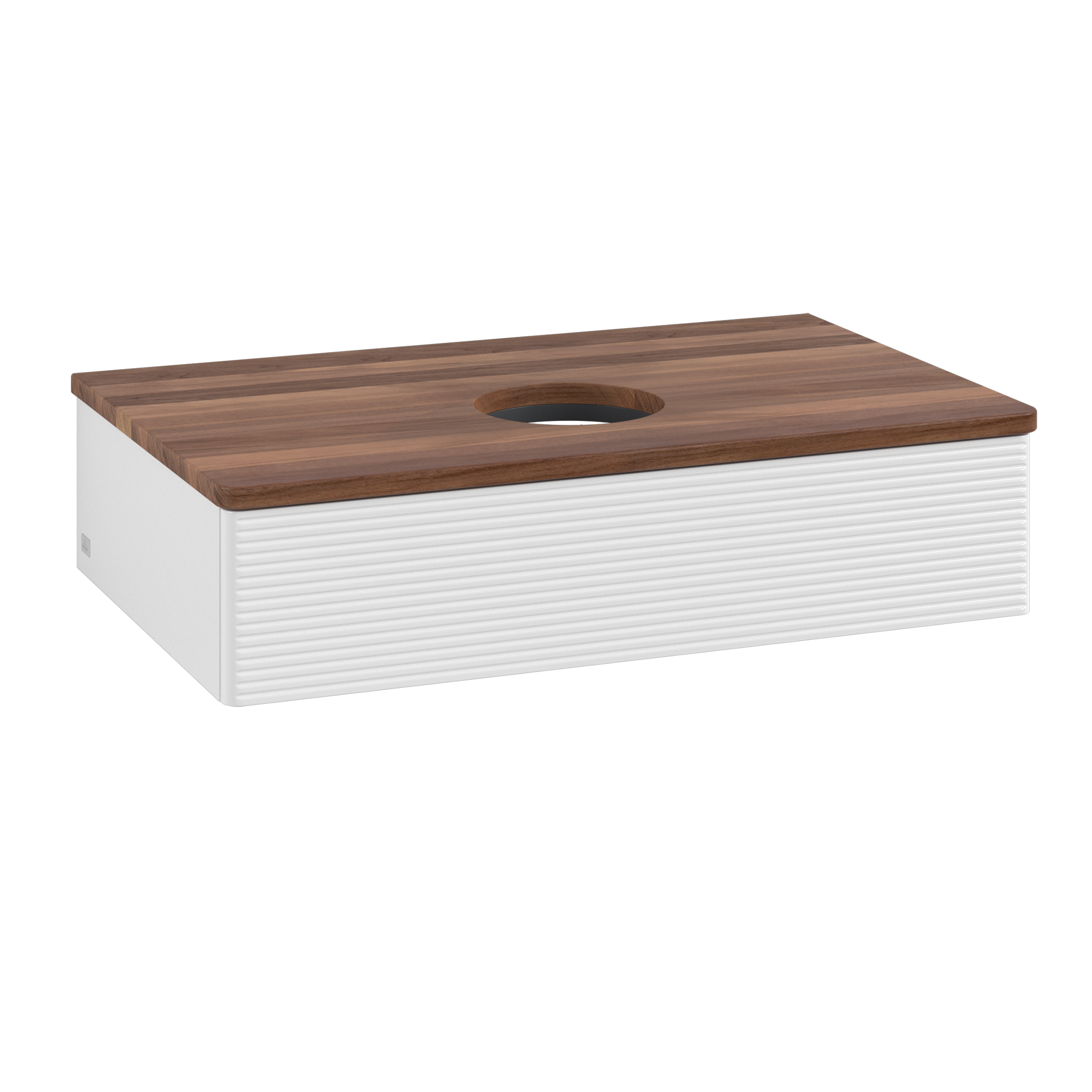 Antao Vanity unit, 1 pull-out compartment, 800x190x500mm, Front with grain texture, Body: Glossy White Lacquer, Front: Glossy White Lacquer, Cover plate: Warm Walnut