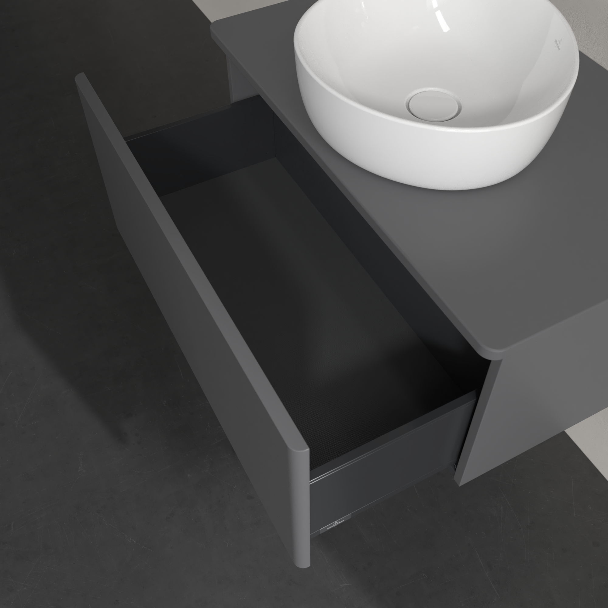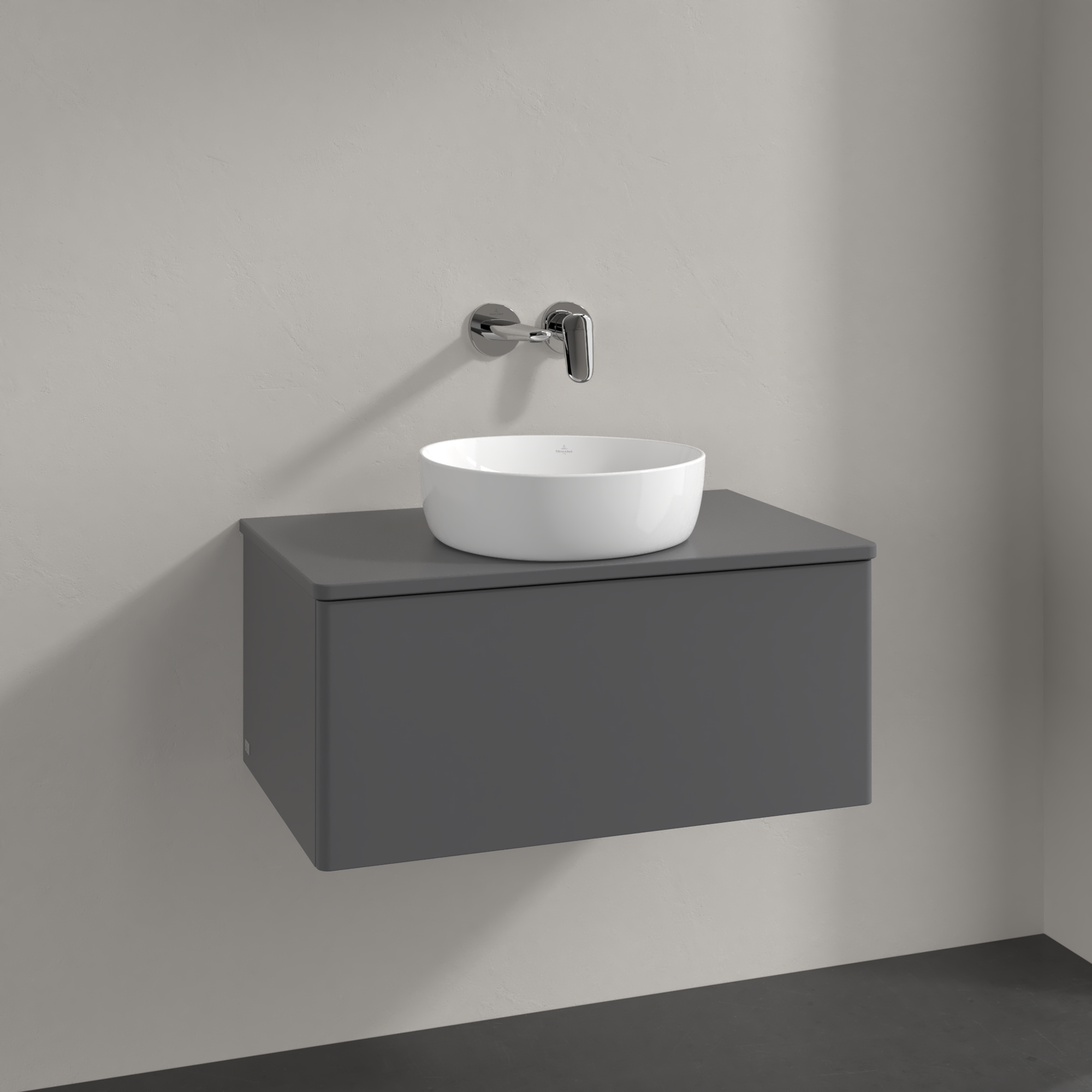 Antao Vanity unit, 1 pull-out compartment, 800x360x500mm, Front without structure, Body: Anthracite Matt Lacquer, Front: Anthracite Matt Lacquer, Cover plate: Anthracite Matt Lacquer