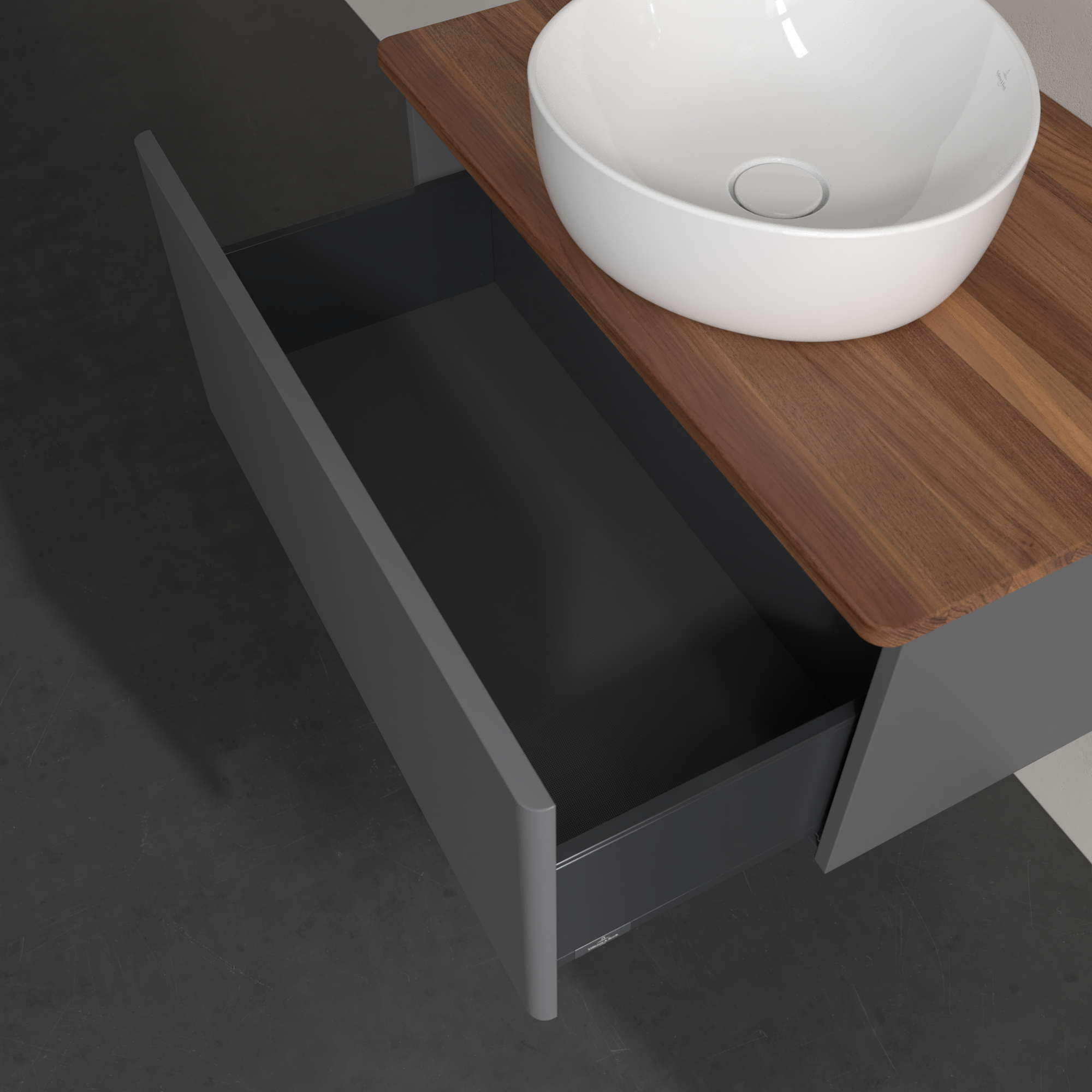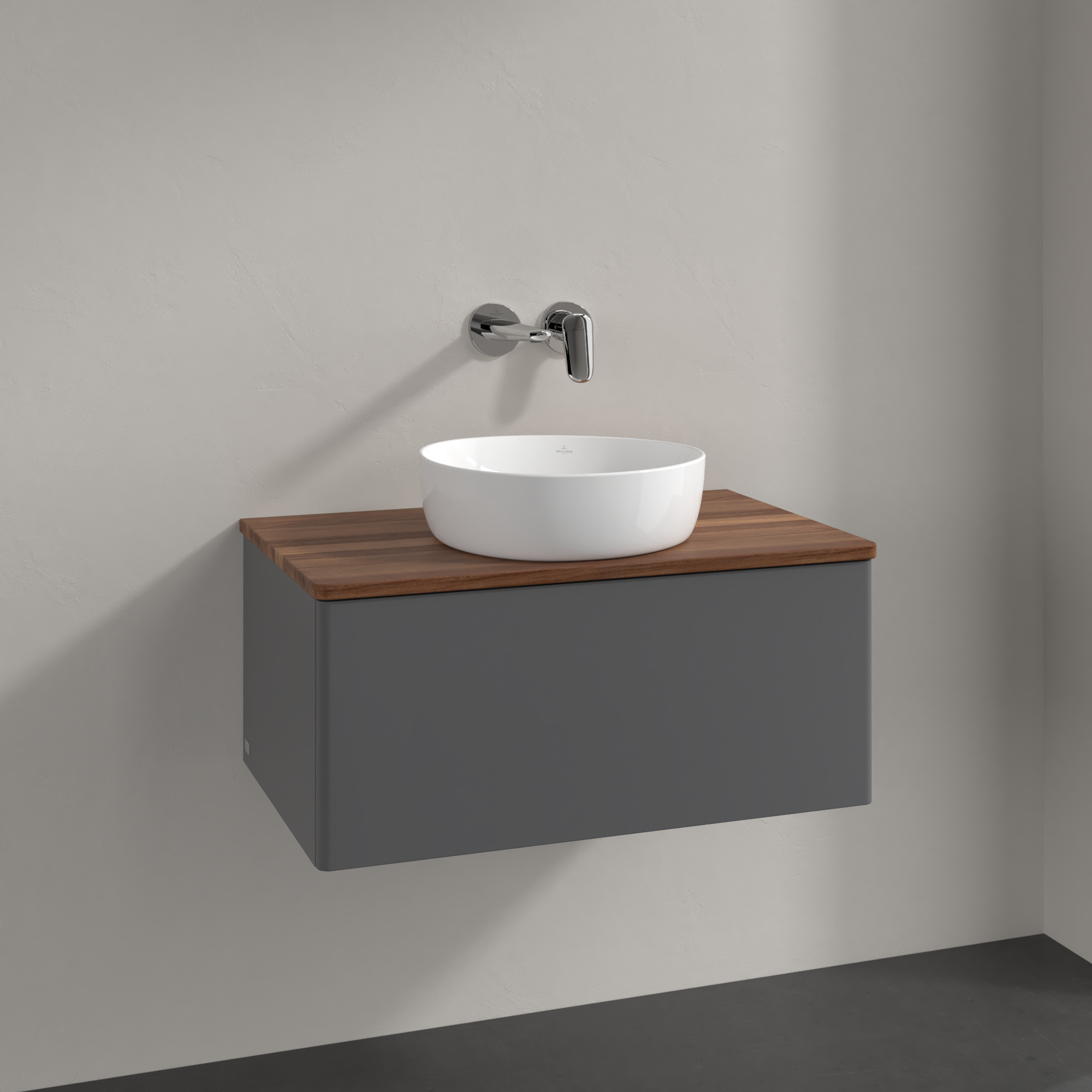 Antao Vanity unit, 1 pull-out compartment, 800x360x500mm, Front without structure, Body: Anthracite Matt Lacquer, Front: Anthracite Matt Lacquer, Cover plate: Warm Walnut