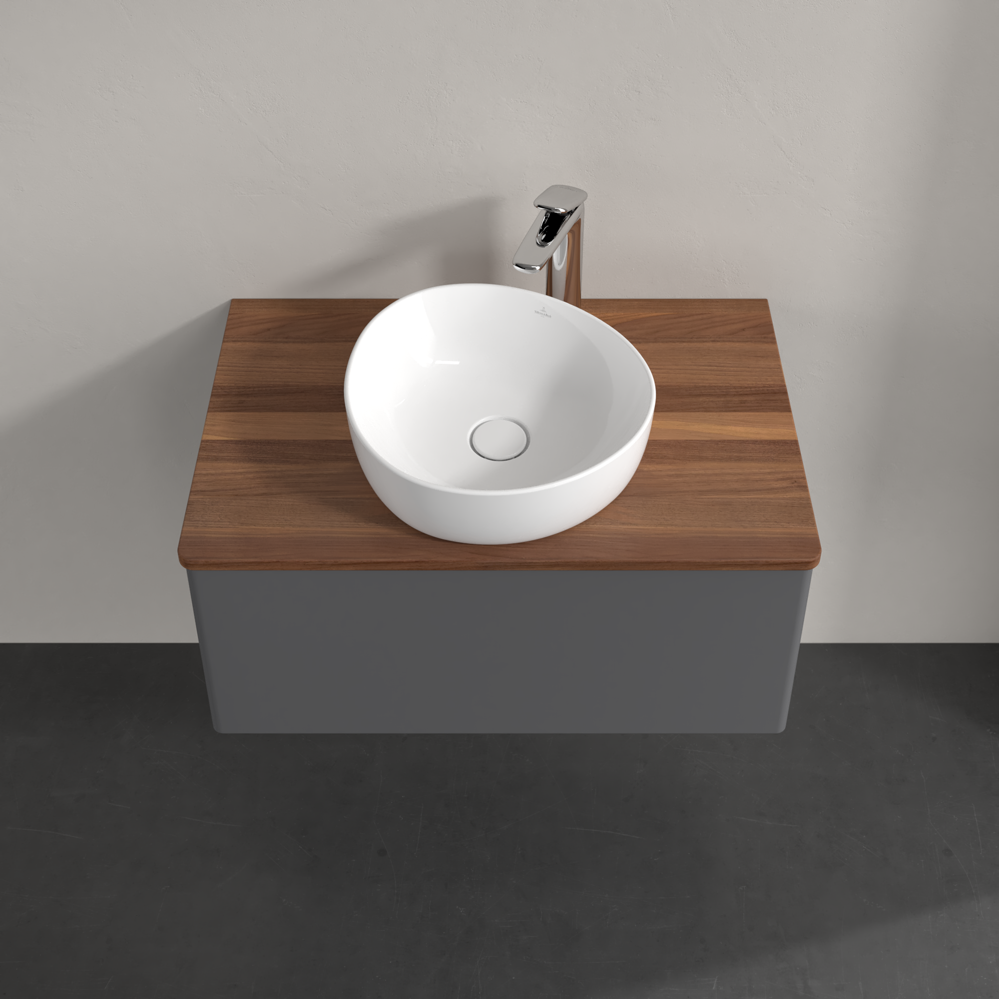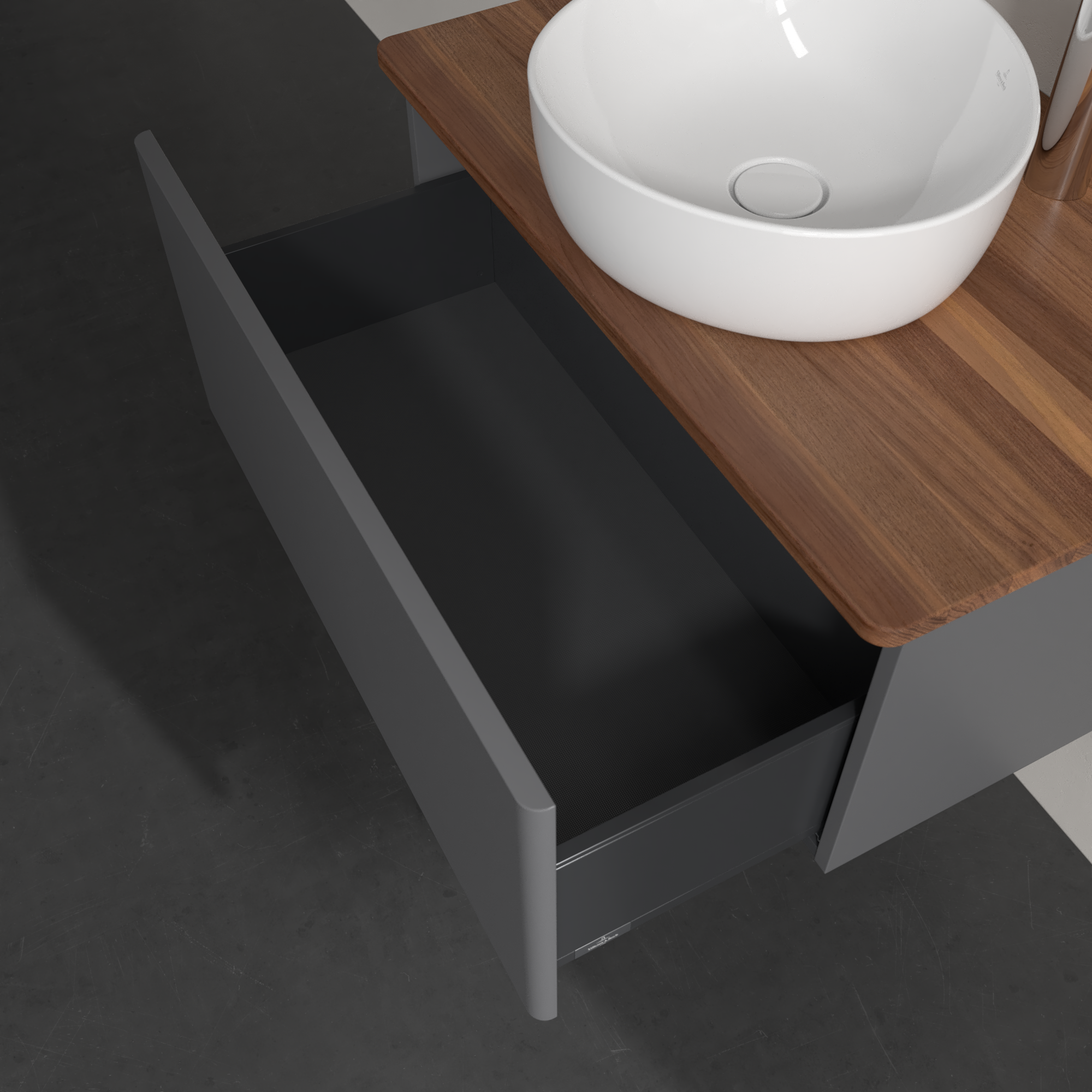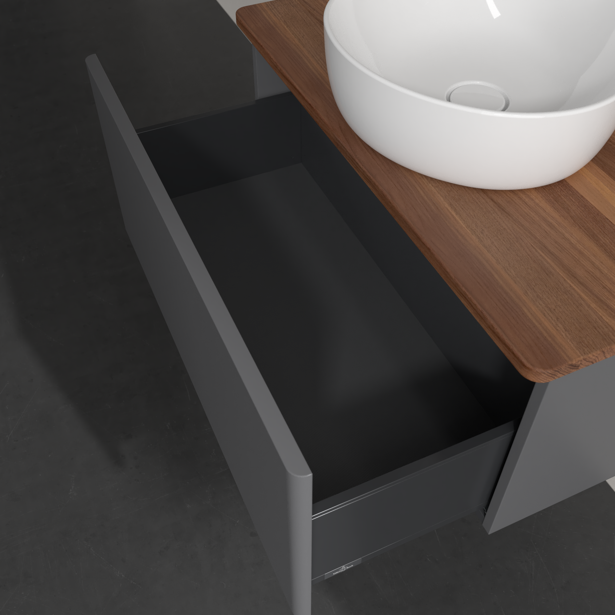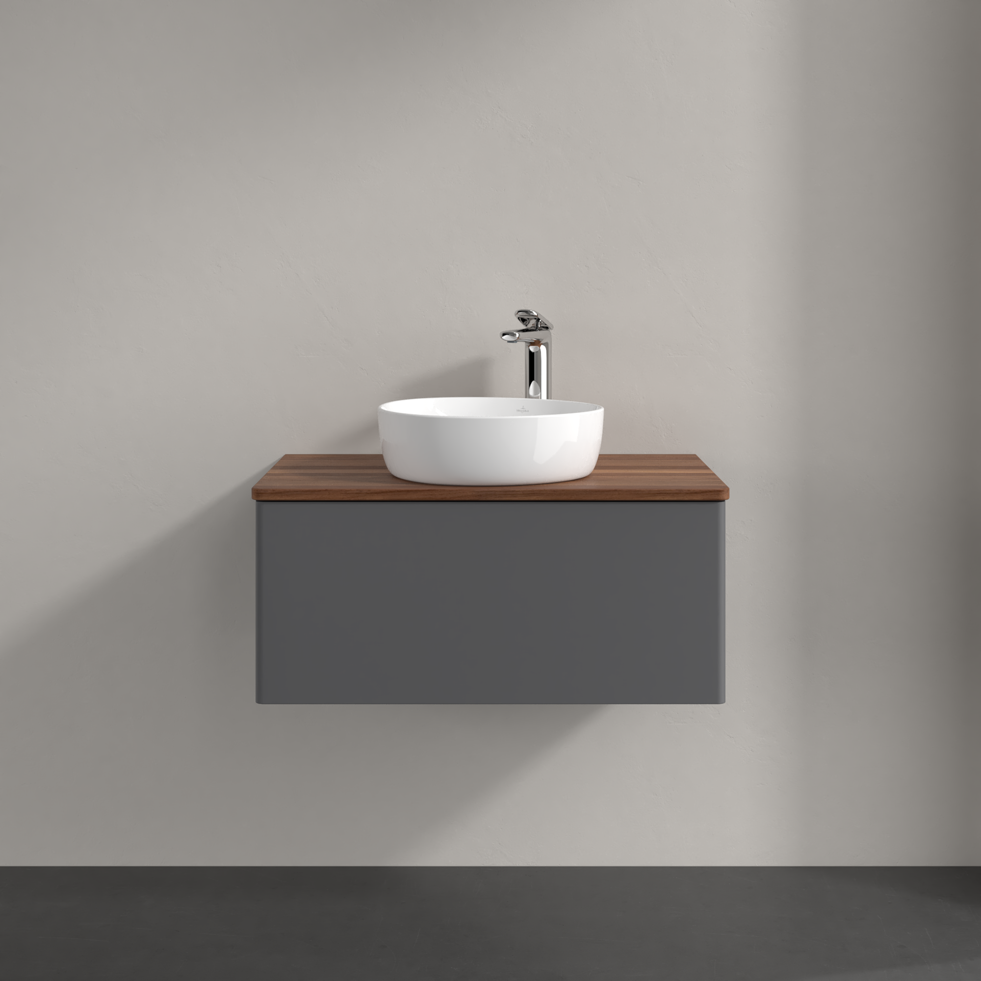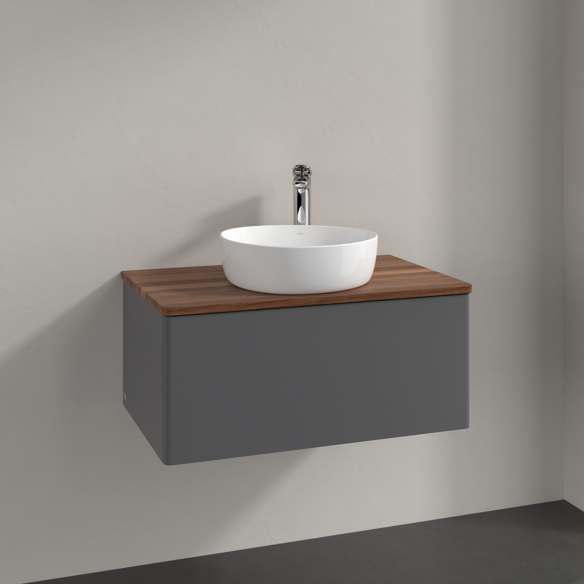 Antao Vanity unit, 1 pull-out compartment, 800x360x500mm, Front without structure, Body: Anthracite Matt Lacquer, Front: Anthracite Matt Lacquer, Cover plate: Warm Walnut