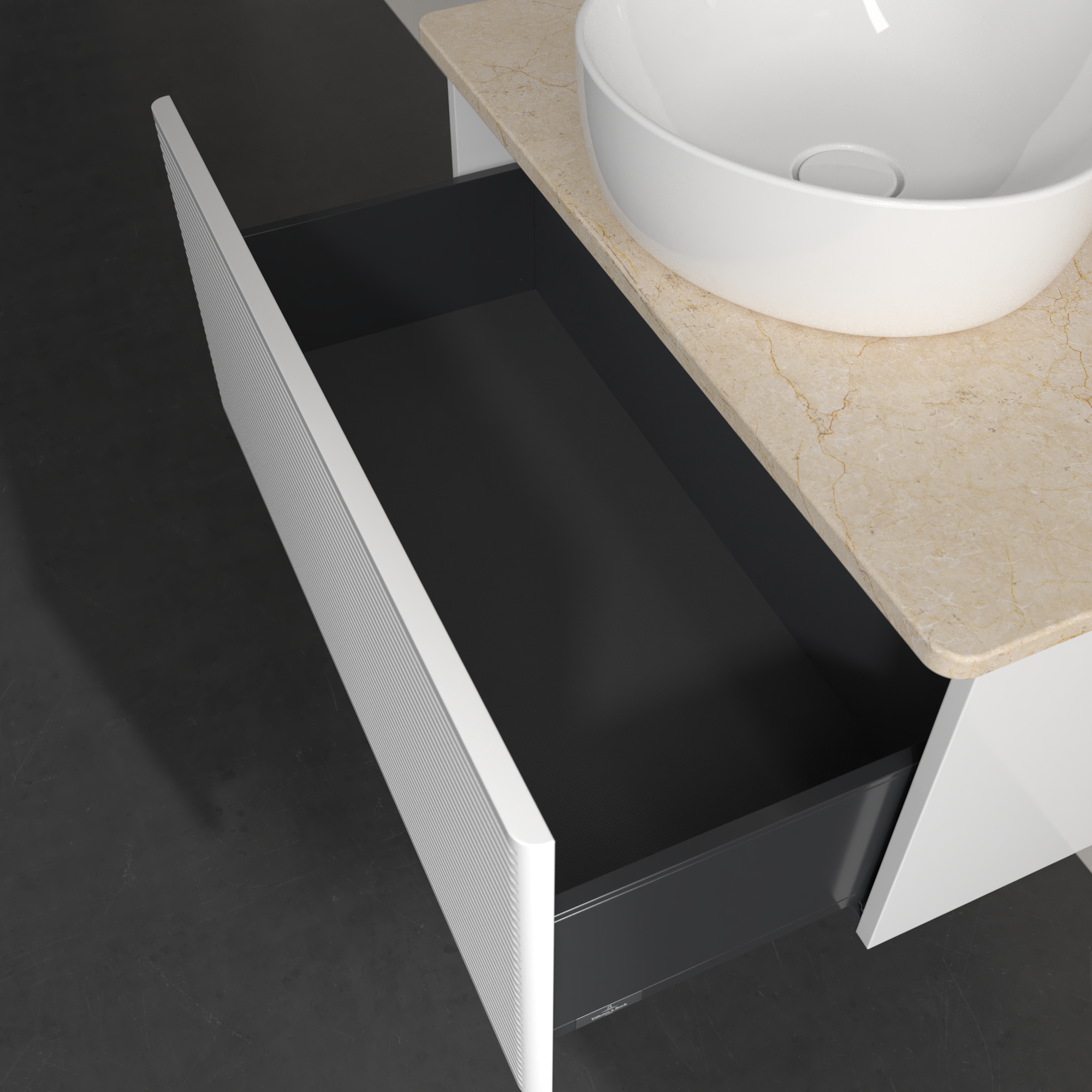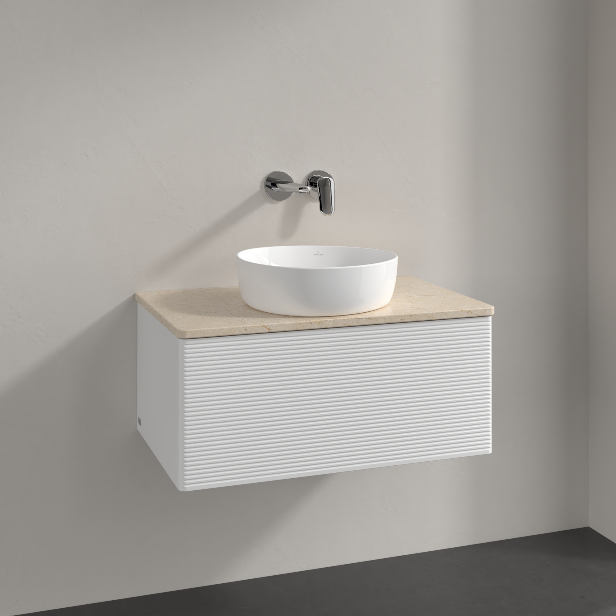 Antao Vanity unit, 1 pull-out compartment, 800x360x500mm, Front with grain texture, Body: Glossy White Lacquer, Front: Glossy White Lacquer, Cover plate: Botticino