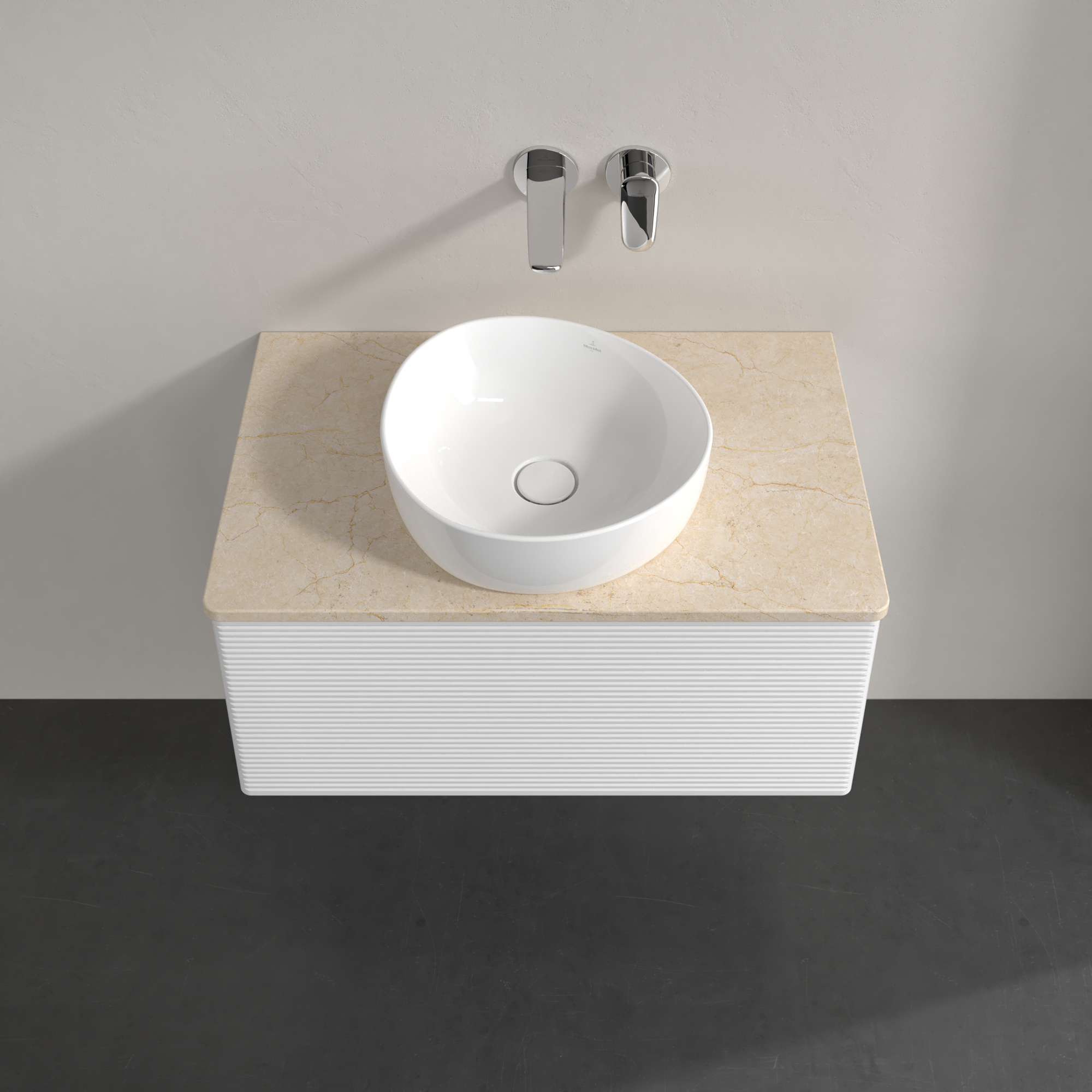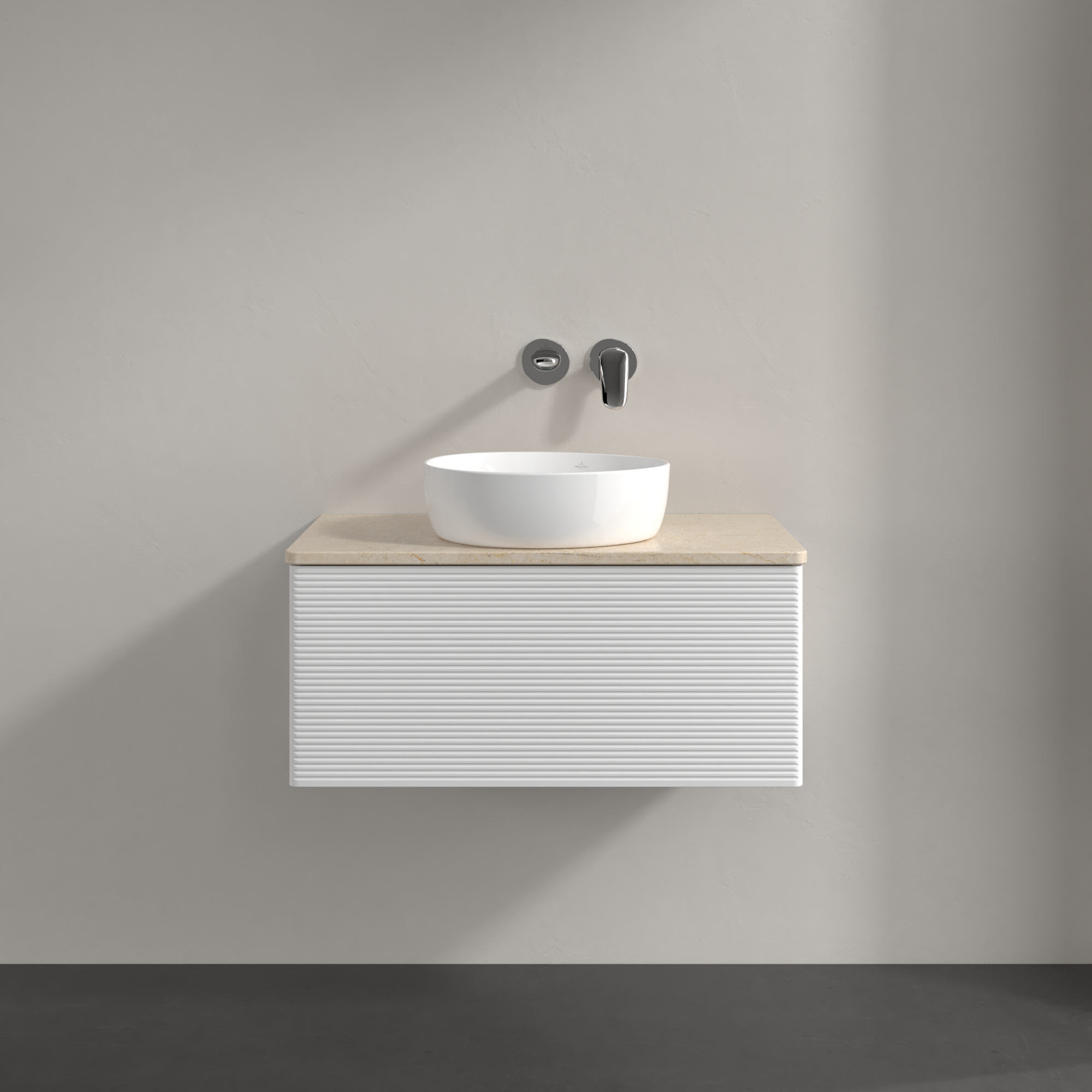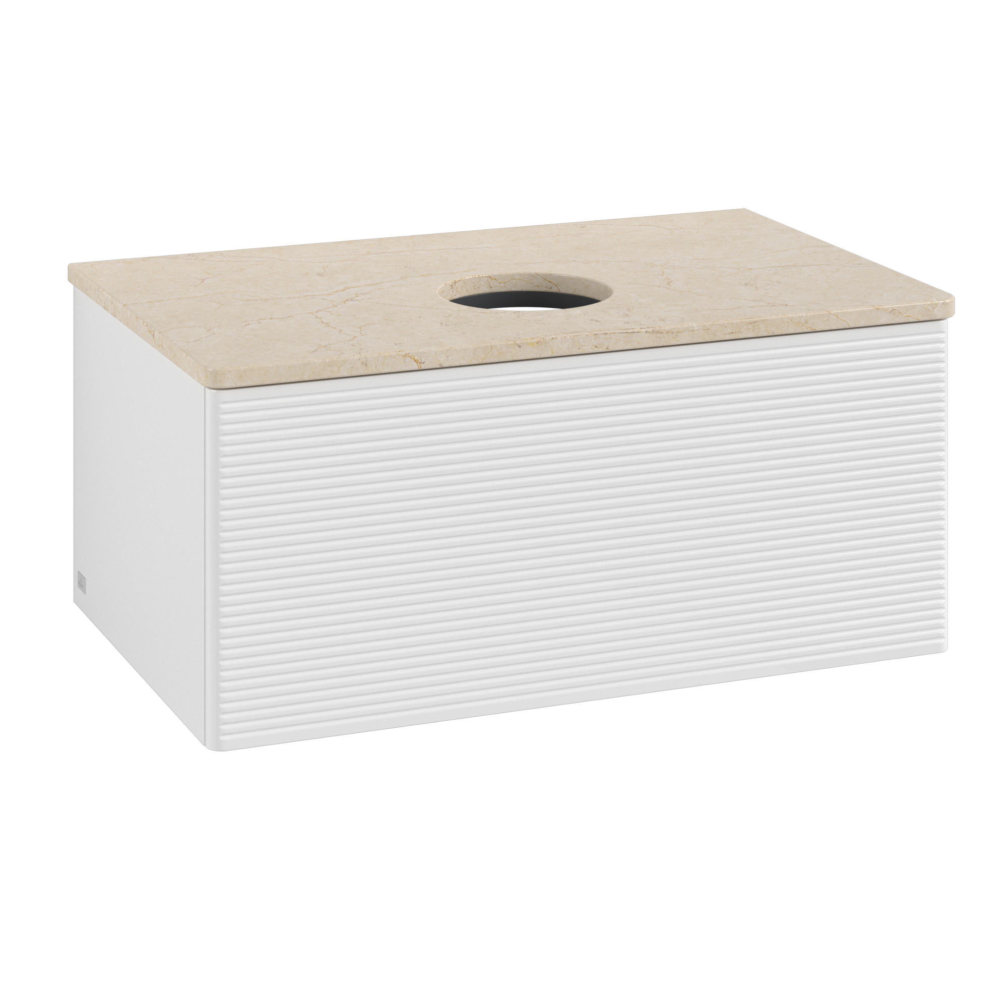 Antao Vanity unit, with lighting, 1 pull-out compartment, 800x360x500mm, Front with grain texture, Body: Glossy White Lacquer, Front: Glossy White Lacquer, Cover plate: Botticino