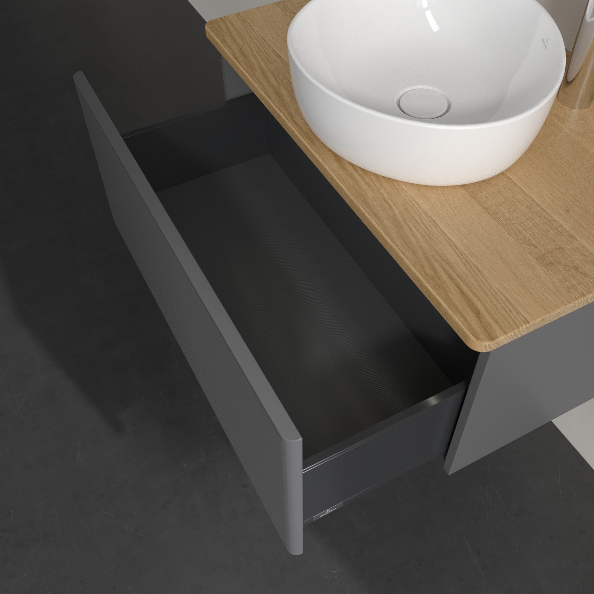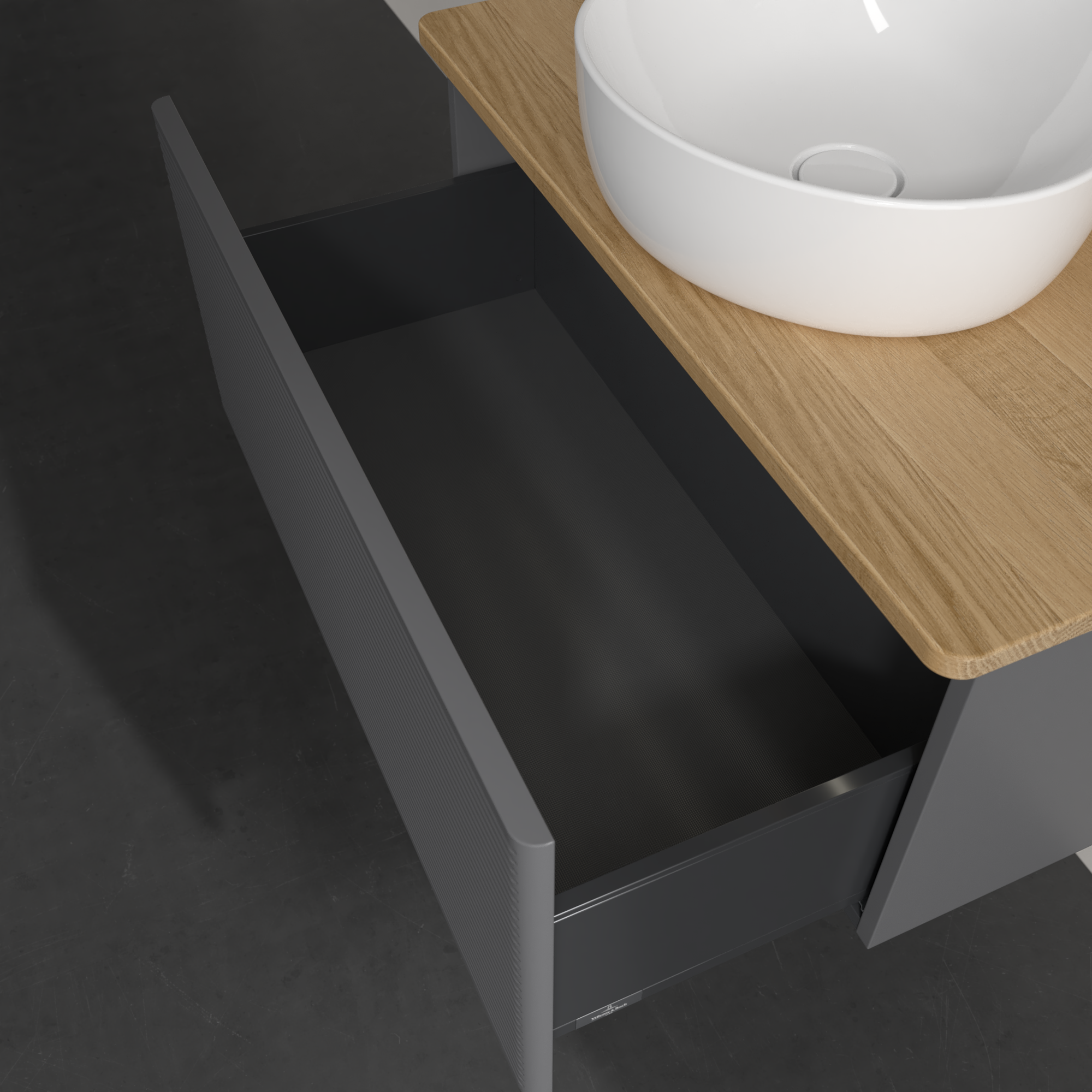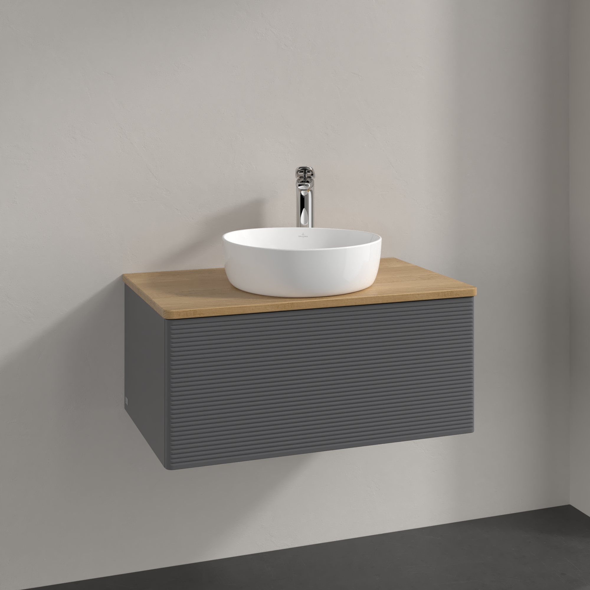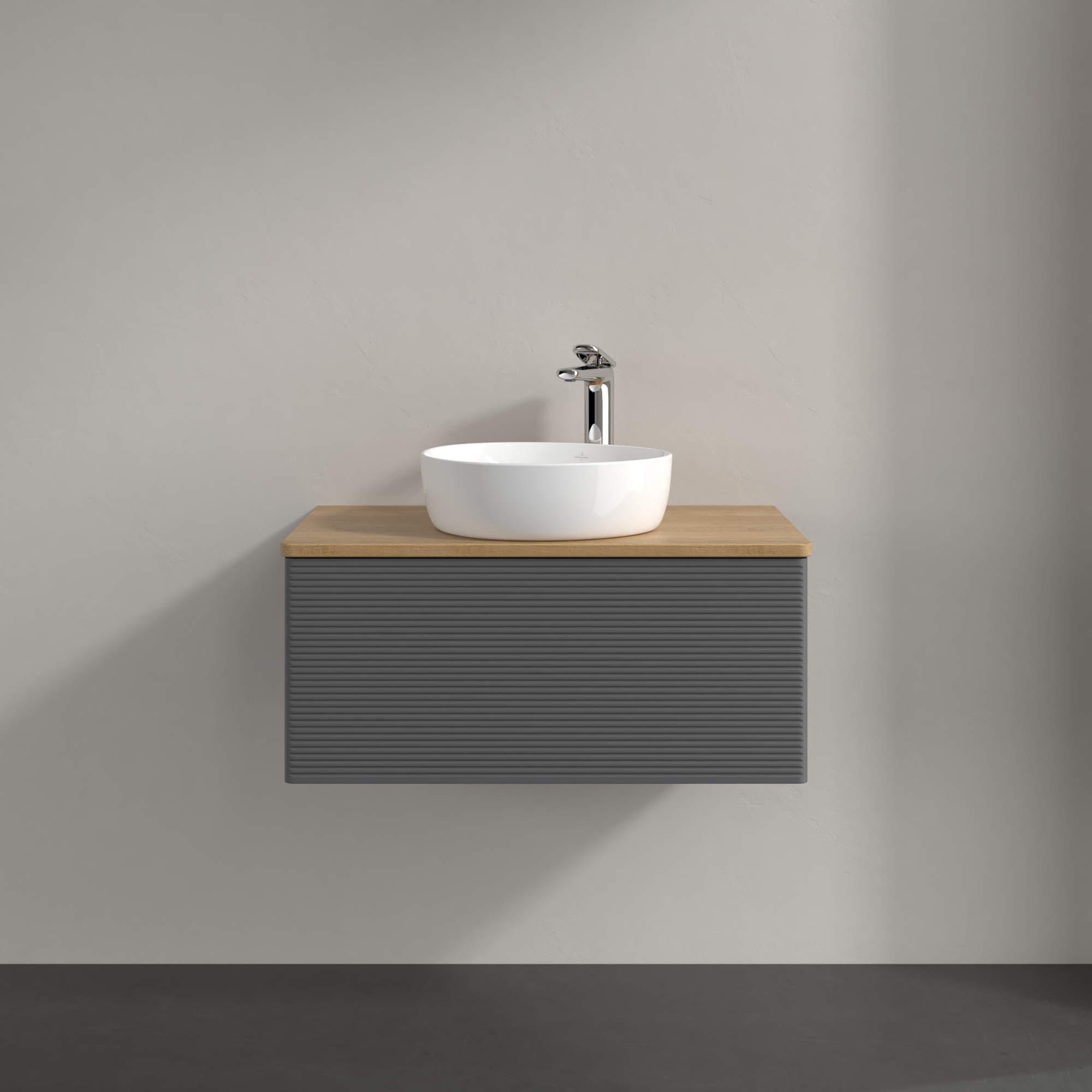 Antao Vanity unit, with lighting, 1 pull-out compartment, 800x360x500mm, Front with grain texture, Body: Anthracite Matt Lacquer, Front: Anthracite Matt Lacquer, Cover plate: Honey Oak