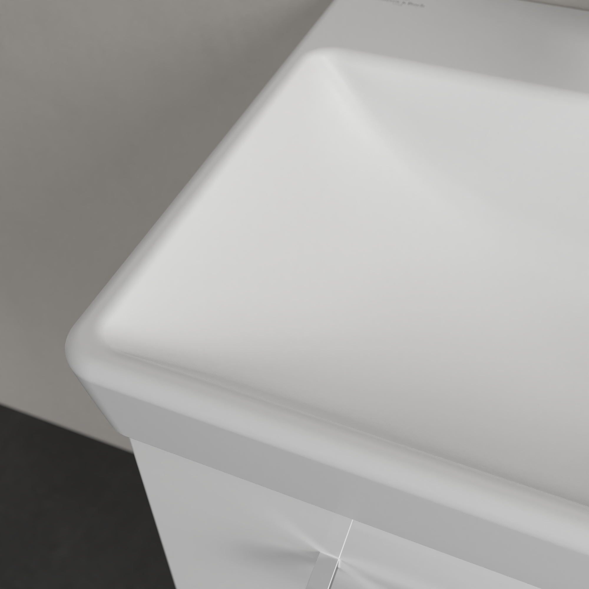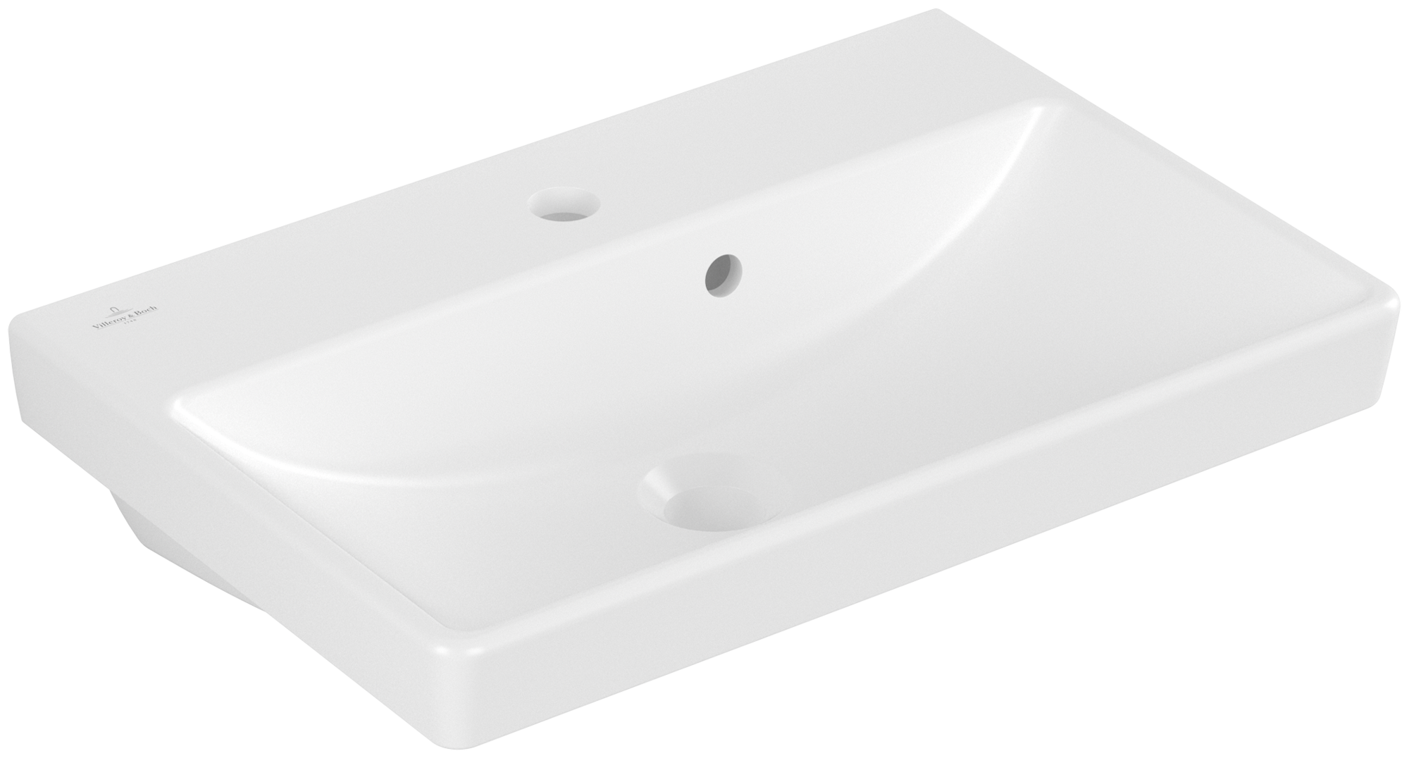 Avento Washbasin Compact, 550x370x180mm, with overflow, Stone White CeramicPlus
