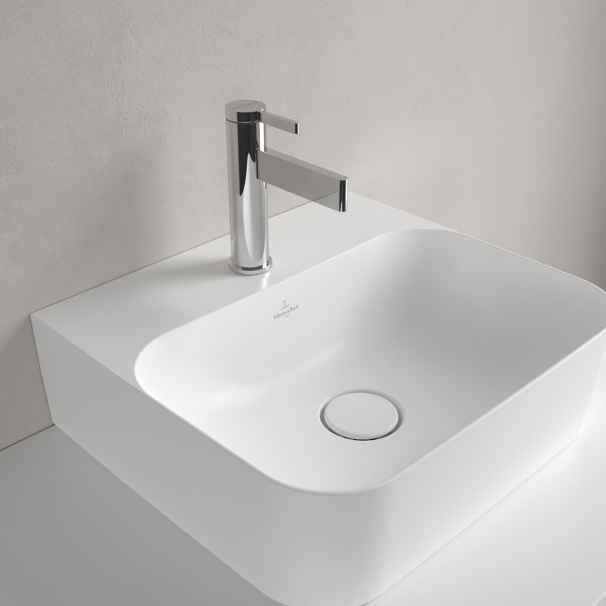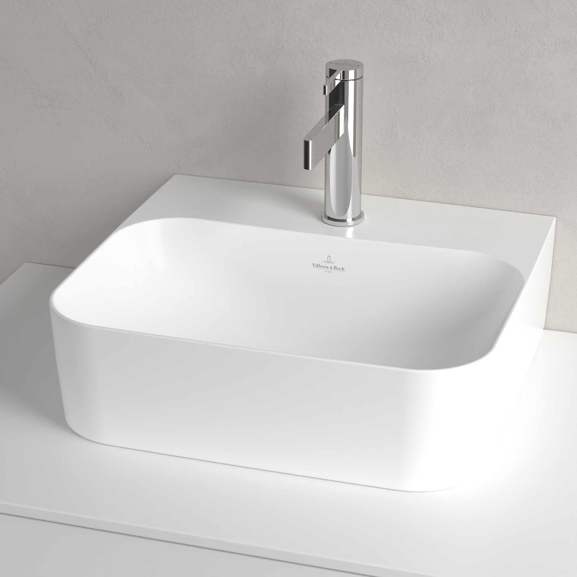 Finion Handwashbasin, 430x390x140mm, with concealed overflow, Stone White CeramicPlus