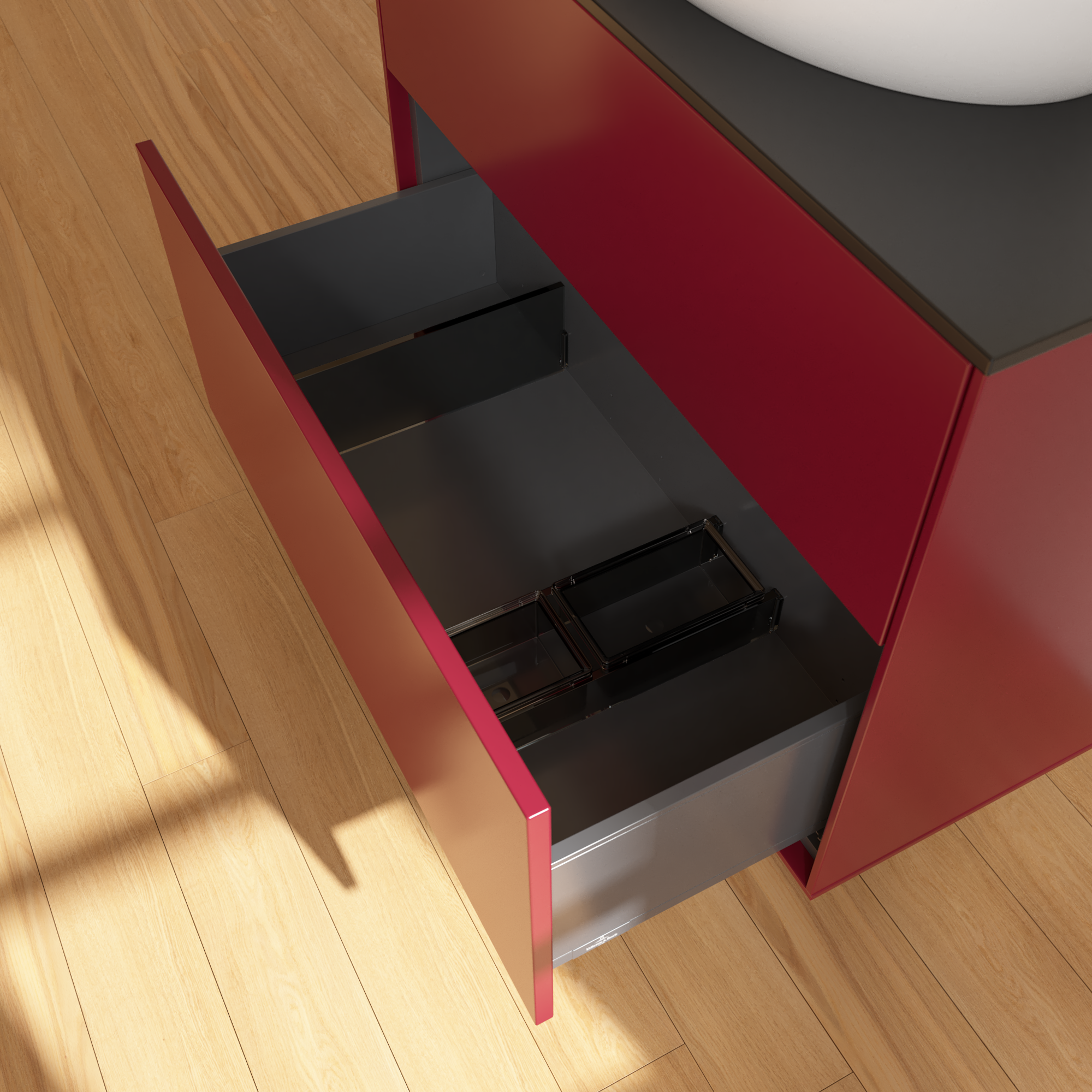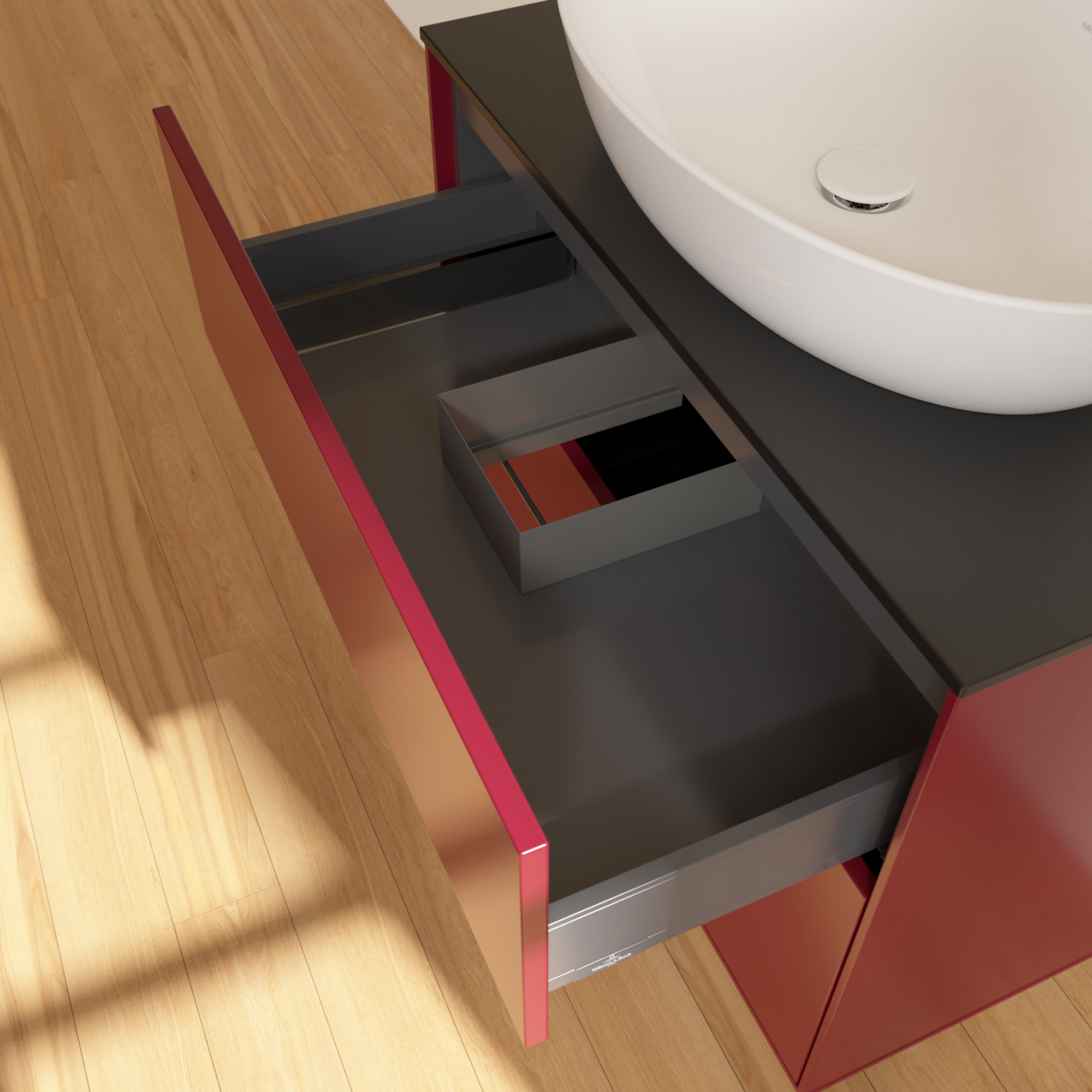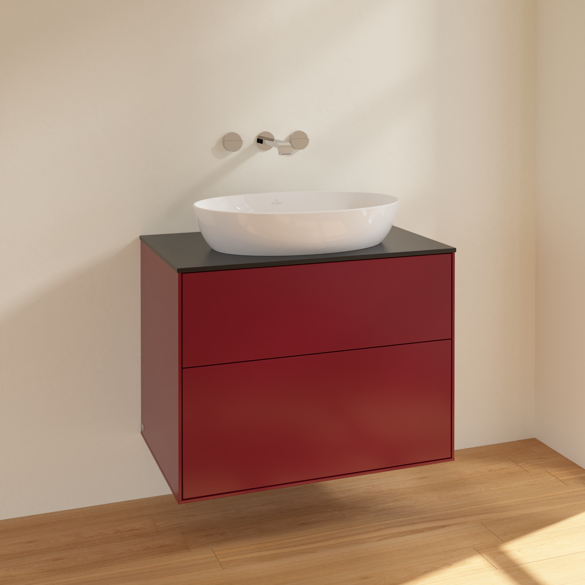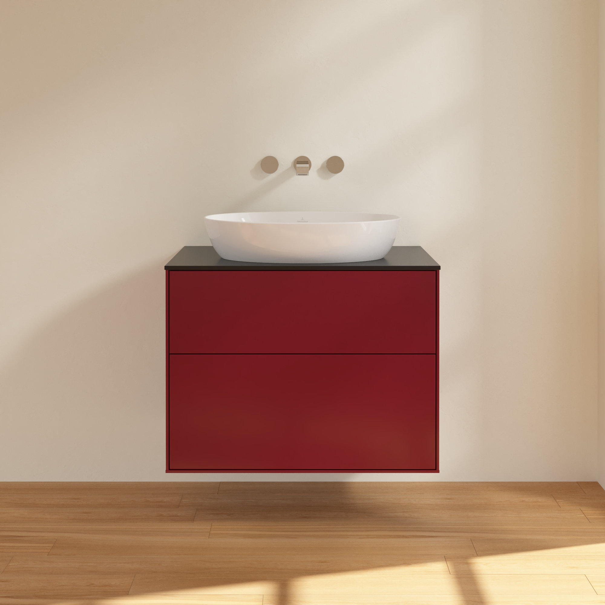 Finion Vanity unit, 2 pull-out compartments, 800x603x501mm, Body: Peony Matt Lacquer, Front: Peony Matt Lacquer, Cover plate: Glass Black Matt