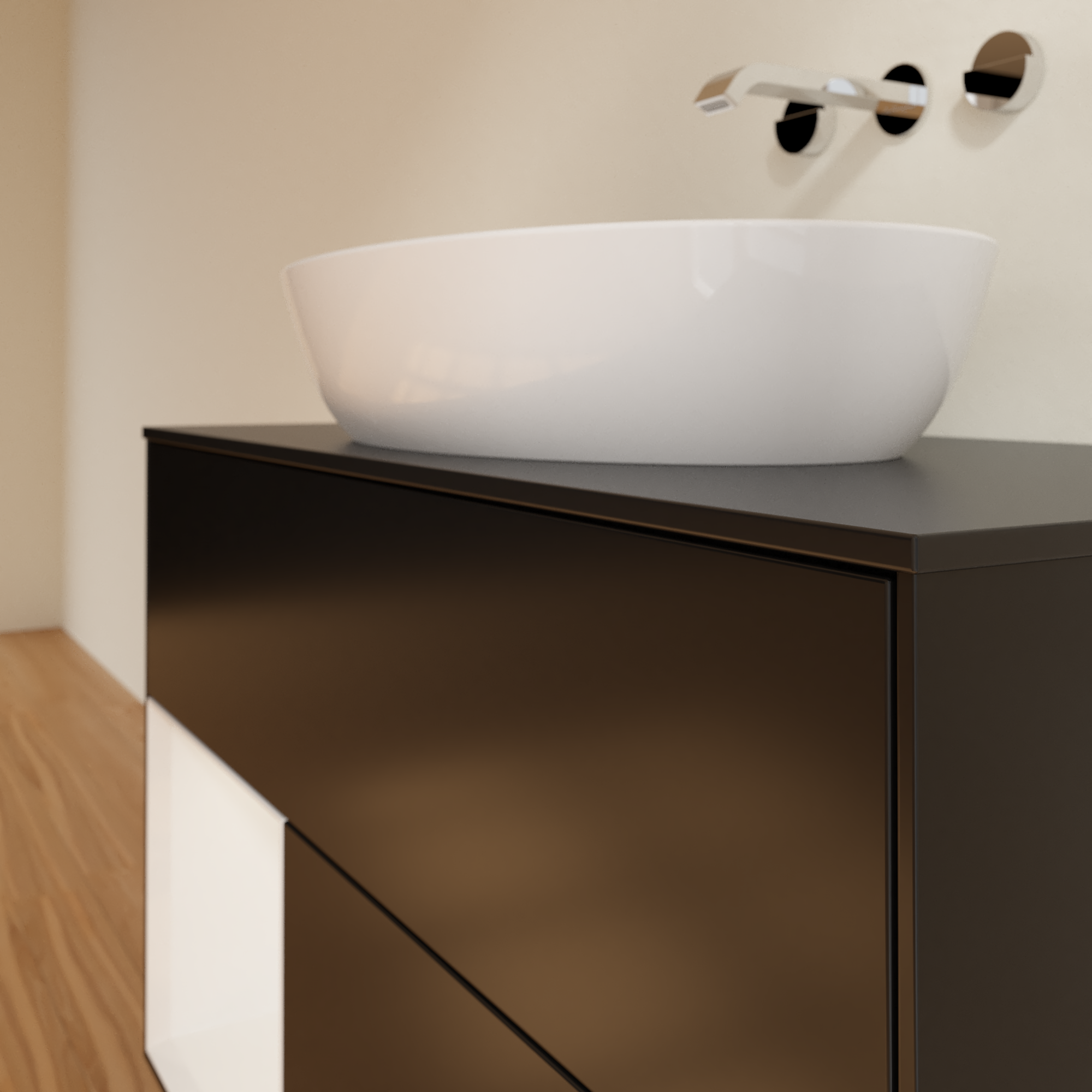Finion Vanity unit, with lighting, 2 pull-out compartments, 1000x603x501mm, Body: Black Matt Lacquer, Front: Black Matt Lacquer, Shelf: Glossy White Lacquer, Cover plate: Glass Black Matt