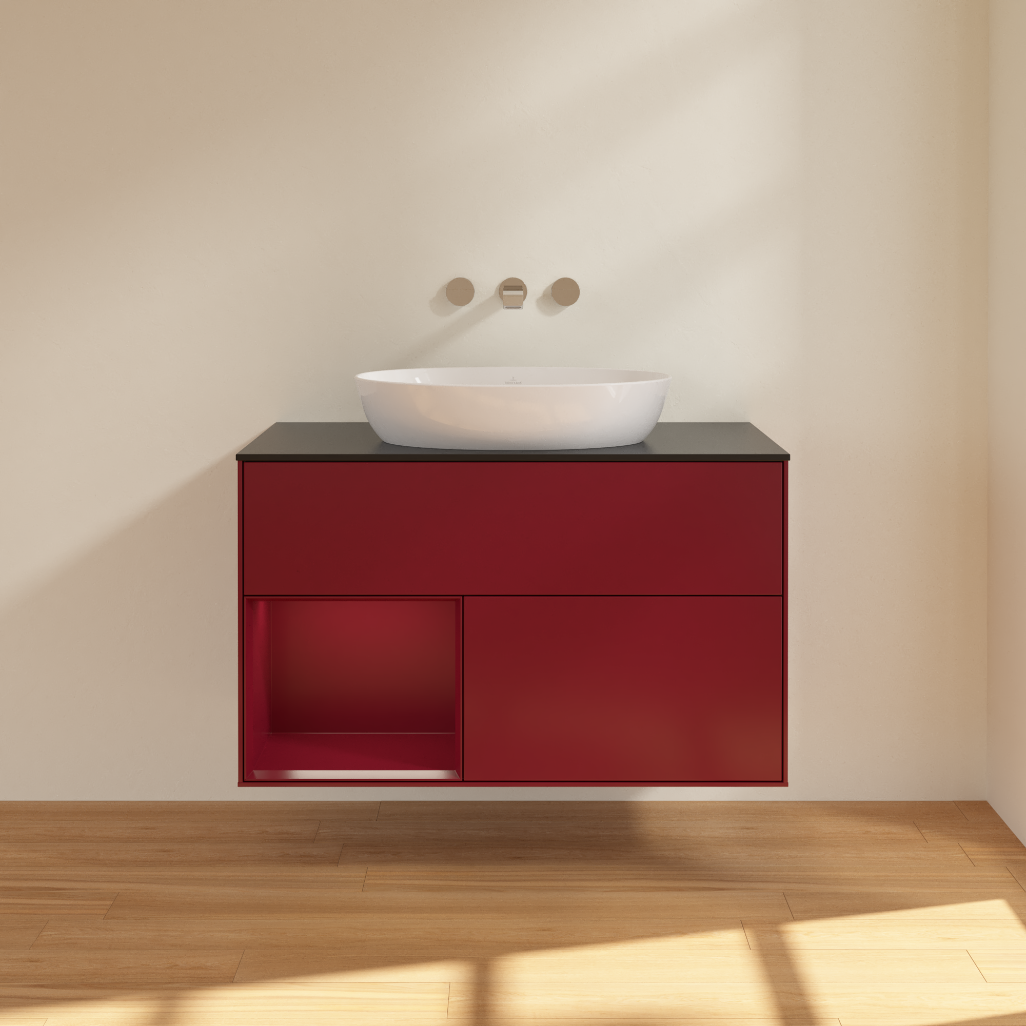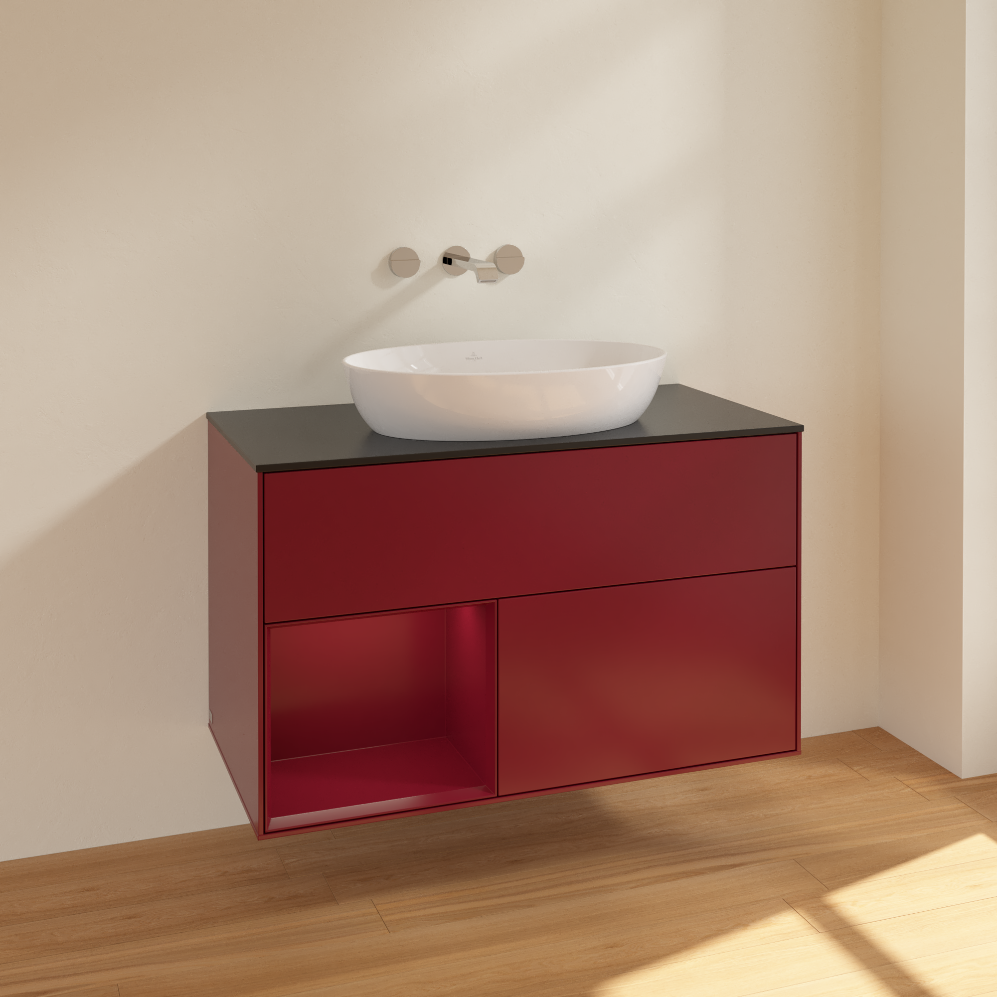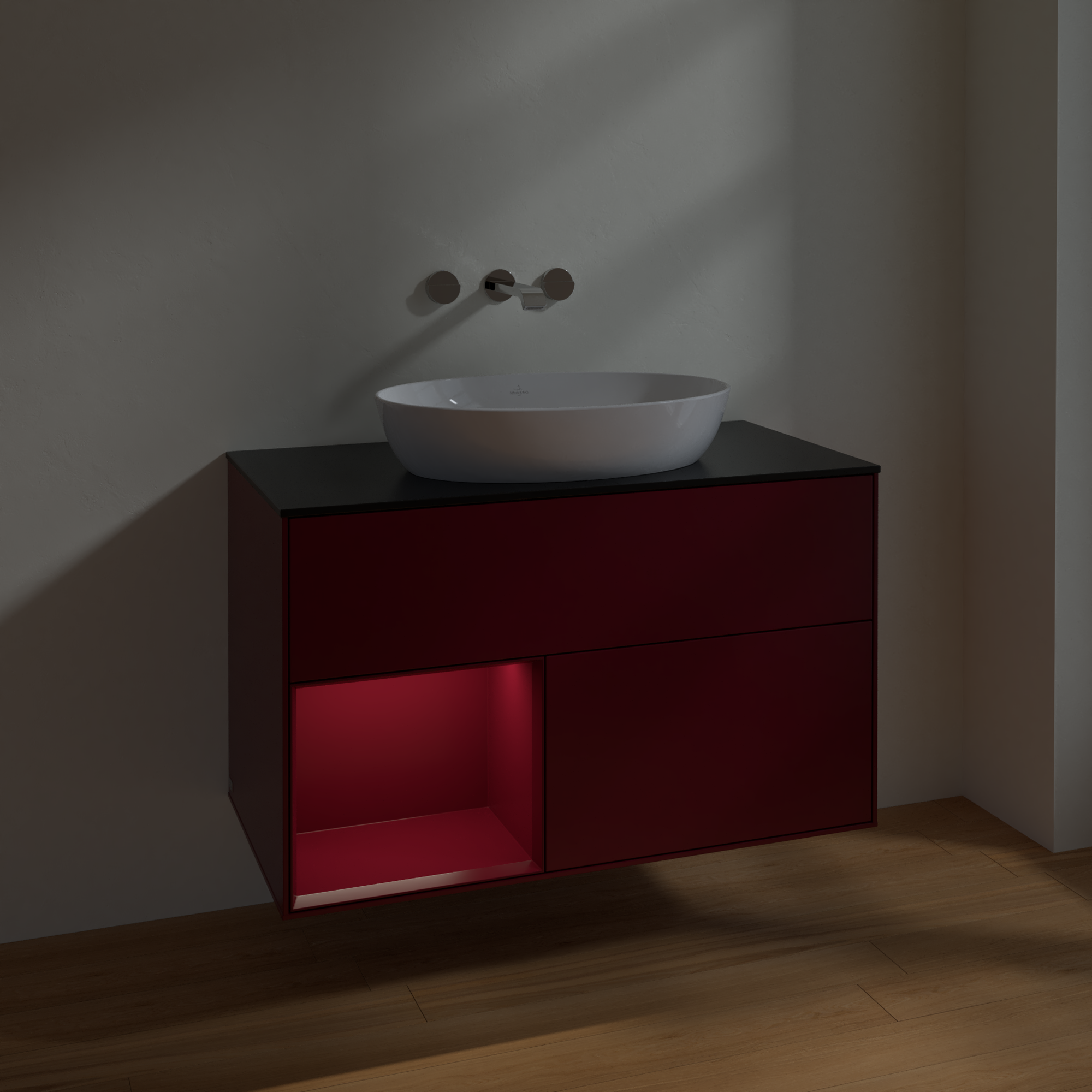 Finion Vanity unit, with lighting, 2 pull-out compartments, 1000x603x501mm, Body: Peony Matt Lacquer, Front: Peony Matt Lacquer, Shelf: Peony Matt Lacquer, Cover plate: Glass Black Matt