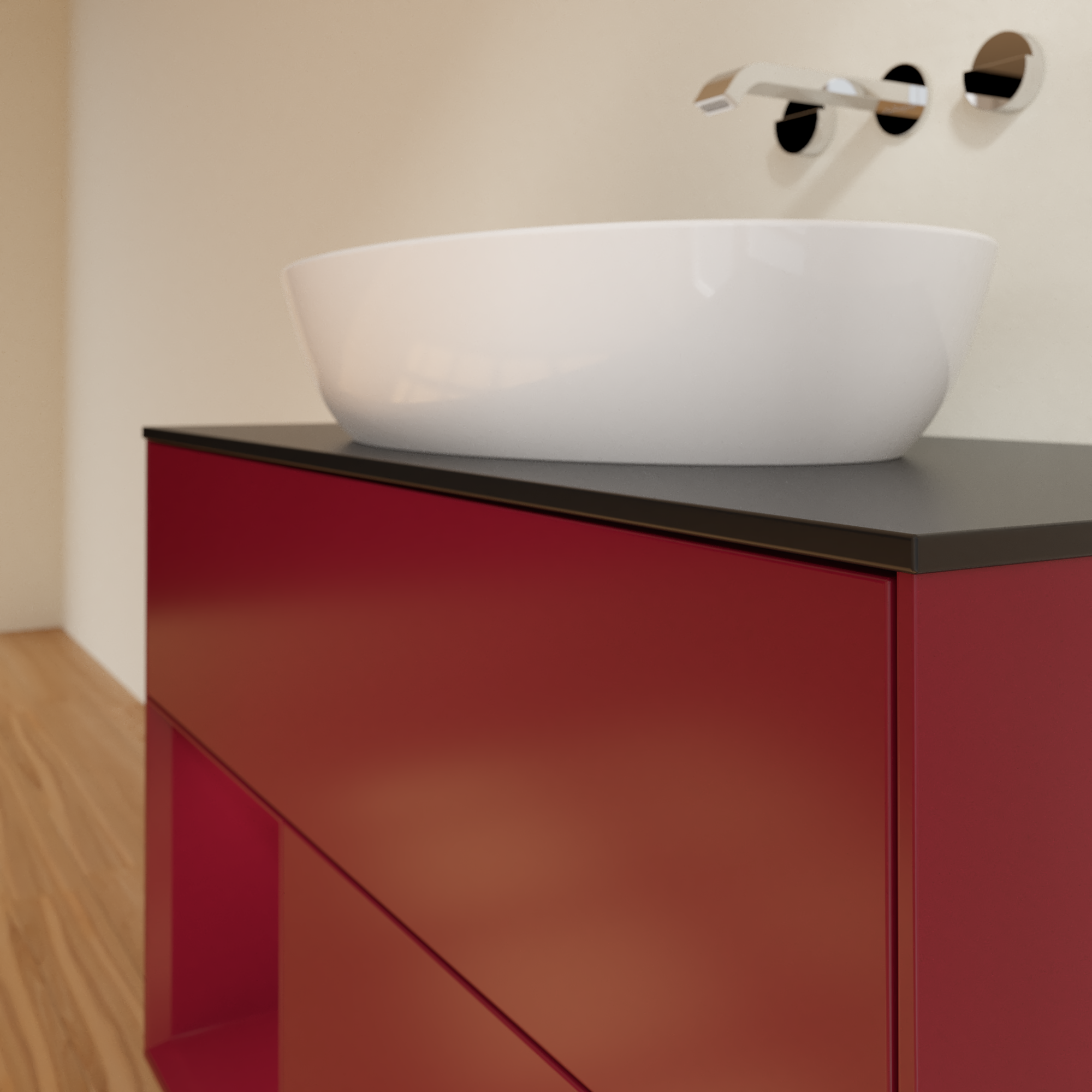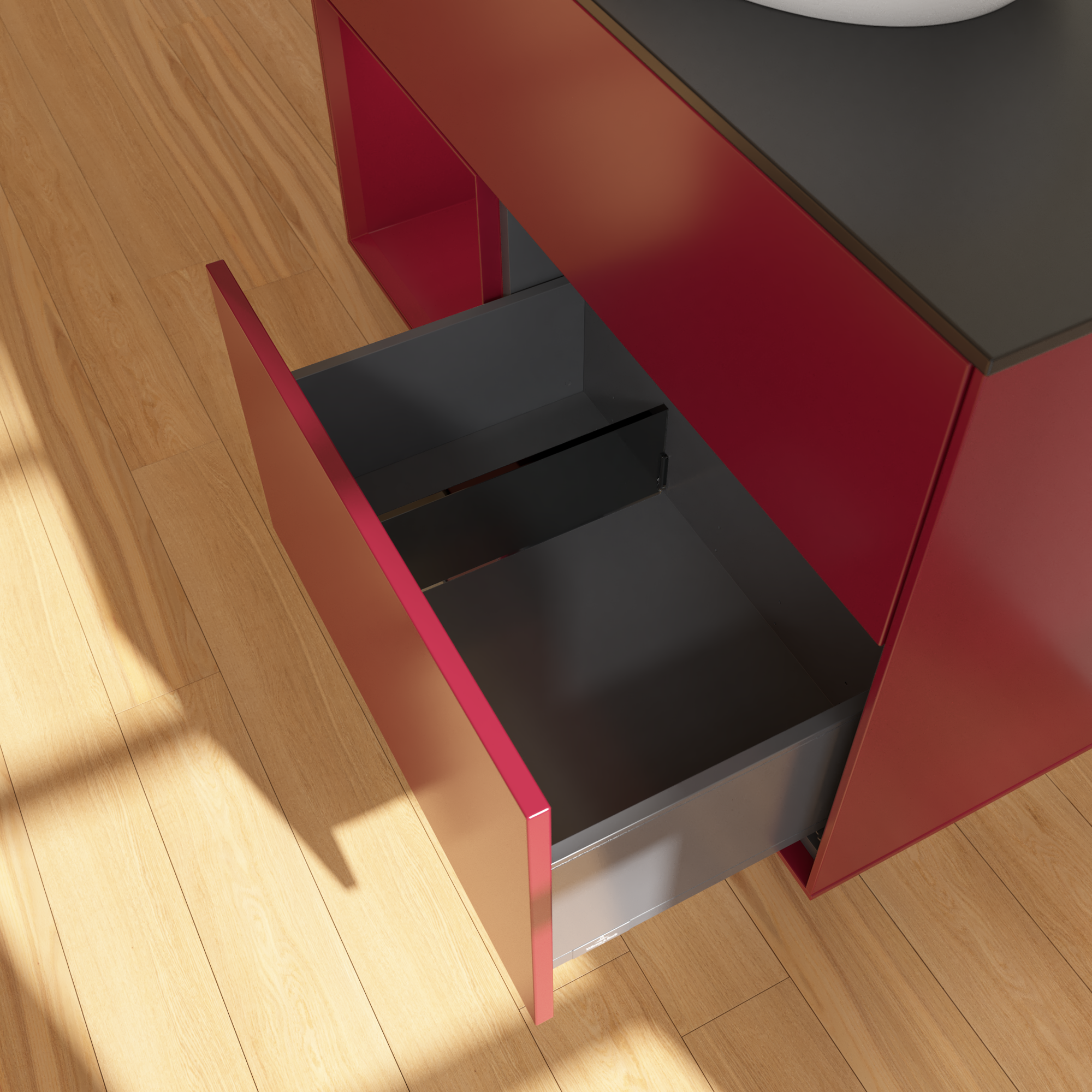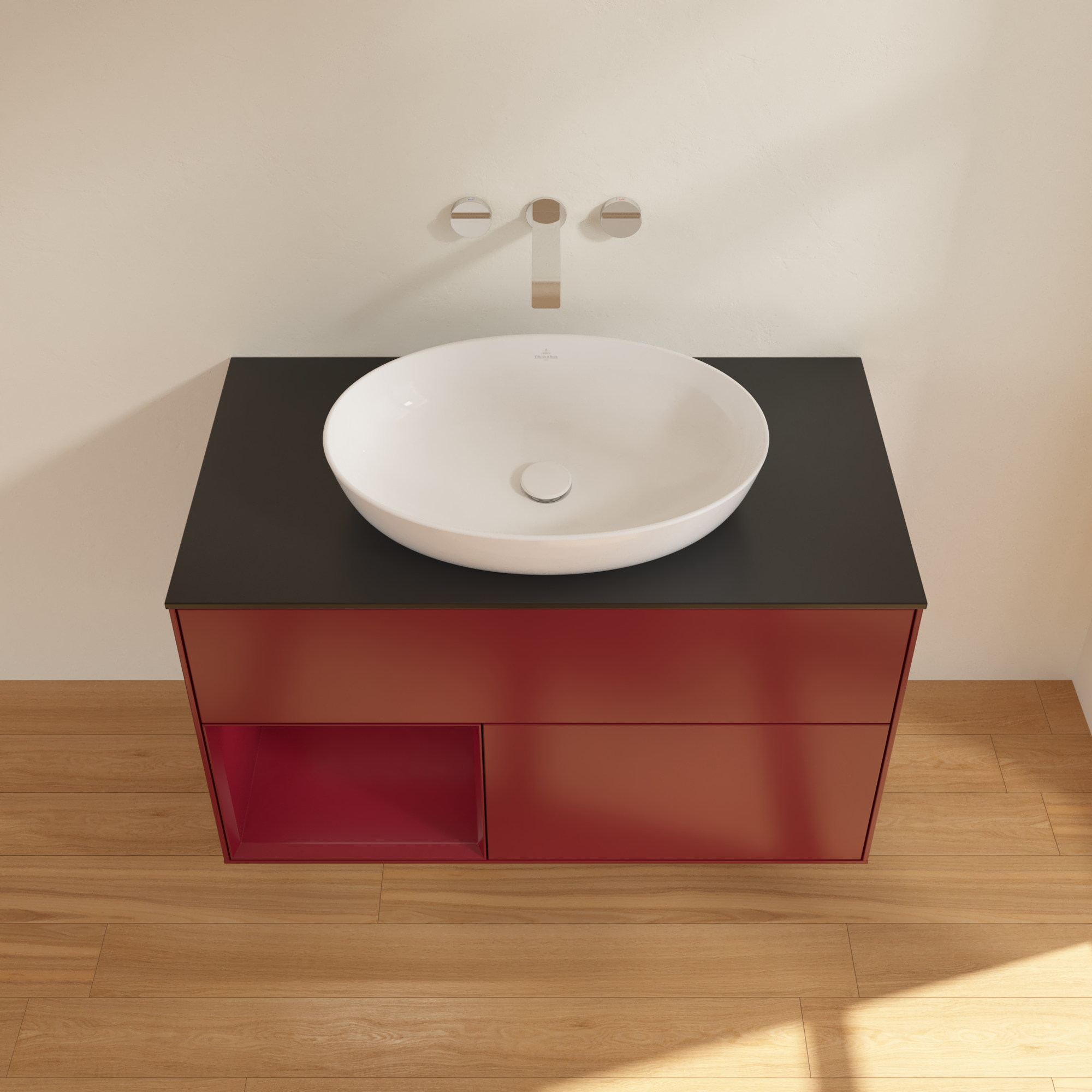 Finion Vanity unit, with lighting, 2 pull-out compartments, 1000x603x501mm, Body: Peony Matt Lacquer, Front: Peony Matt Lacquer, Shelf: Peony Matt Lacquer, Cover plate: Glass Black Matt