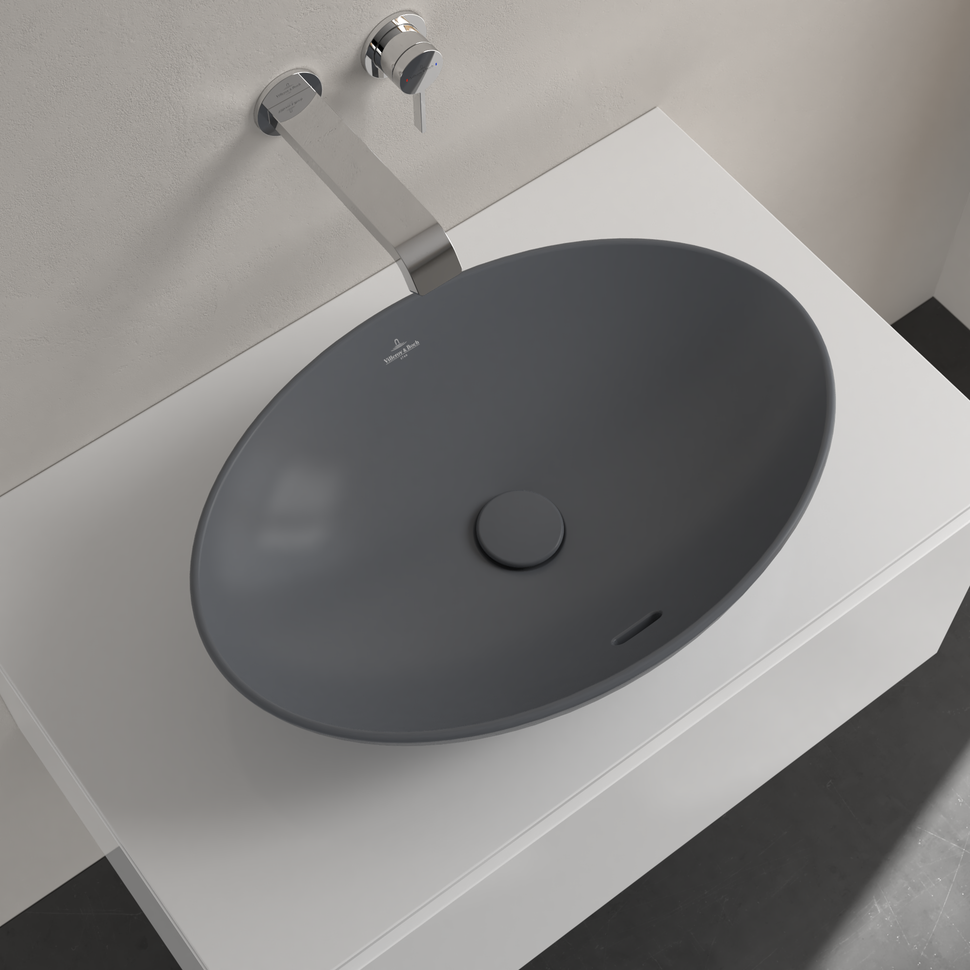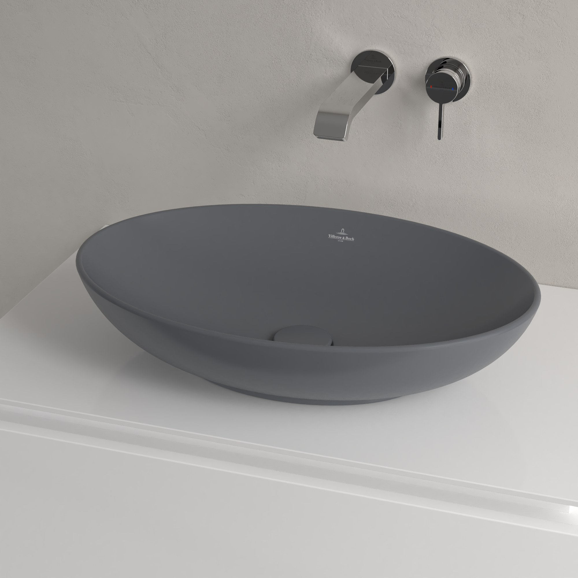 Loop & Friends Surface-mounted washbasin, 560x380x150mm, with overflow, Graphite CeramicPlus