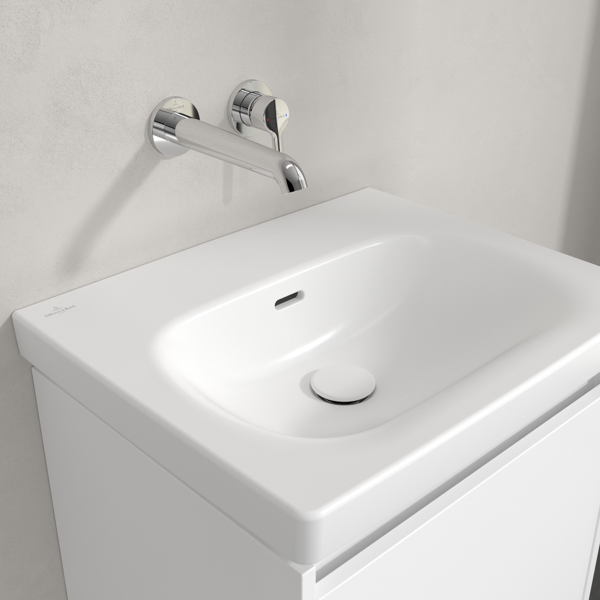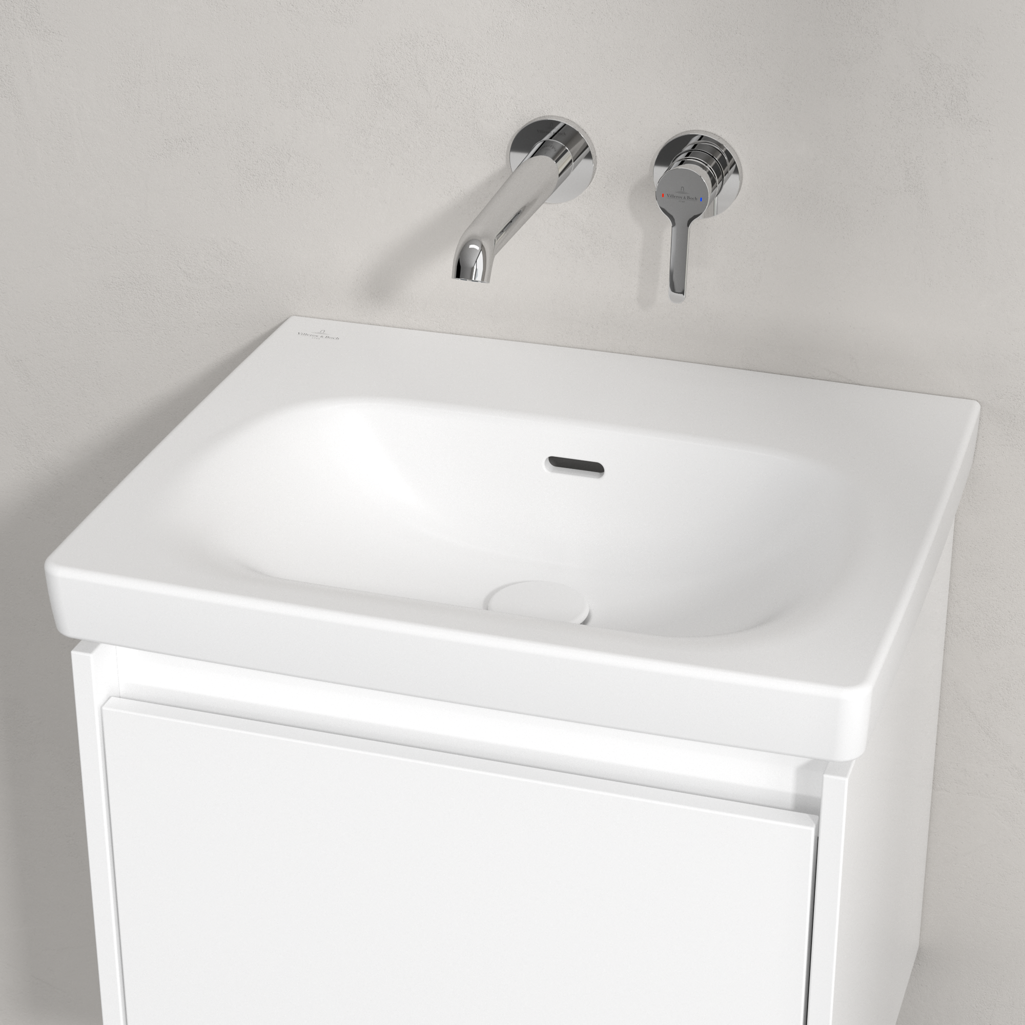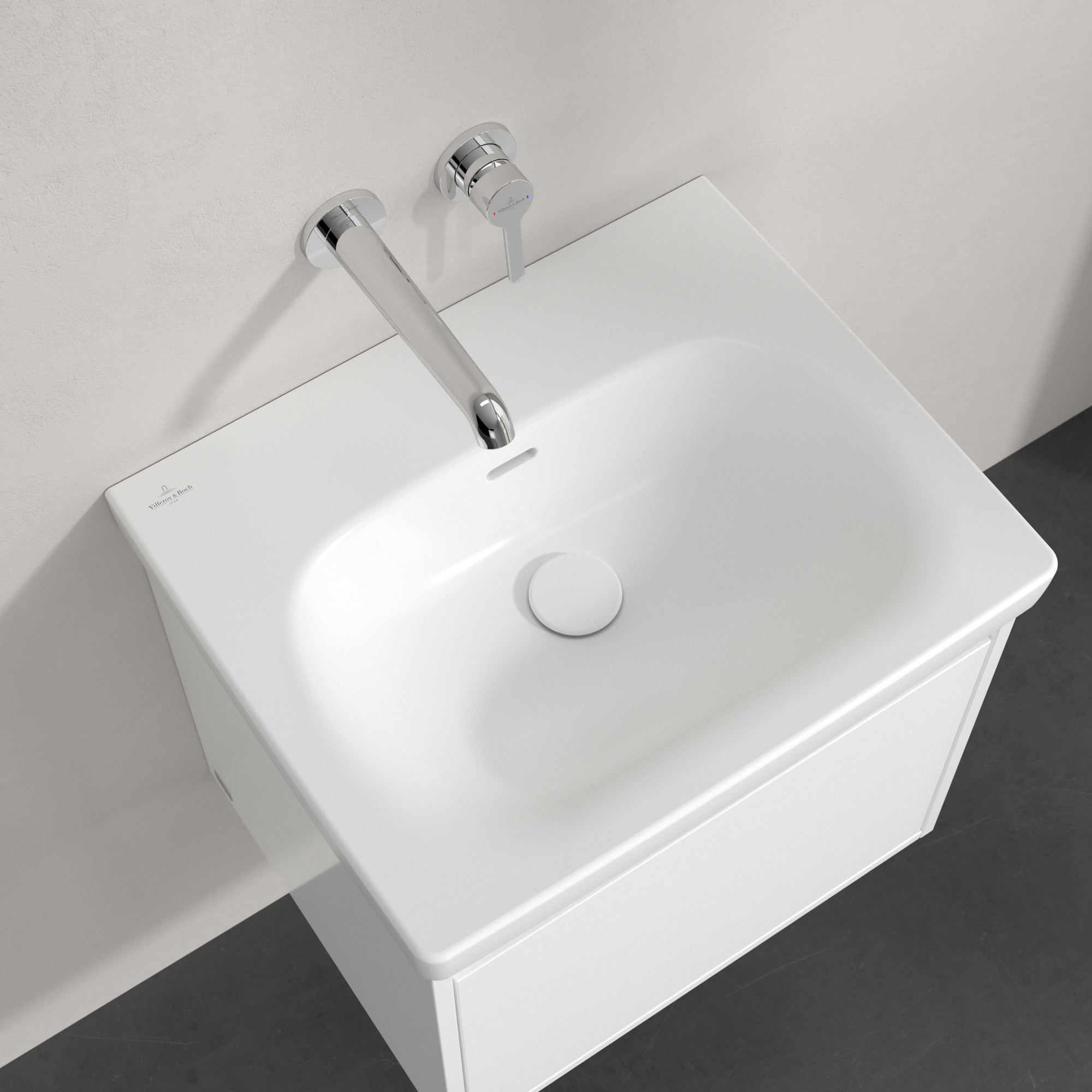 Skyla Washbasin, 445x550x150mm, with overflow, Stone White CeramicPlus