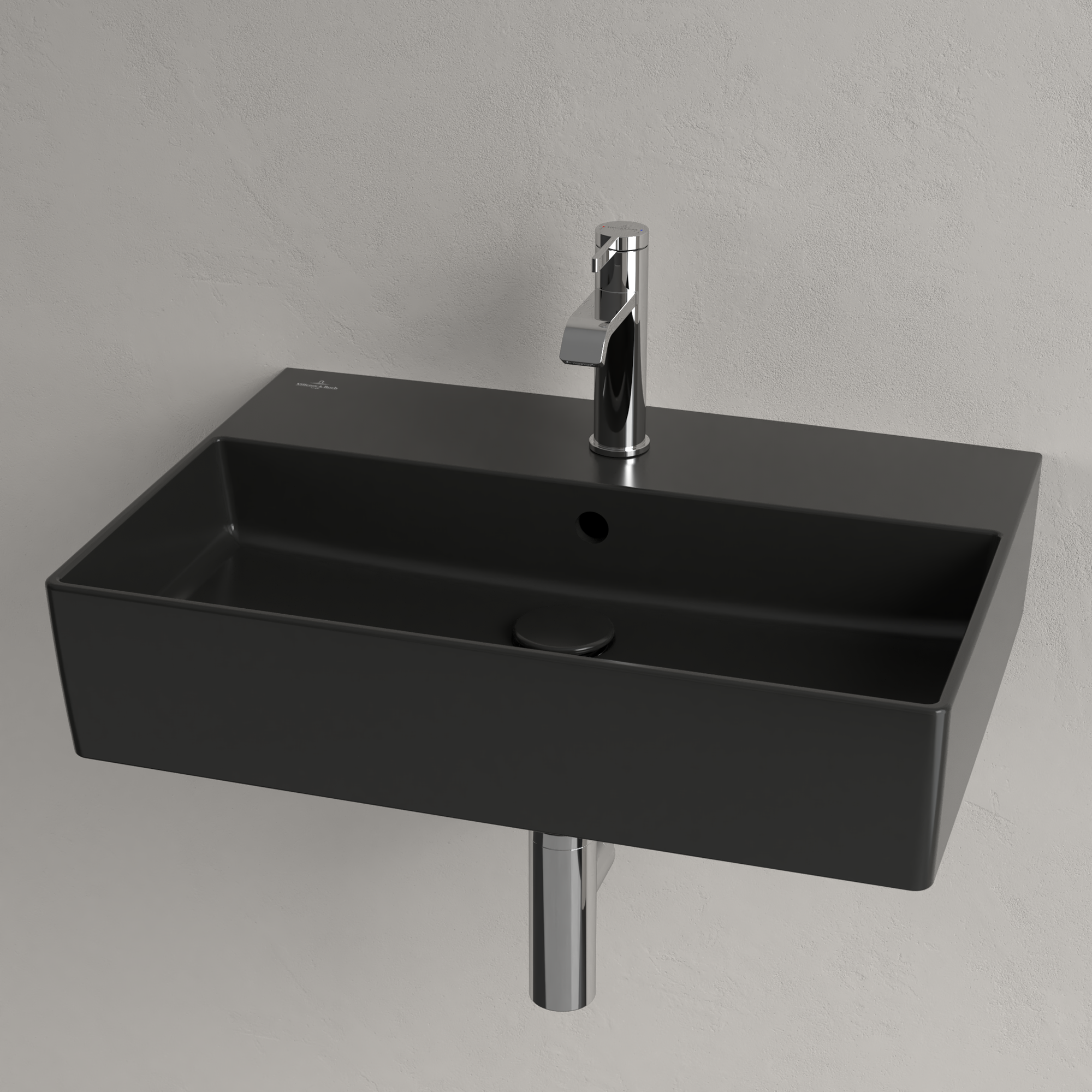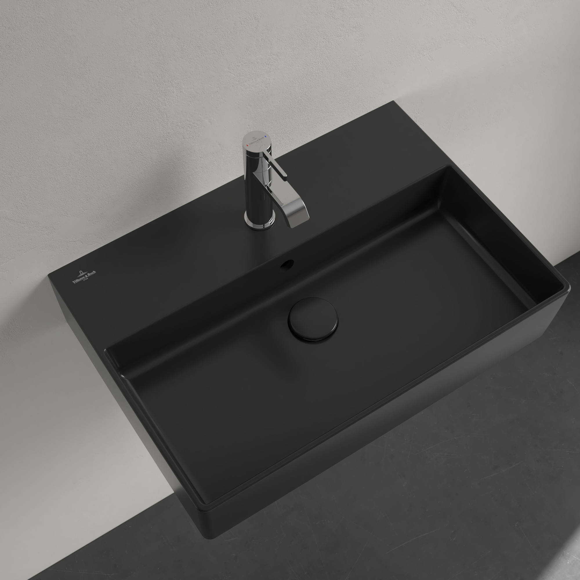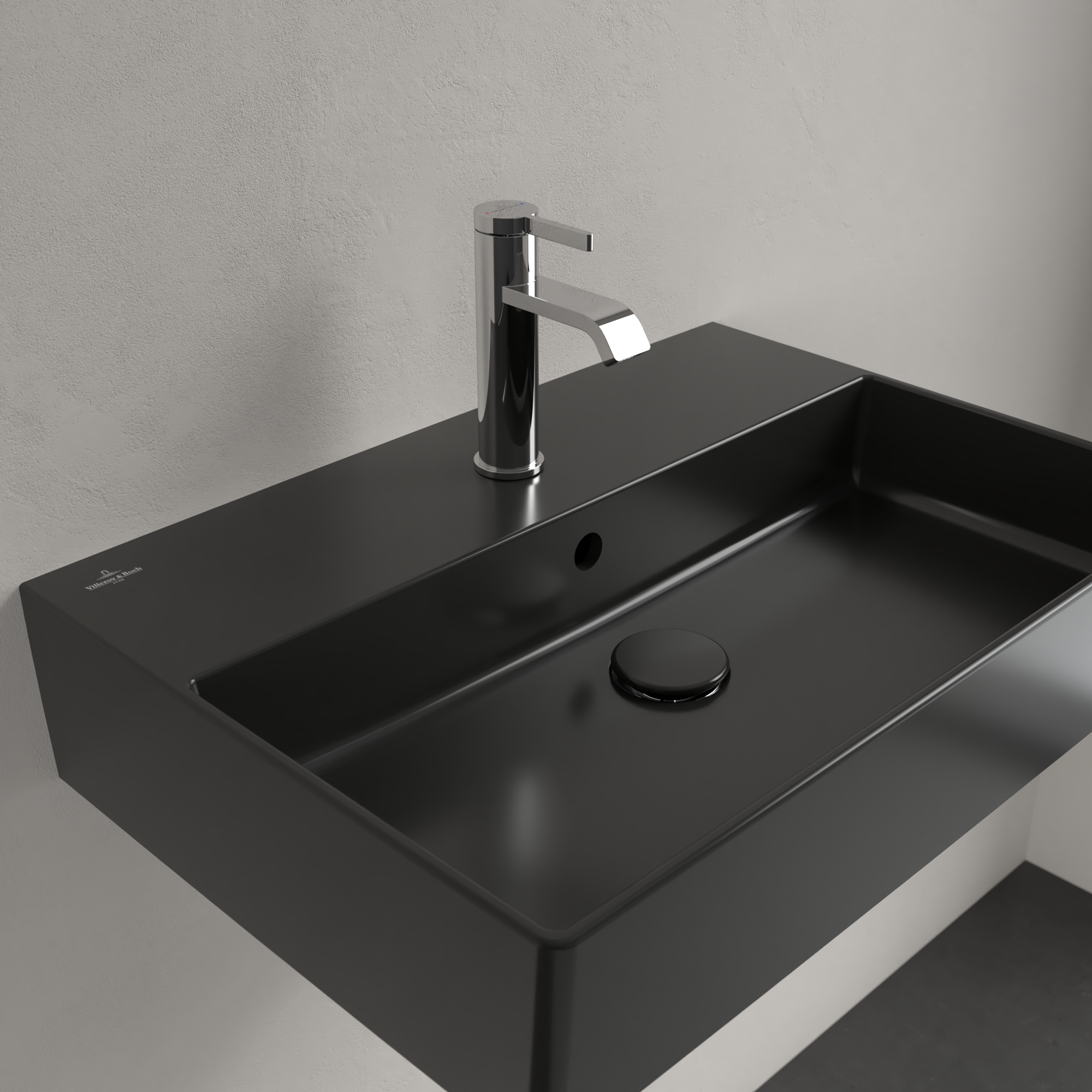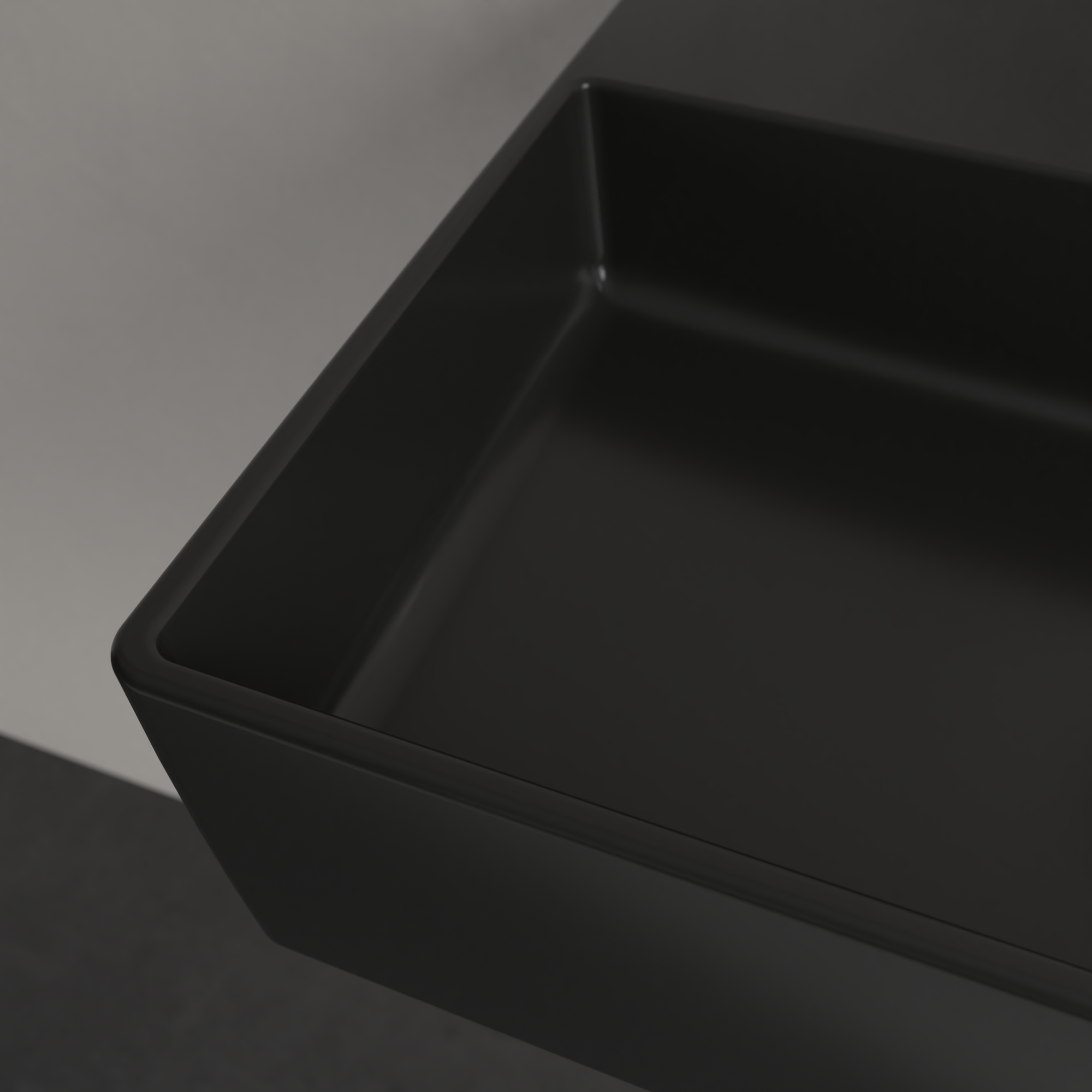 Memento 2.0 Washbasin, 600x420x135mm, with overflow, Pure Black CeramicPlus
