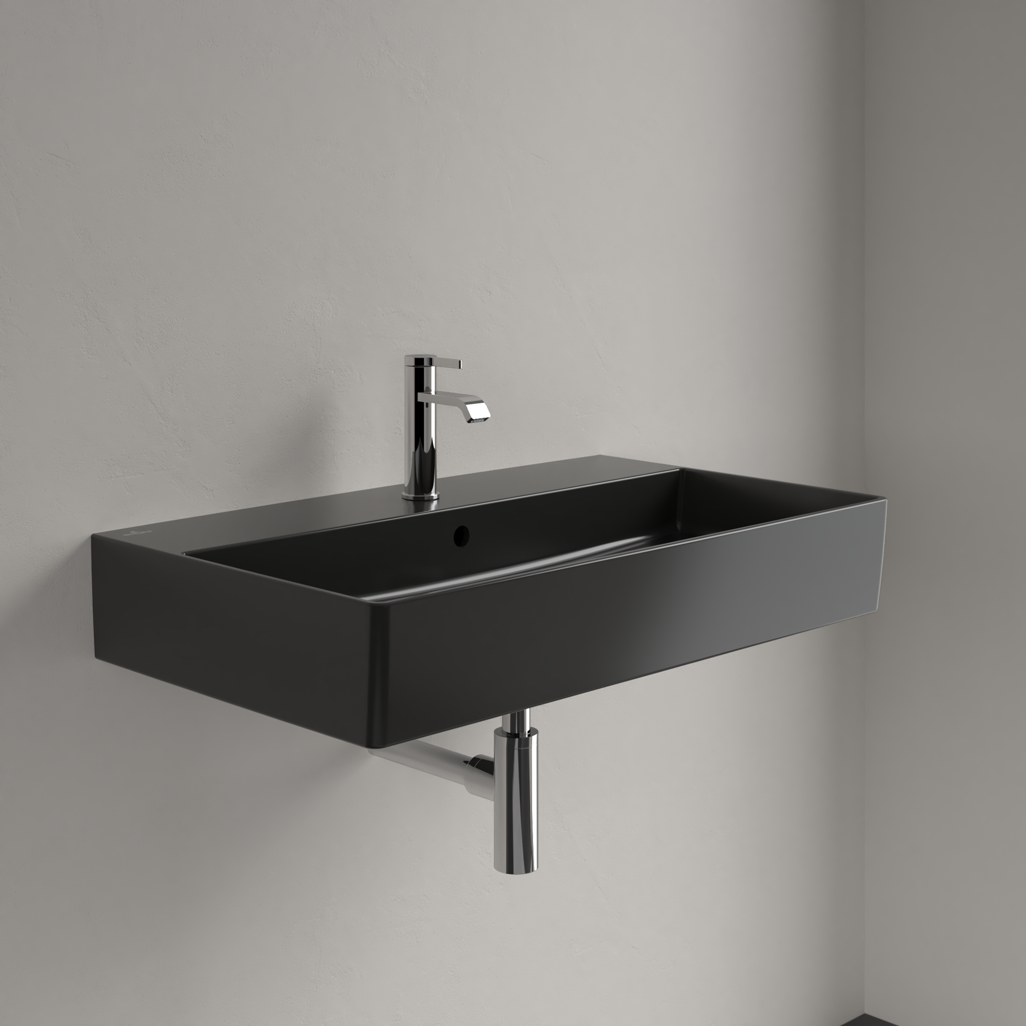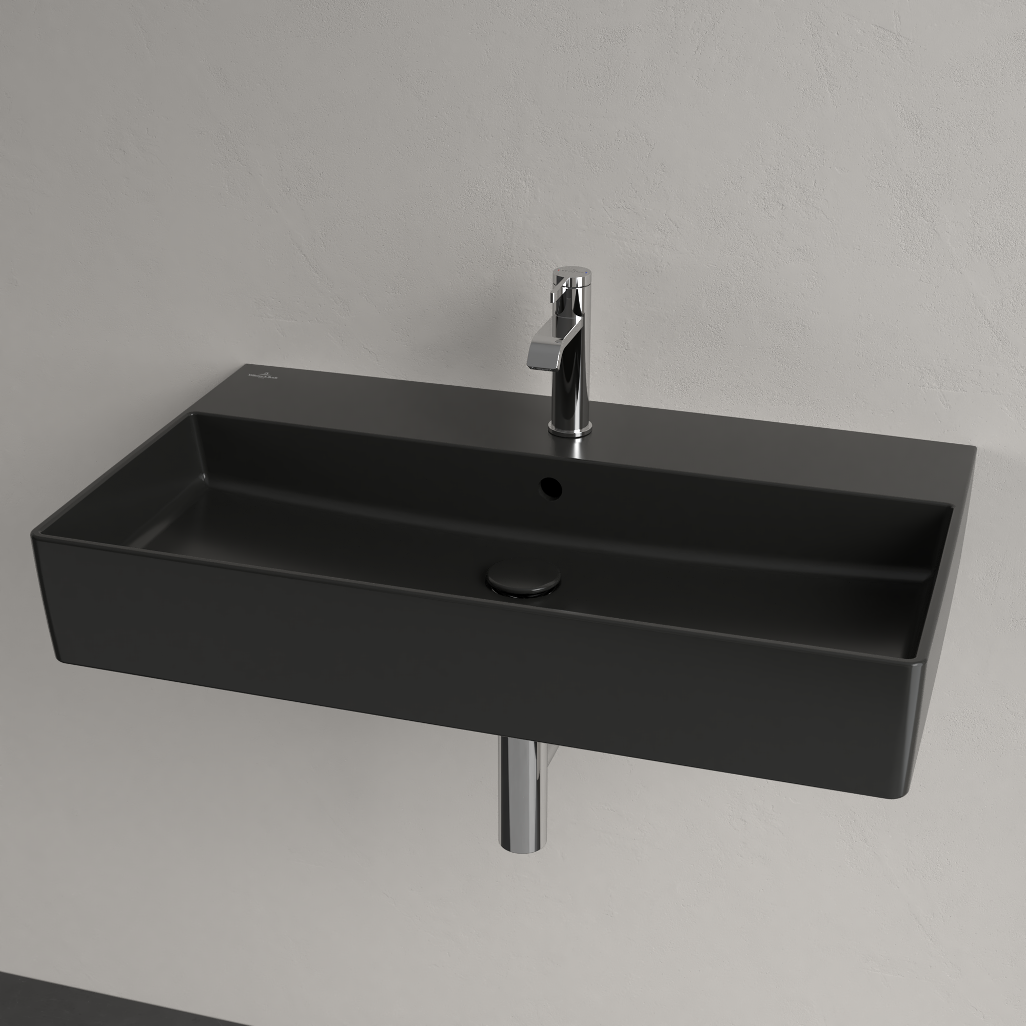 Memento 2.0 Washbasin, 800x470x140mm, with overflow, Pure Black CeramicPlus