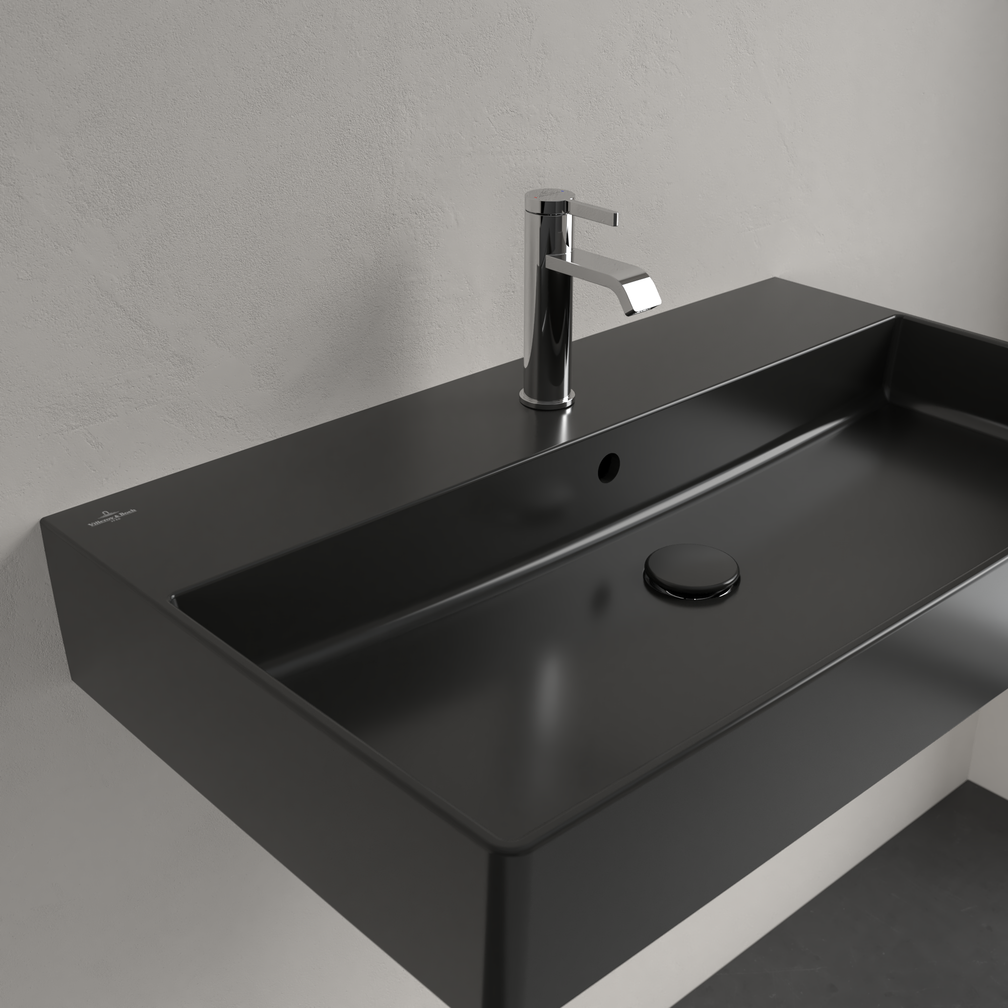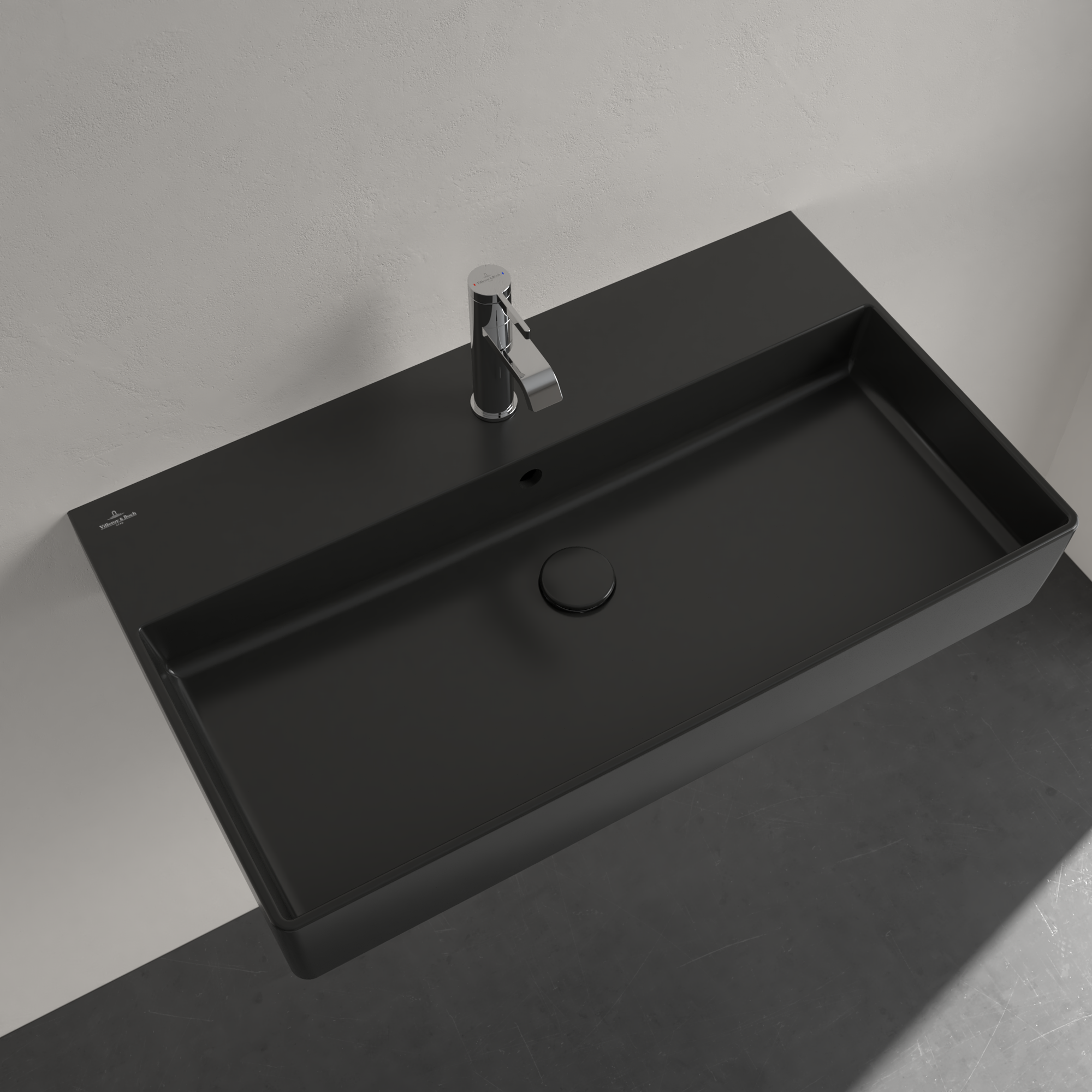 Memento 2.0 Washbasin, 800x470x140mm, with overflow, Pure Black CeramicPlus