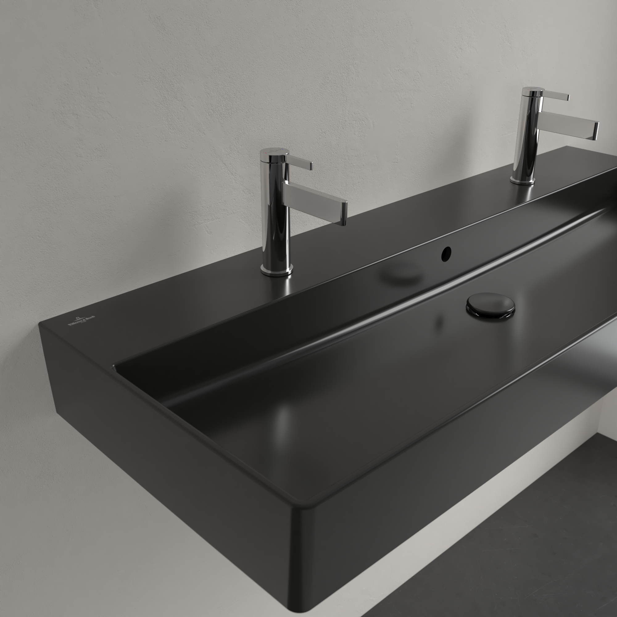 Memento 2.0 Washbasin, 1200x470x150mm, with overflow, Pure Black CeramicPlus
