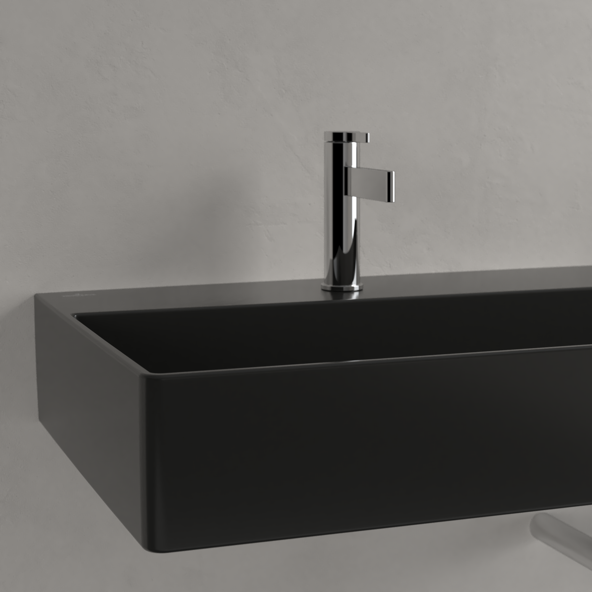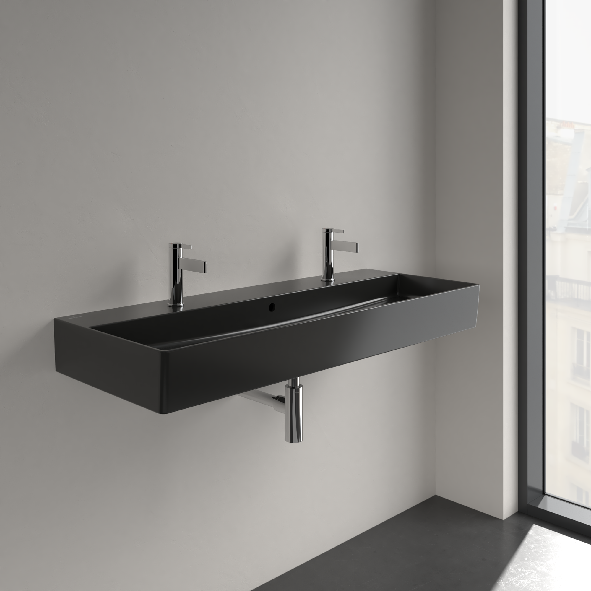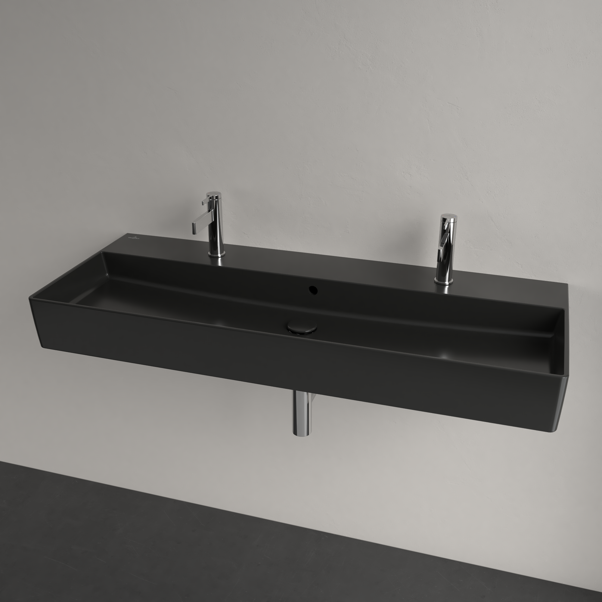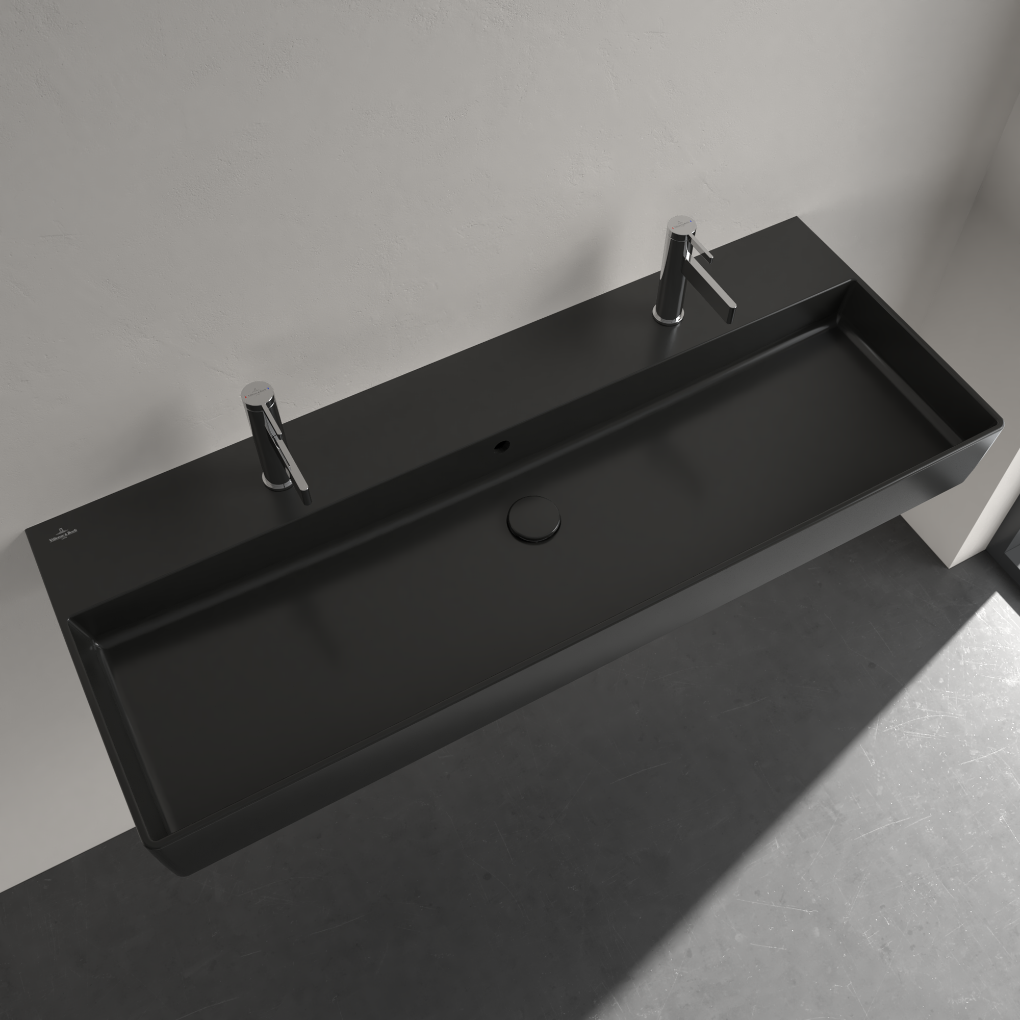 Memento 2.0 Washbasin, 1200x470x150mm, with overflow, Pure Black CeramicPlus