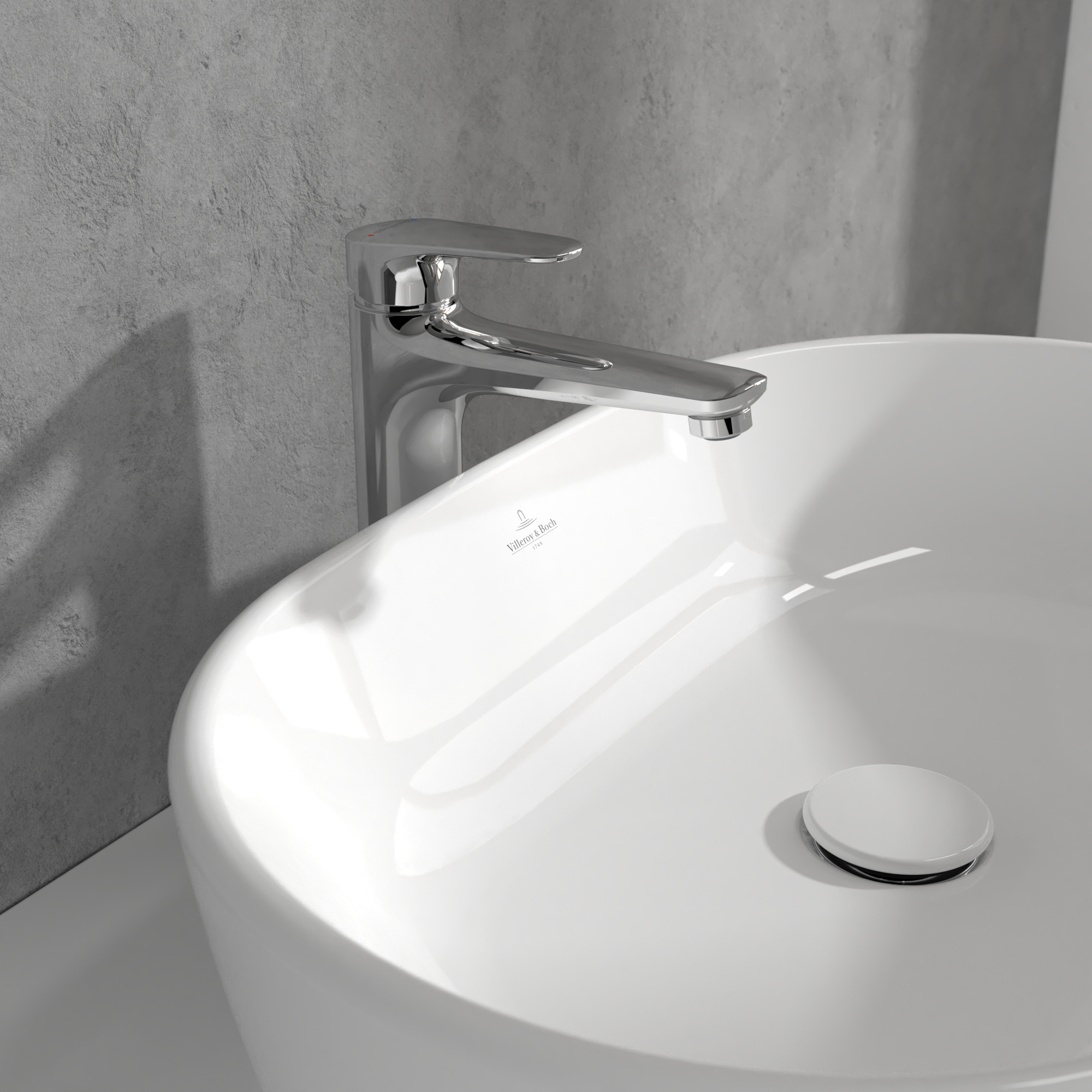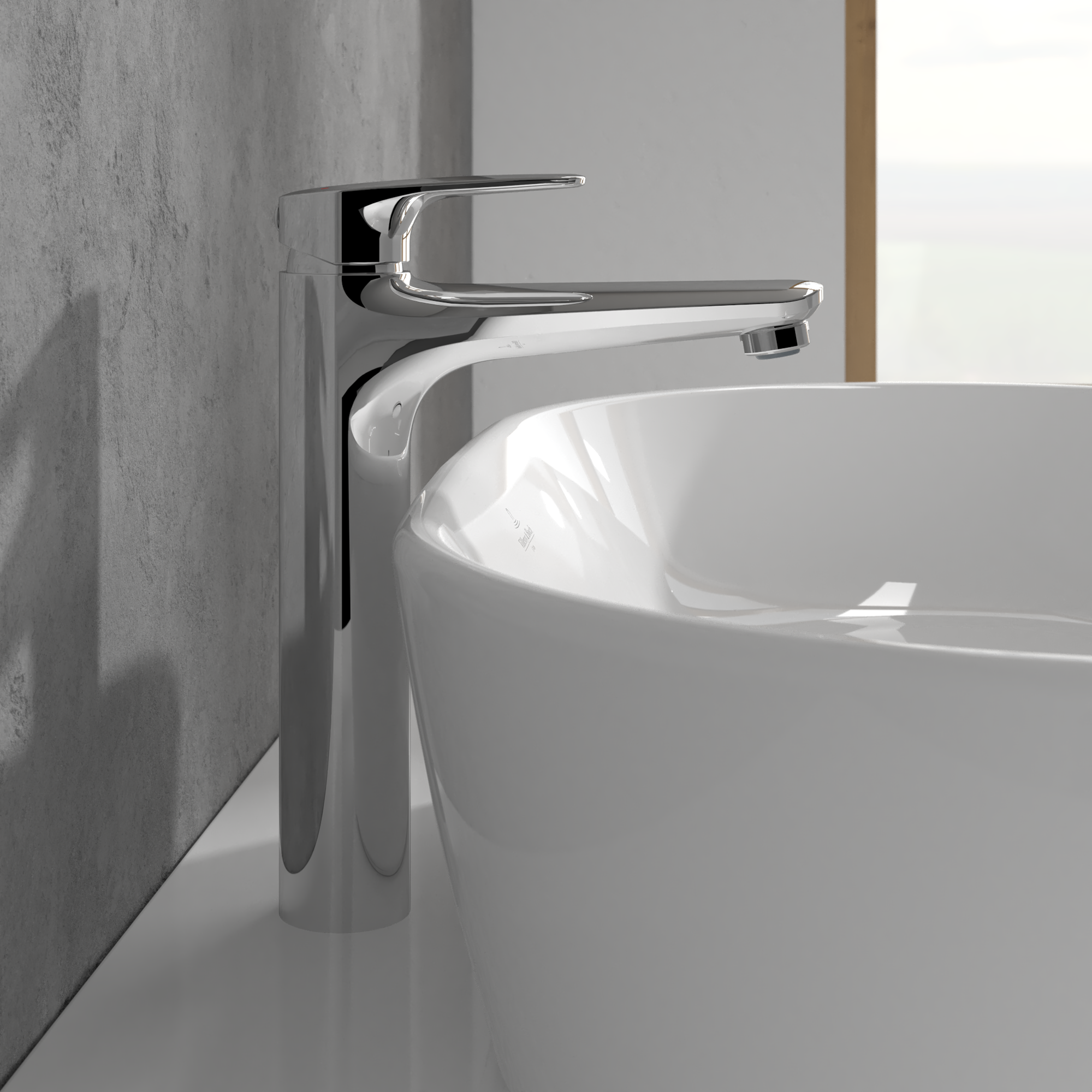 Practical tap fitting height, ideal for combination with surface-mounted washbasins