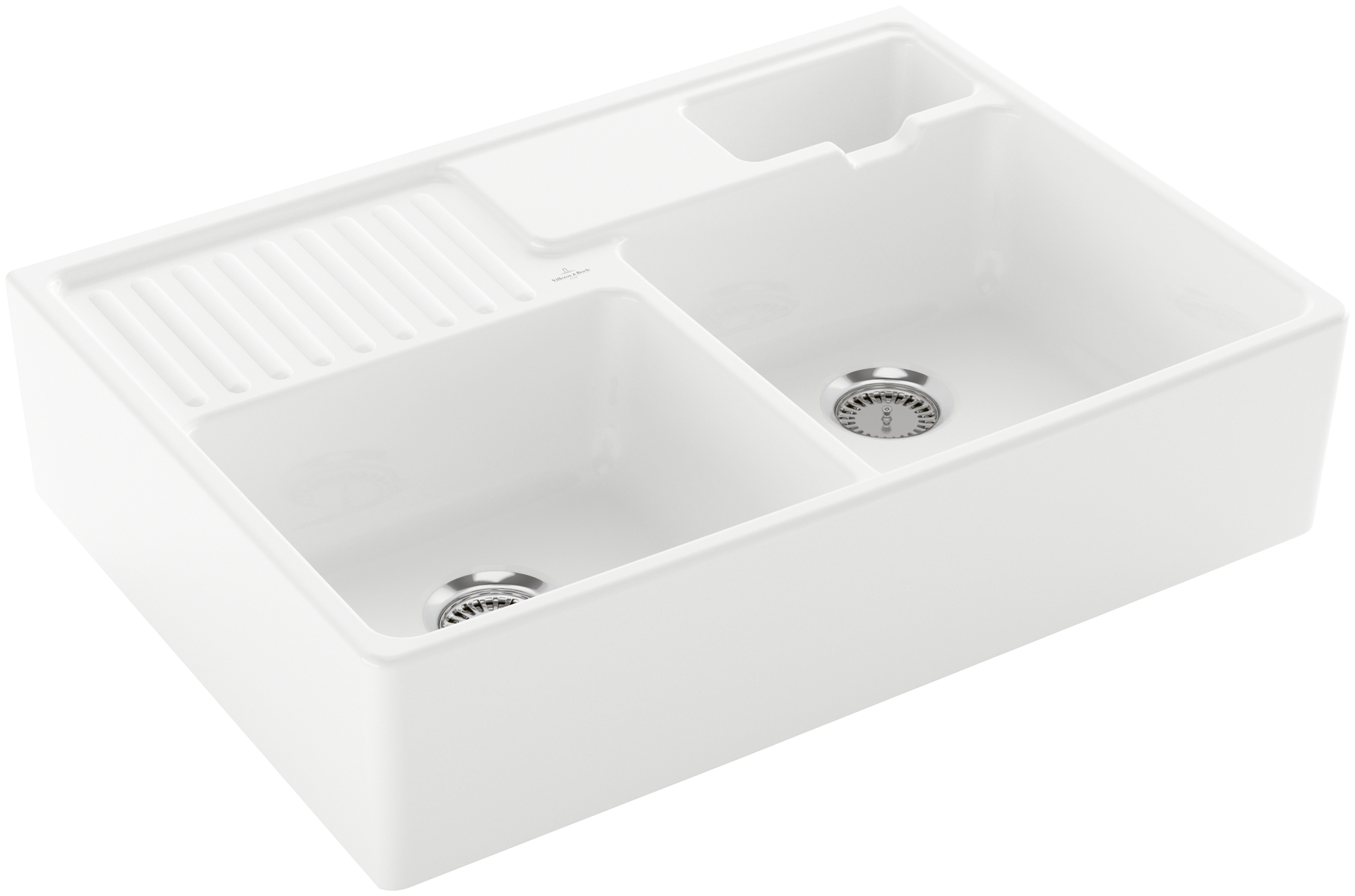 Double-bowl sink Double-bowl sink included Waste system with basket strainer waste, of Ceramic, 895x630mm, White Alpin CeramicPlus